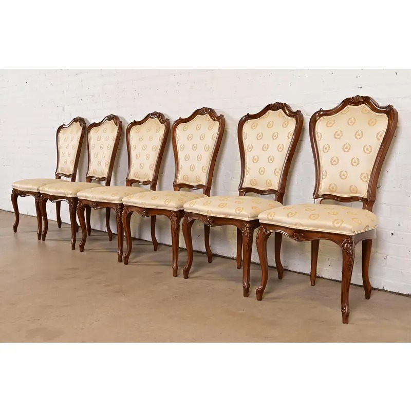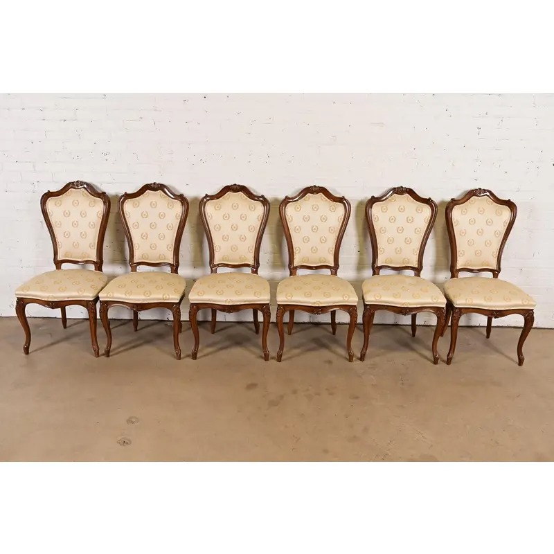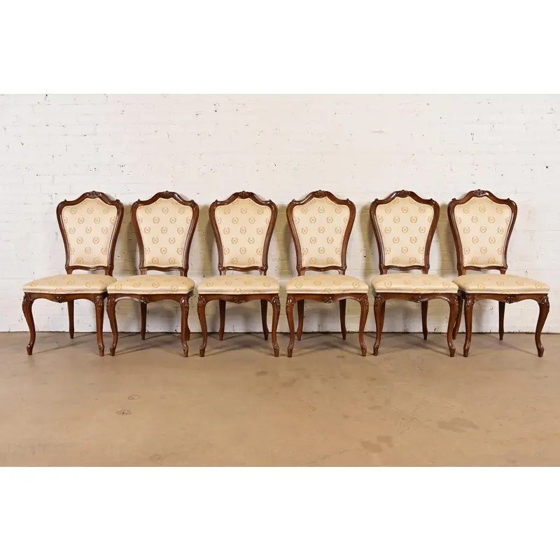 Karges French Provincial Louis XV Carved Walnut Side Chairs or Dining Chairs, Set of Six