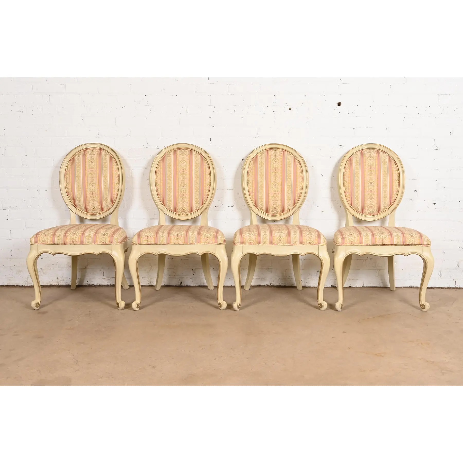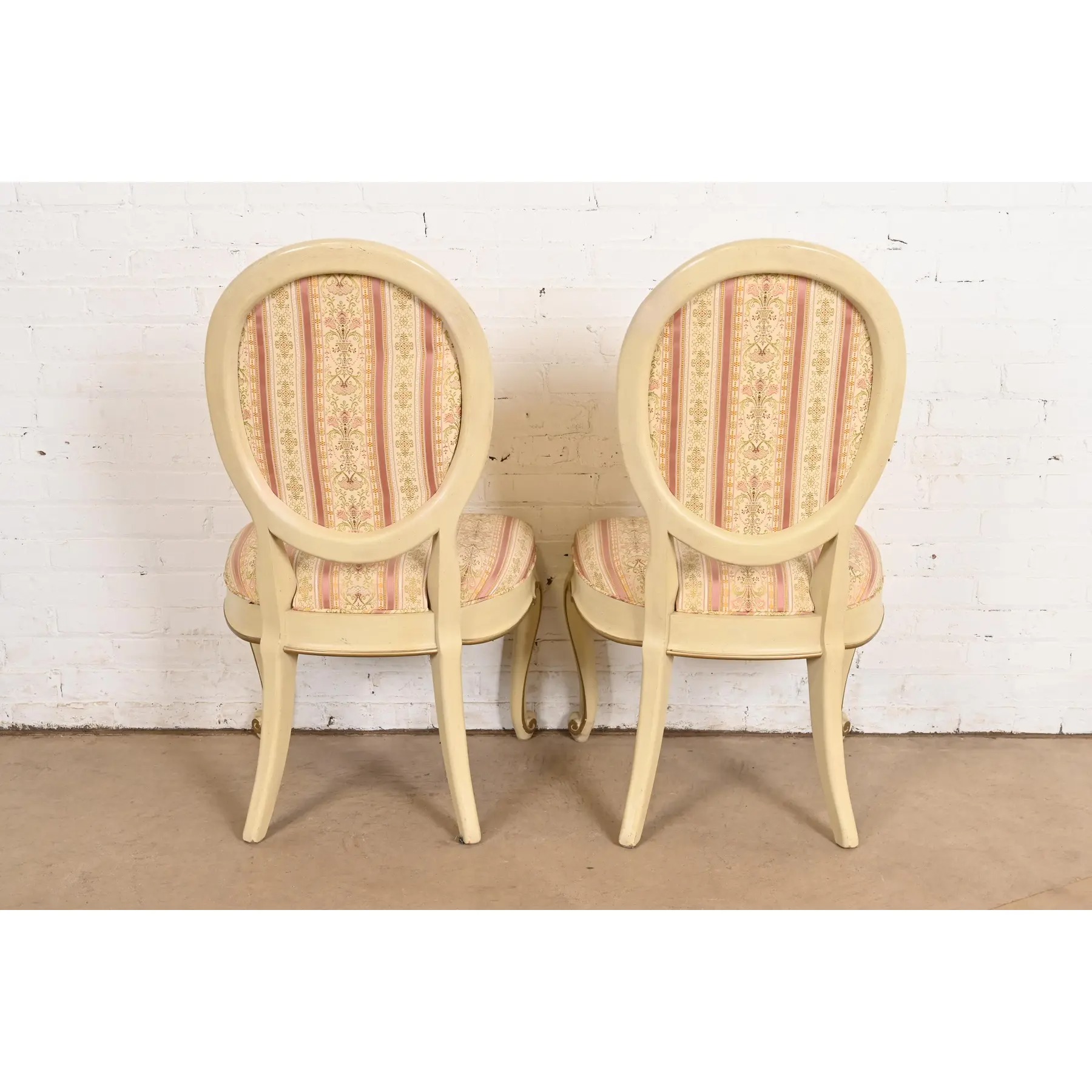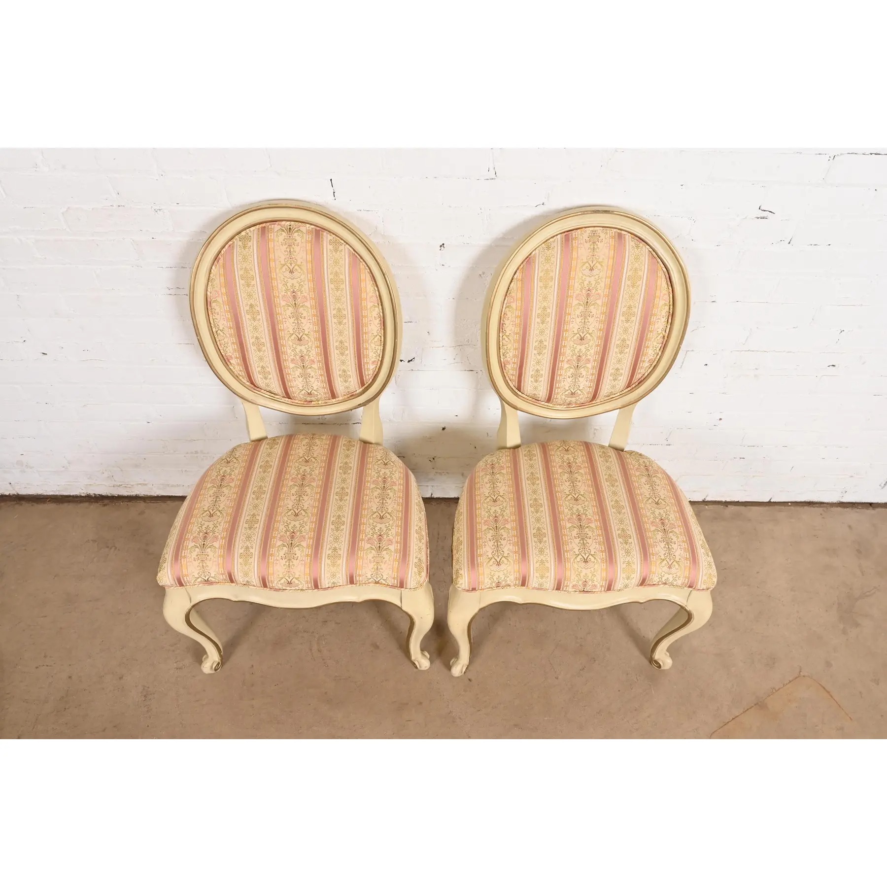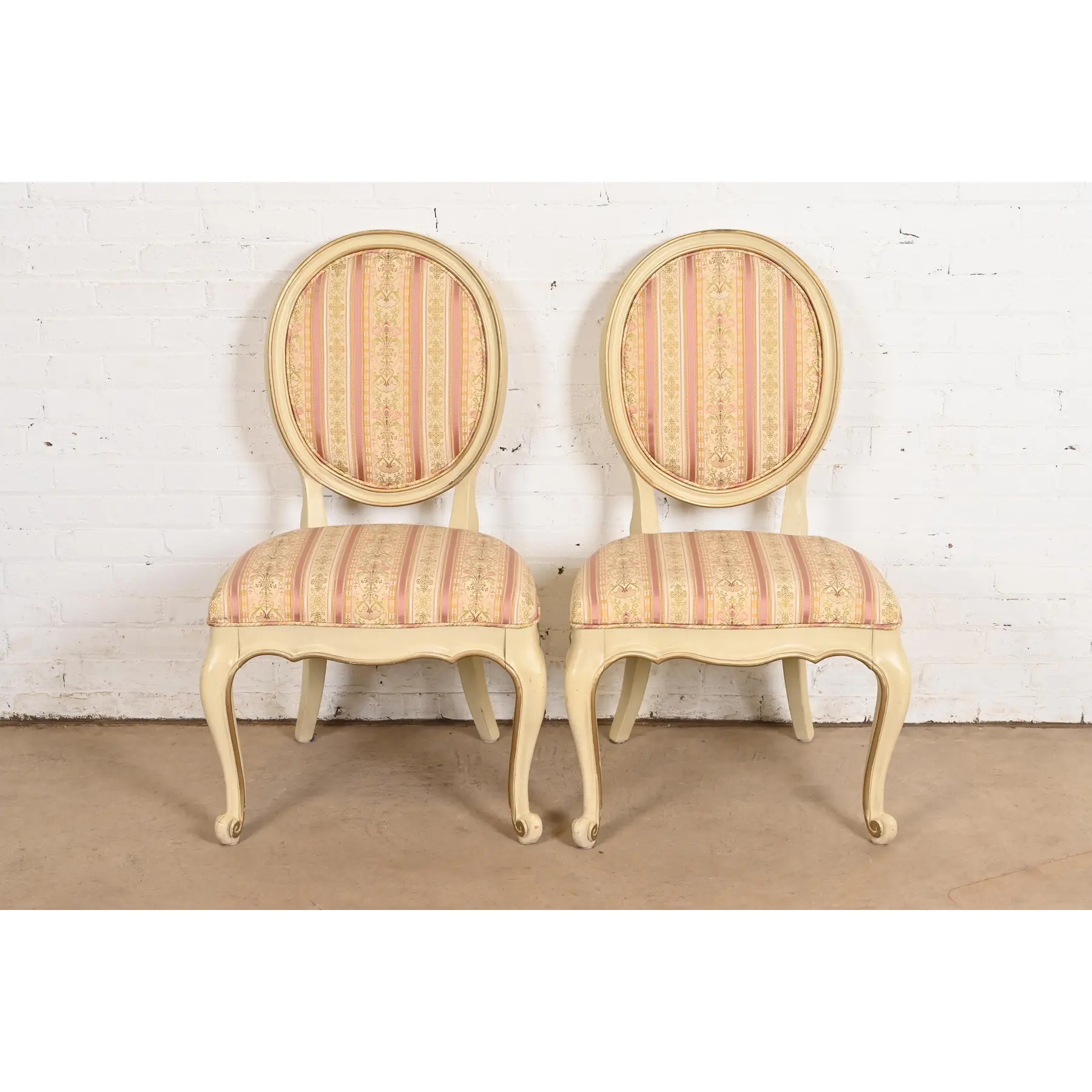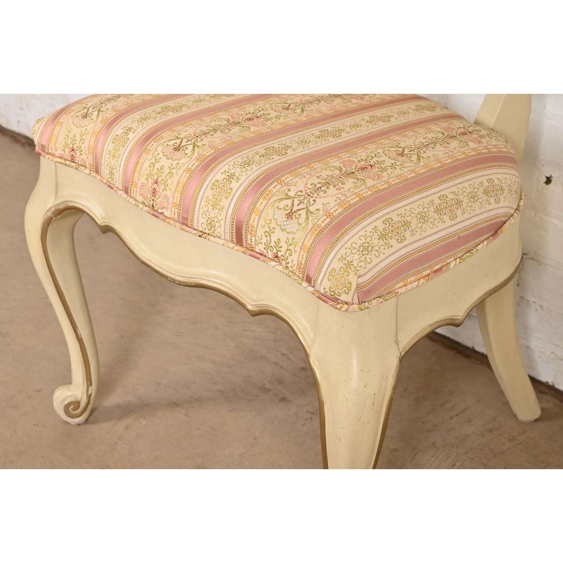 Karges French Provincial Louis XV Cream Lacquered and Gold Gilt Side Chairs or Dining Chairs, Pair