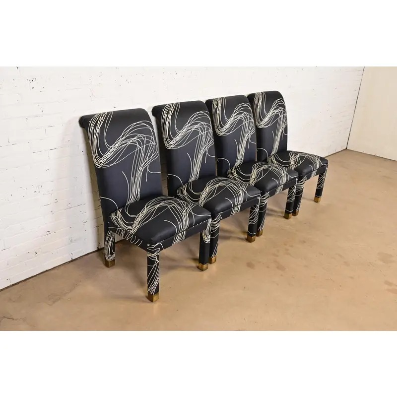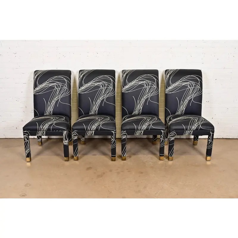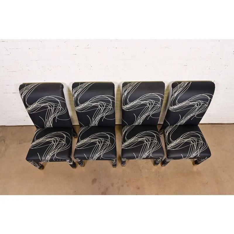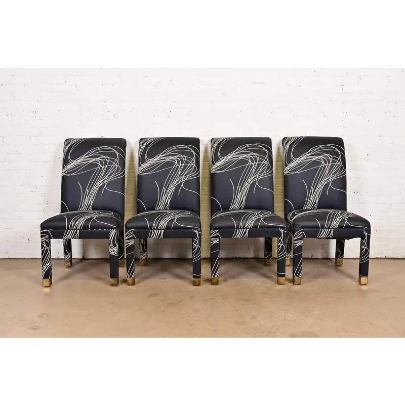 A gorgeous set of four Modern or Postmodern Parsons upholstered side chairs or dining chairs