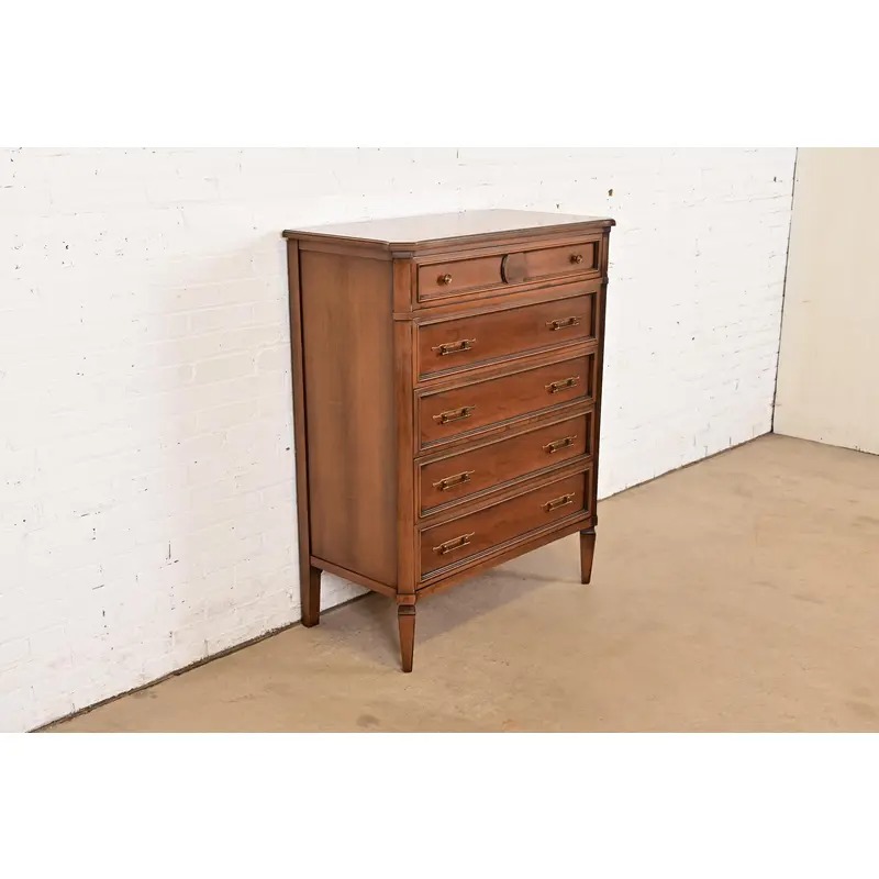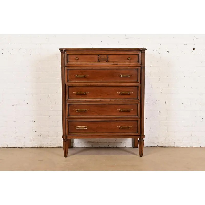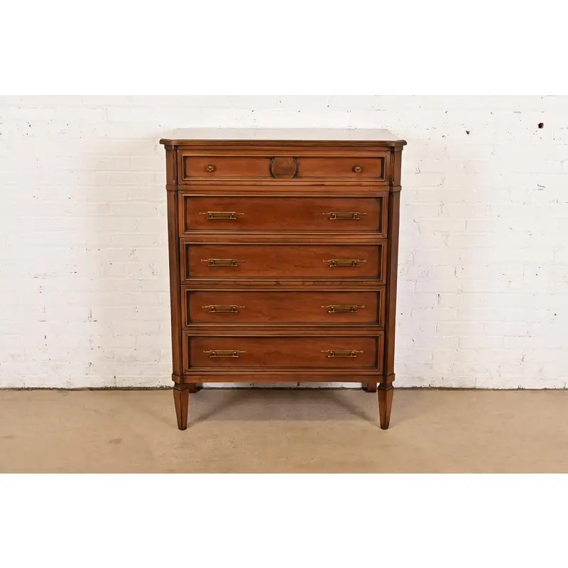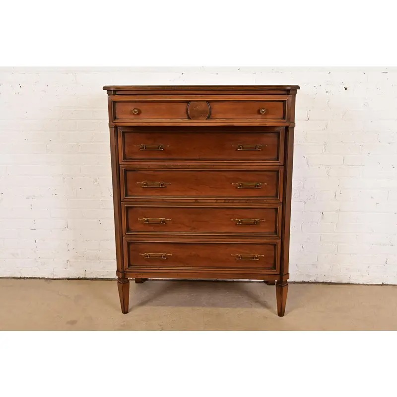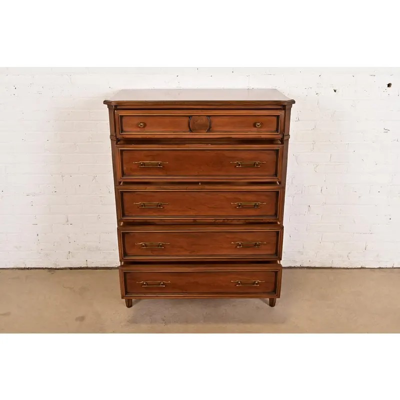 A gorgeous mid-century French Regency Louis XVI style highboy dresser or chest of drawers