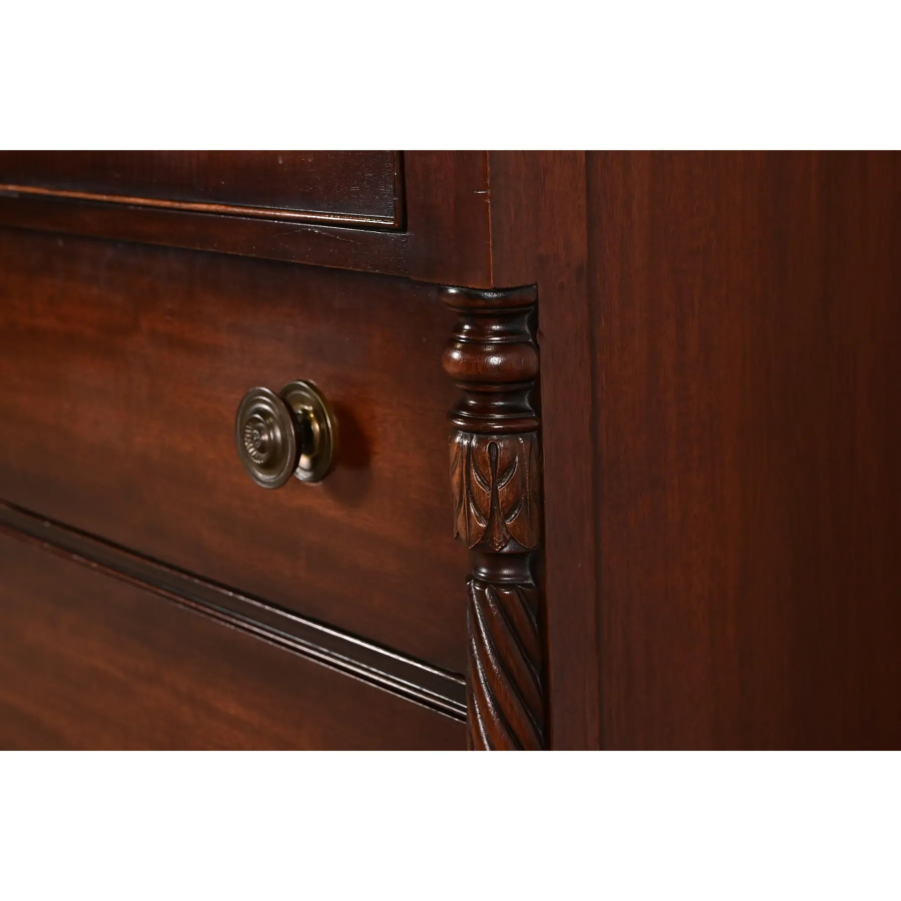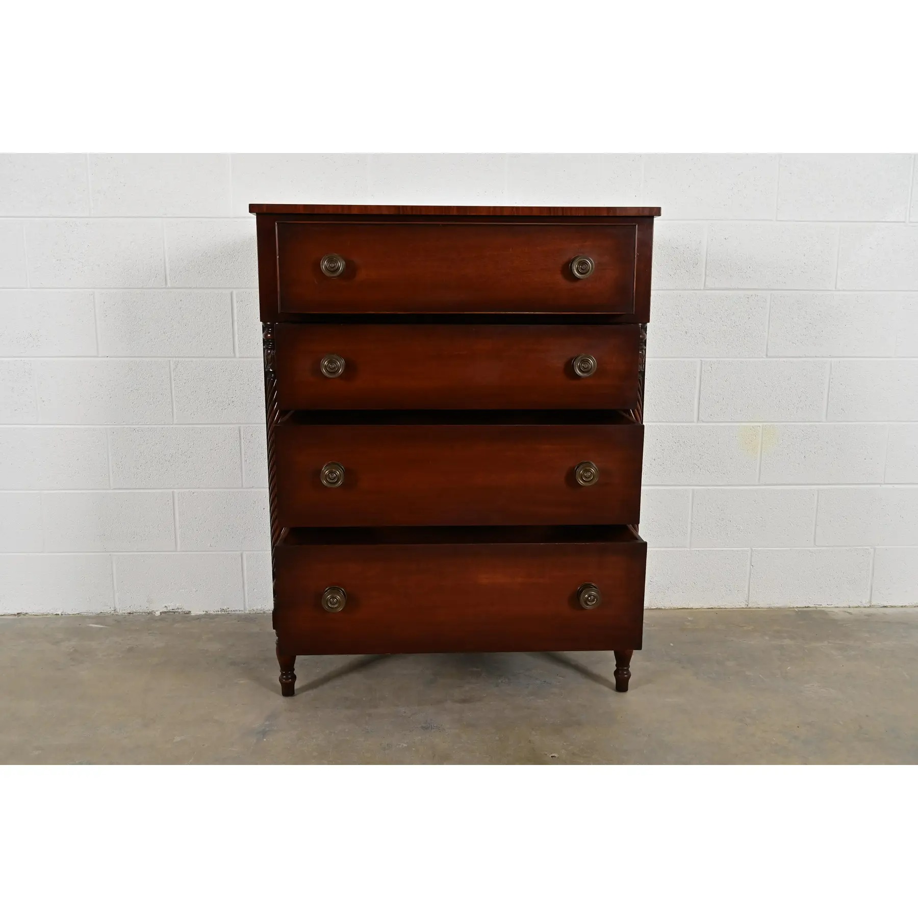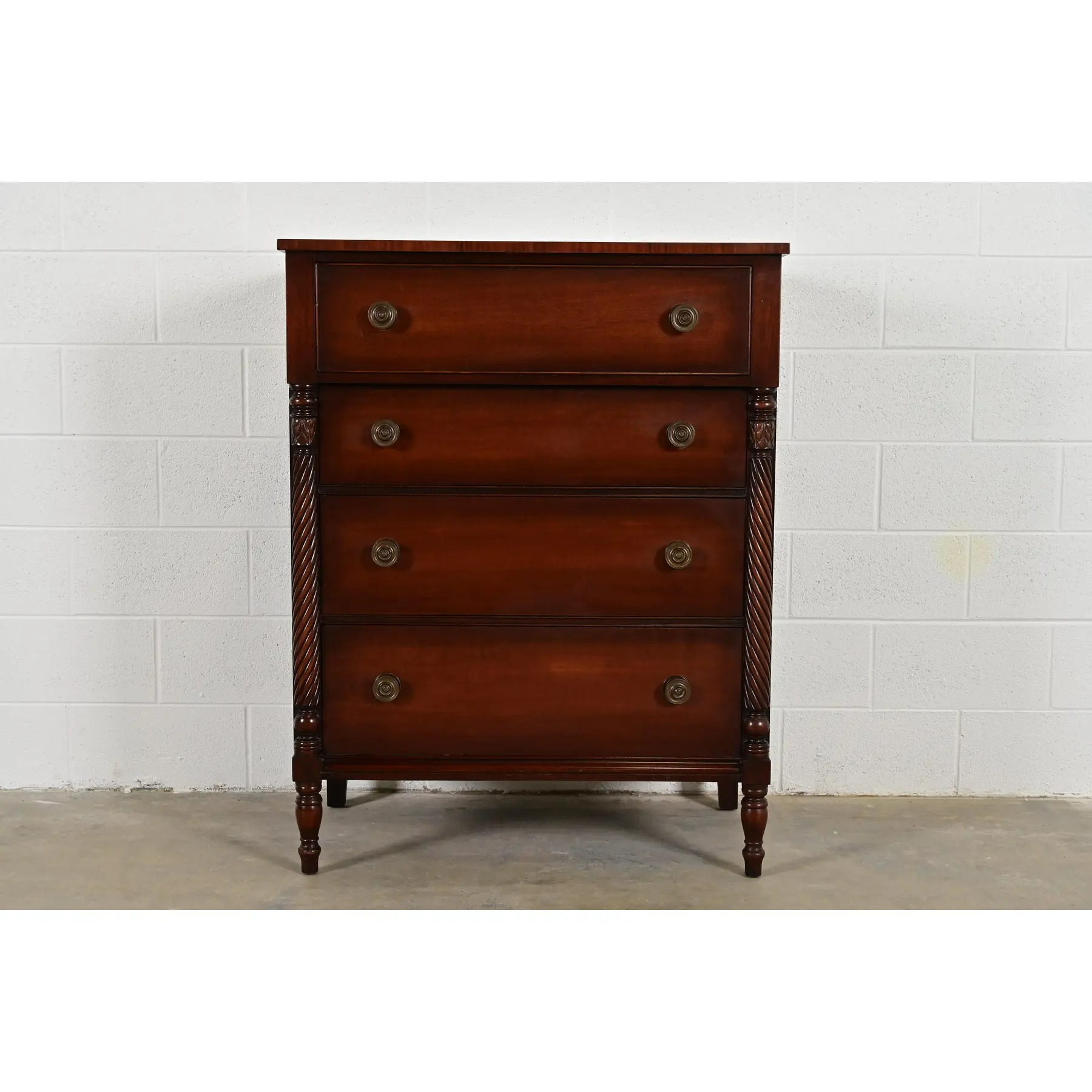 Kindel Furniture American Empire Carved Mahogany Four-Drawer Highboy Dresser, Circa 1960s