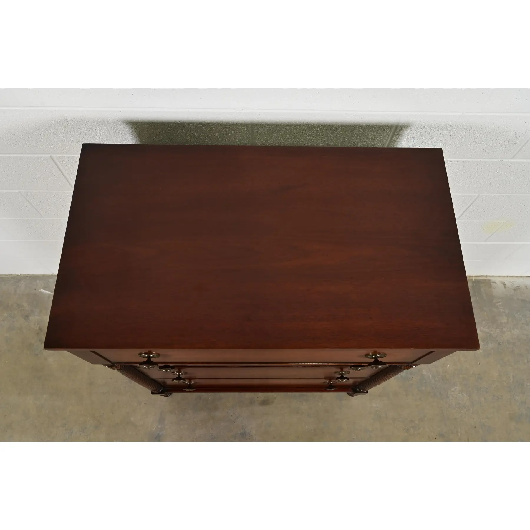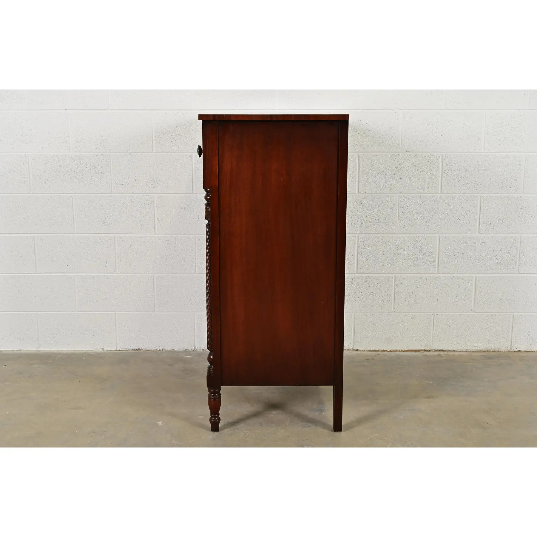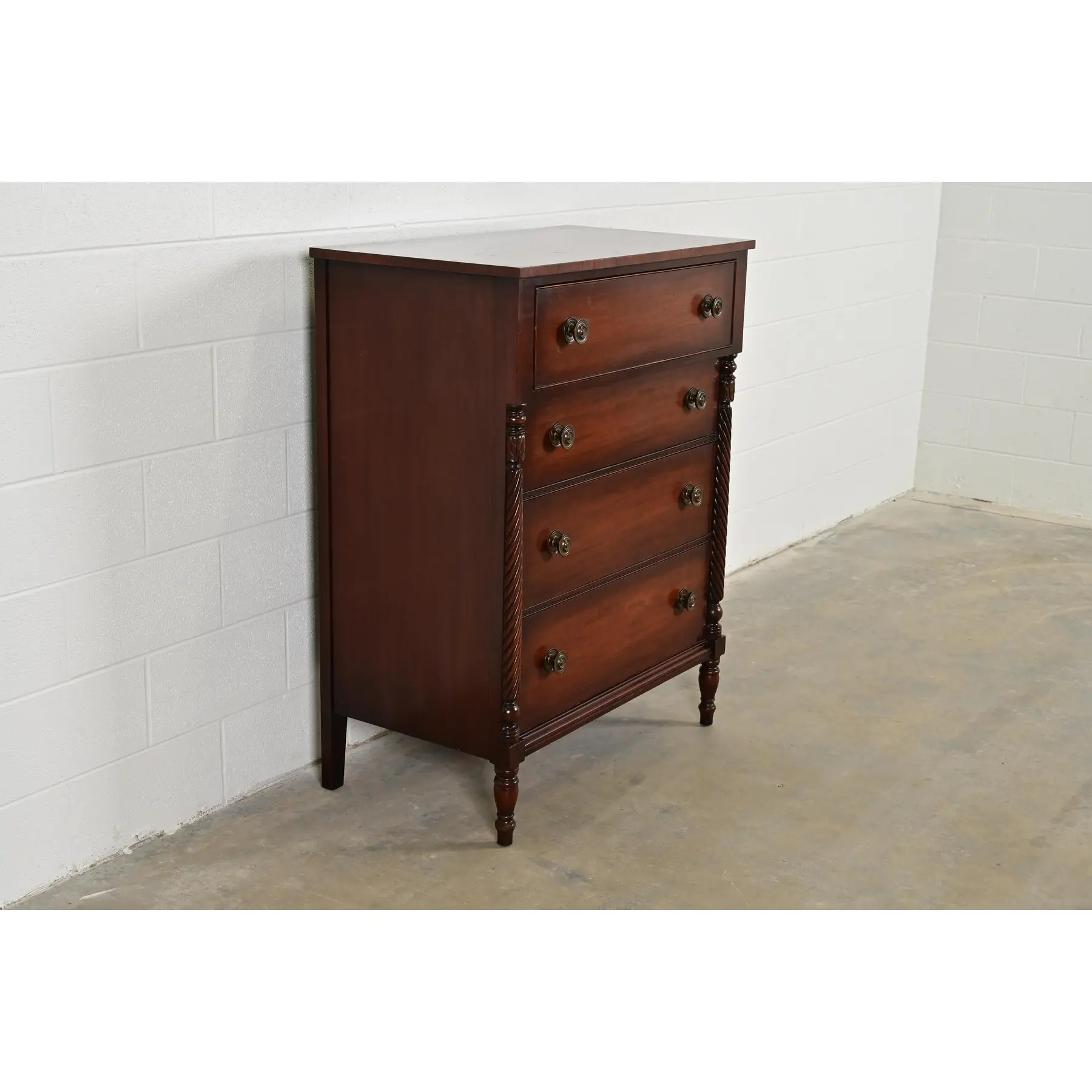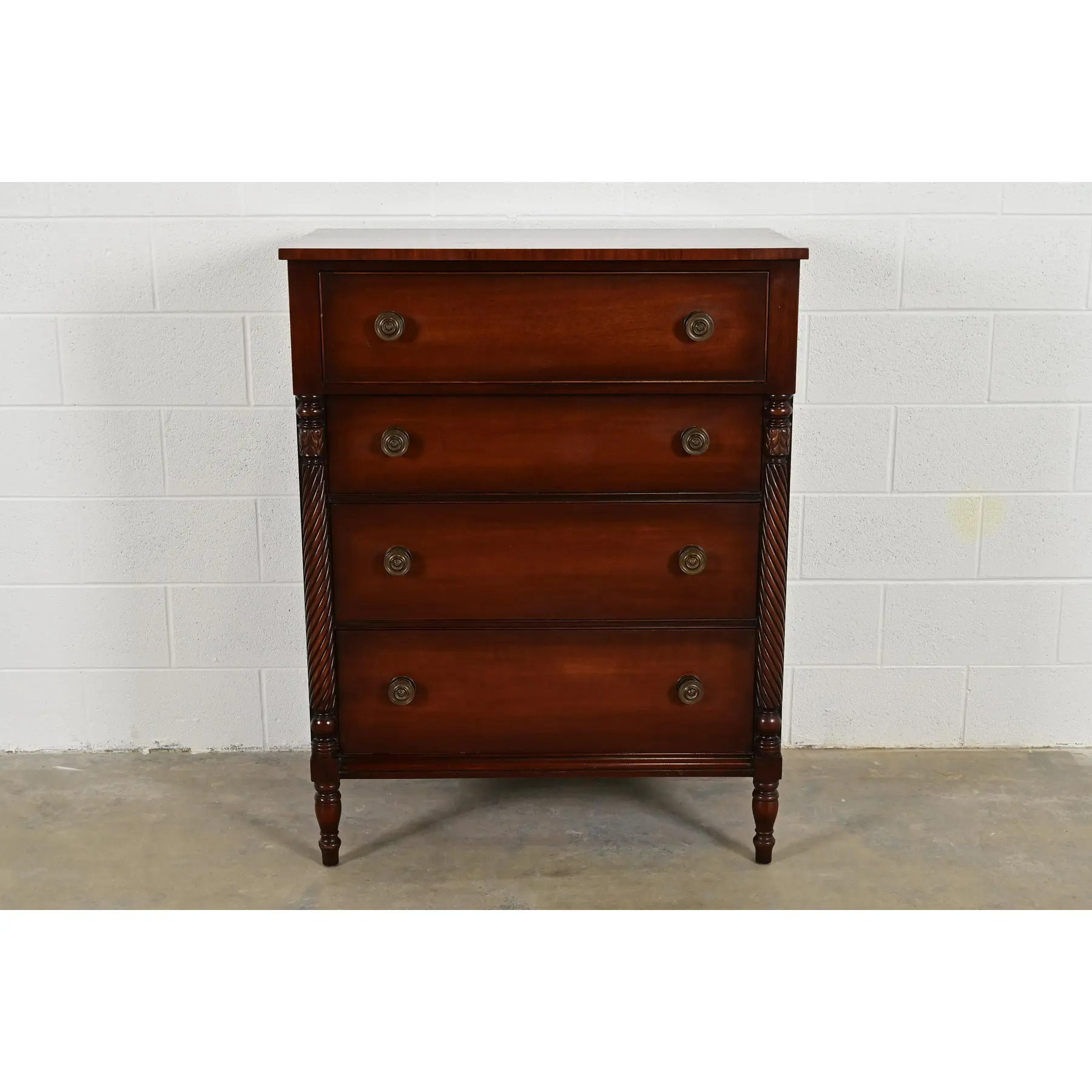 Kindel Furniture American Empire Carved Mahogany Four-Drawer Highboy Dresser, Circa 1960s