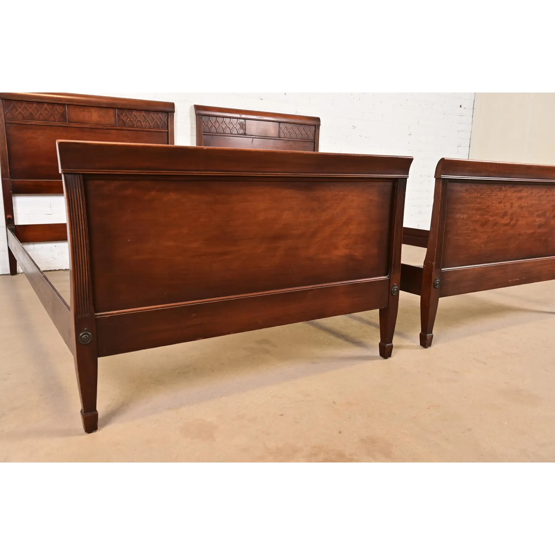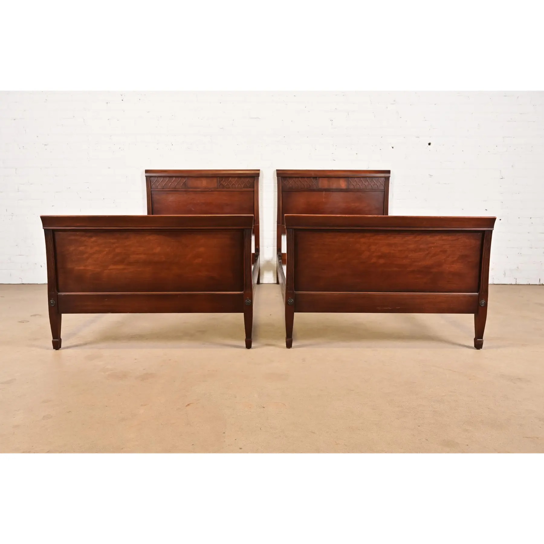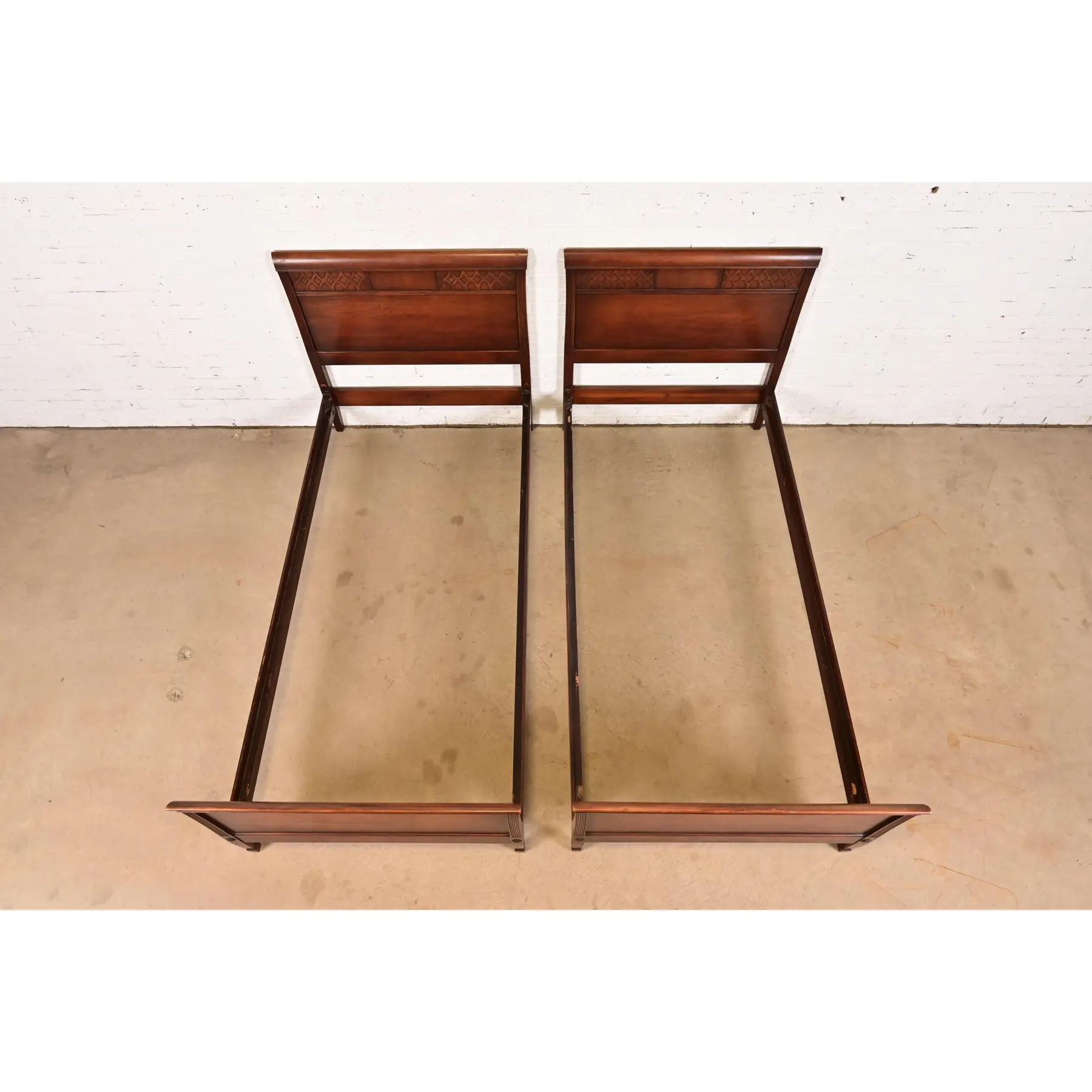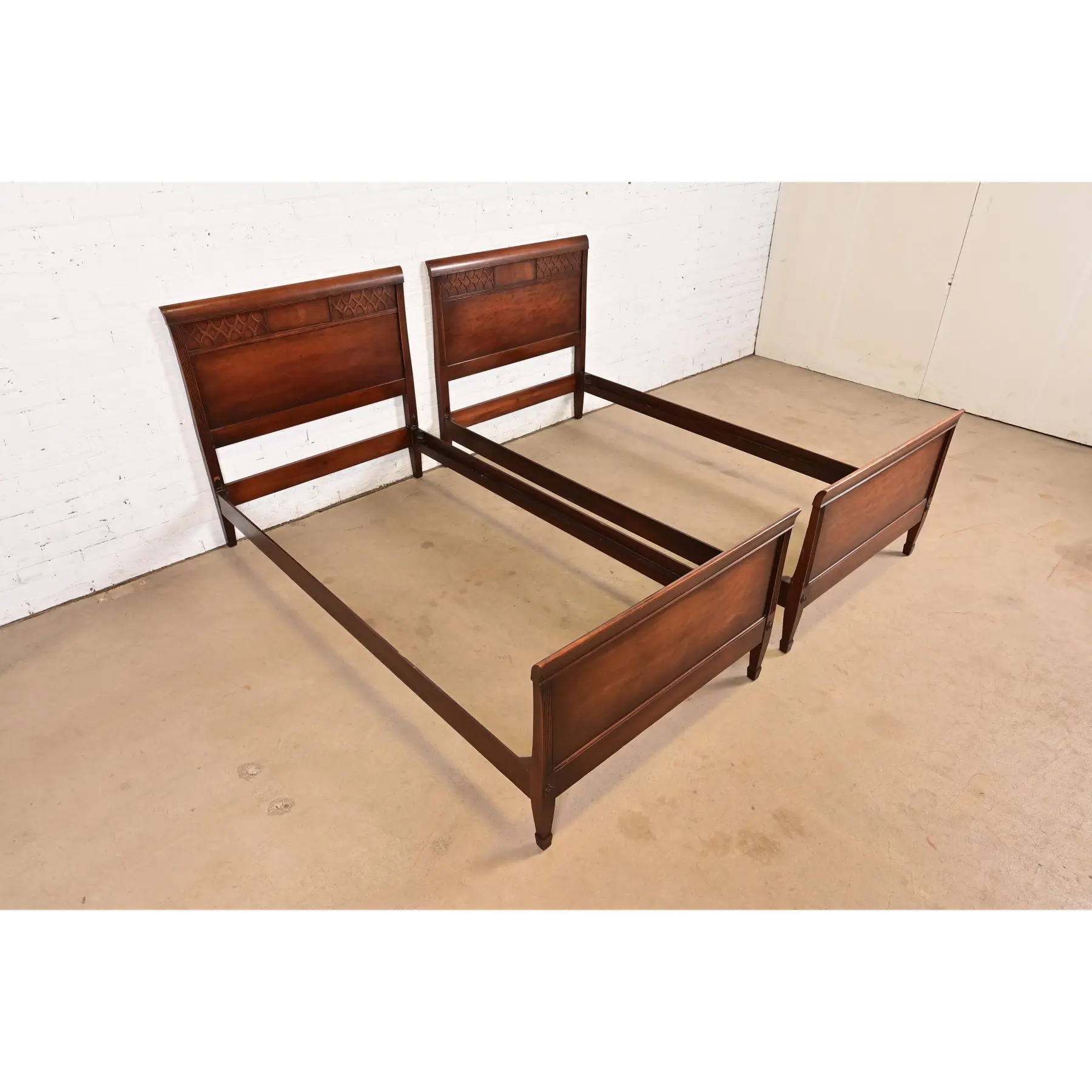 Kindel Furniture Federal Carved Mahogany Twin Size Beds, Circa 1960s
