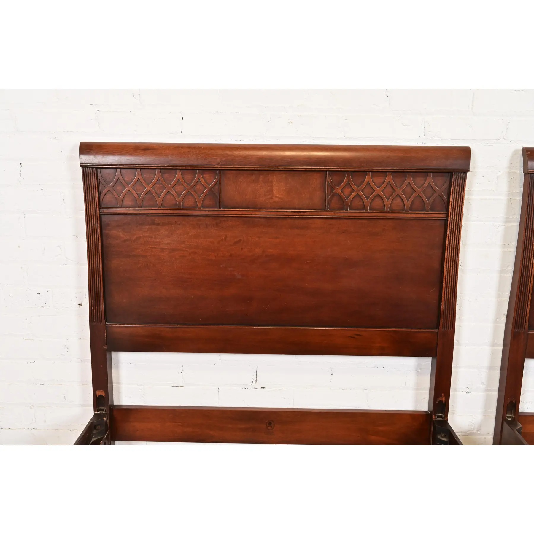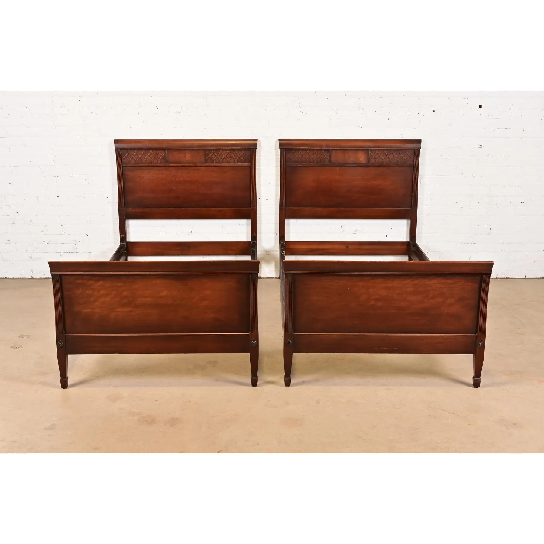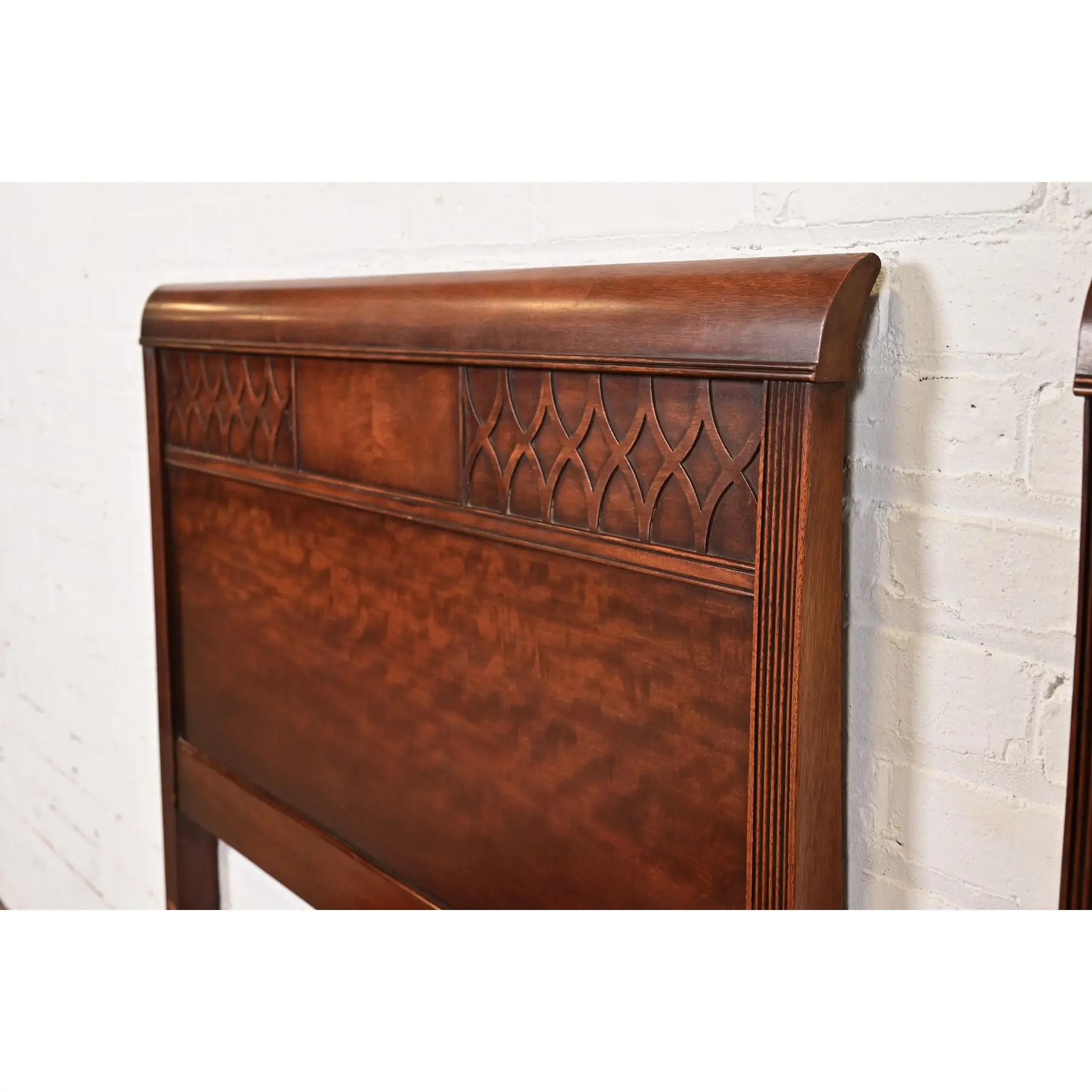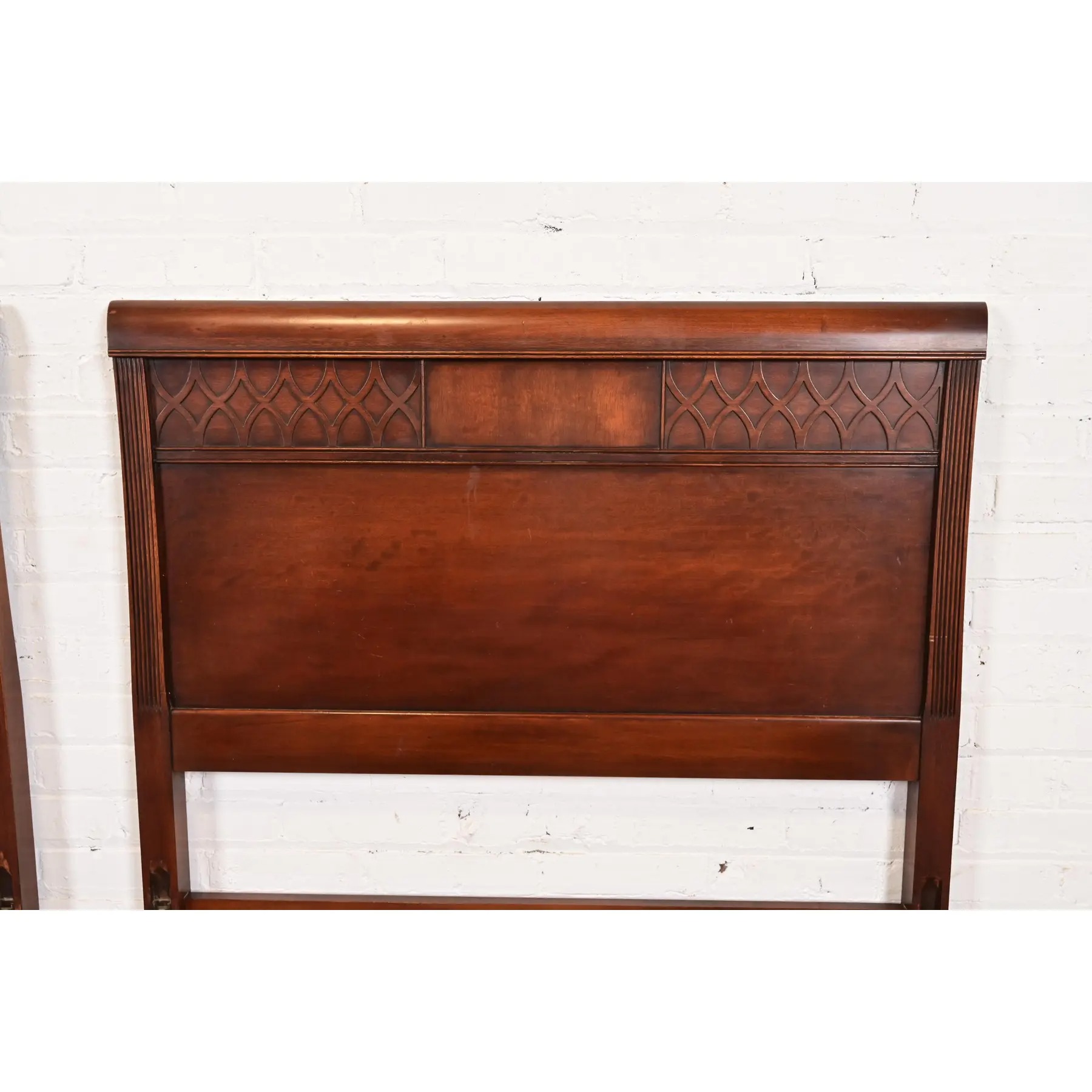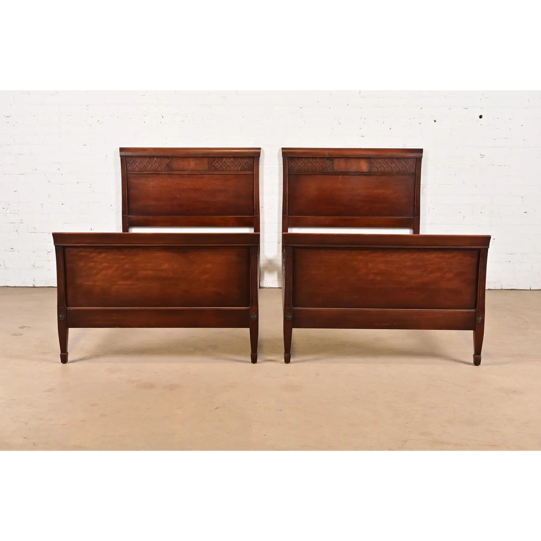 Kindel Furniture Federal Carved Mahogany Twin Size Beds, Circa 1960s