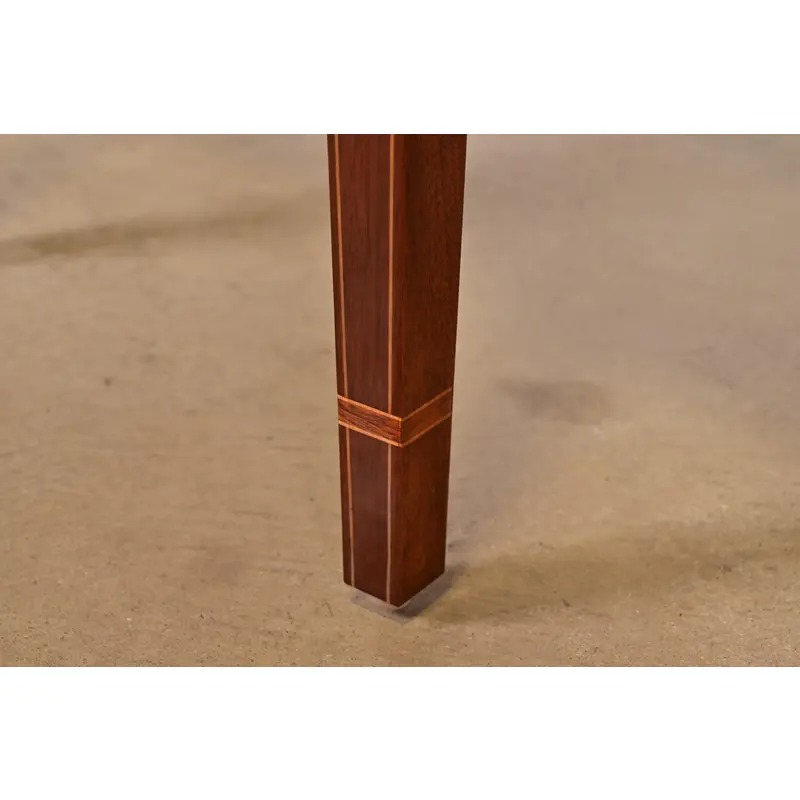 Beautiful book-matched flame mahogany, with satinwood inlay, and original brass hardware. Interior shelves are adjustable. Drawers locks, and key is included.