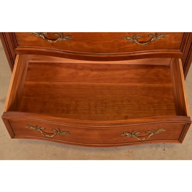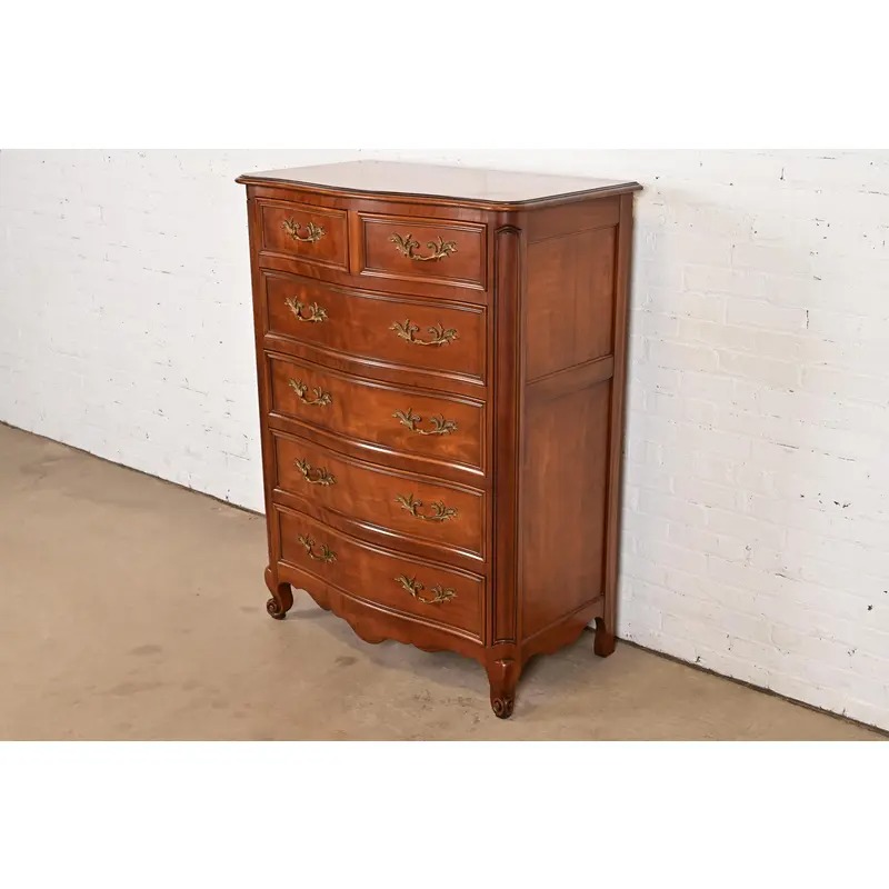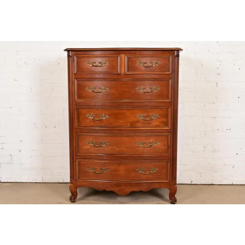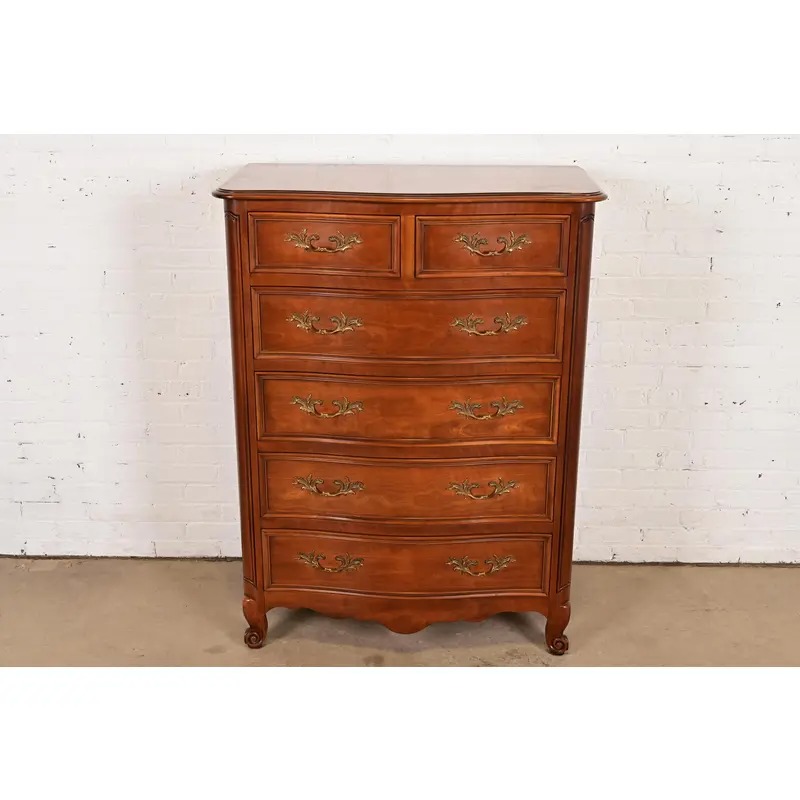An exceptional French Provincial Louis XV style six-drawer highboy dresser or chest of drawers