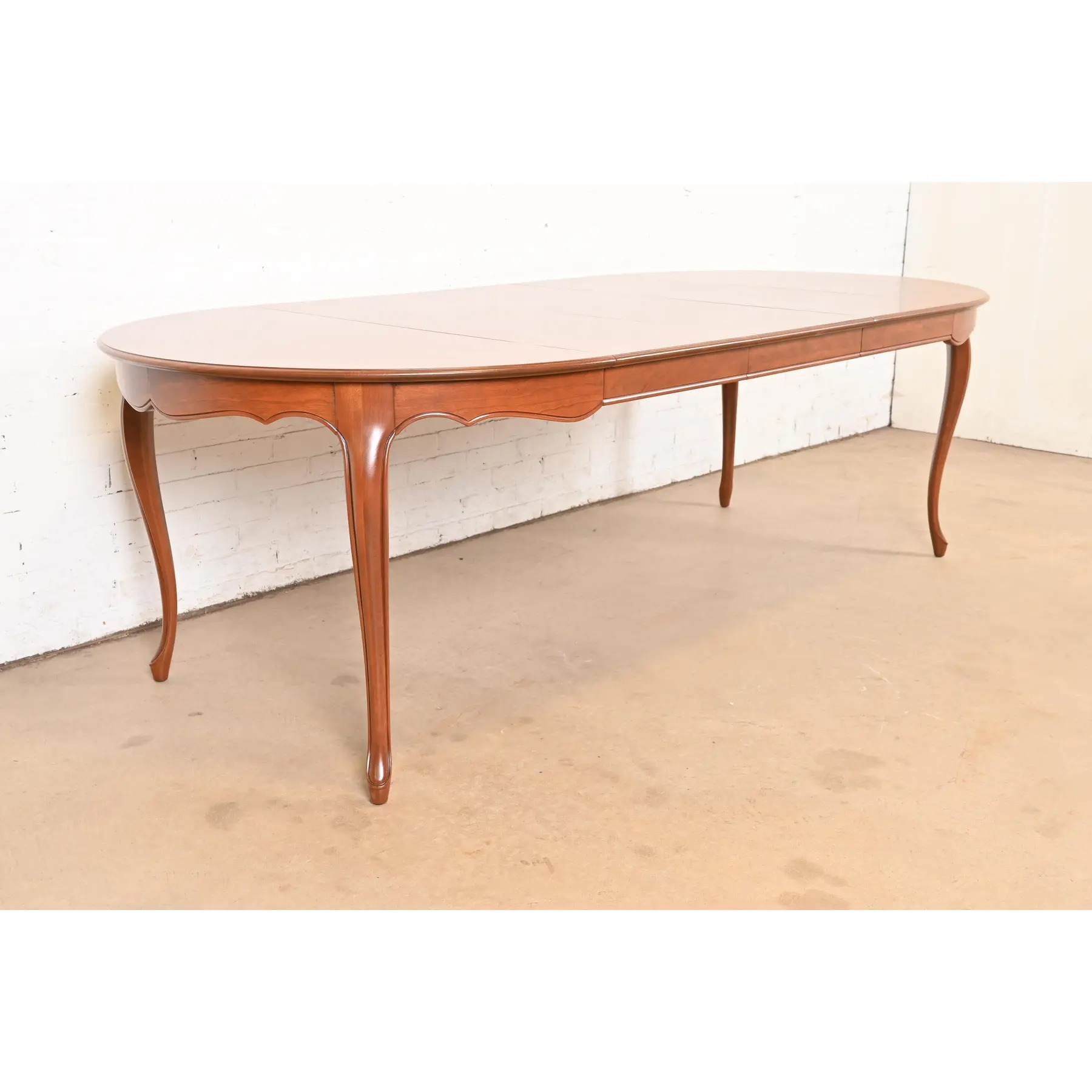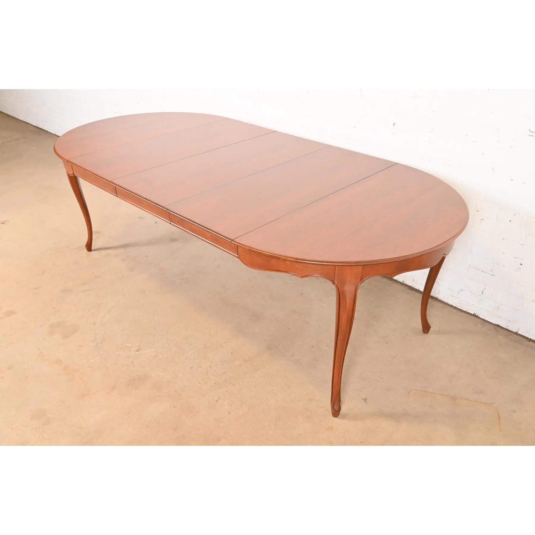 Kindel Furniture French Provincial Louis XV Cherry Wood Extension Dining Table, Newly Refinished