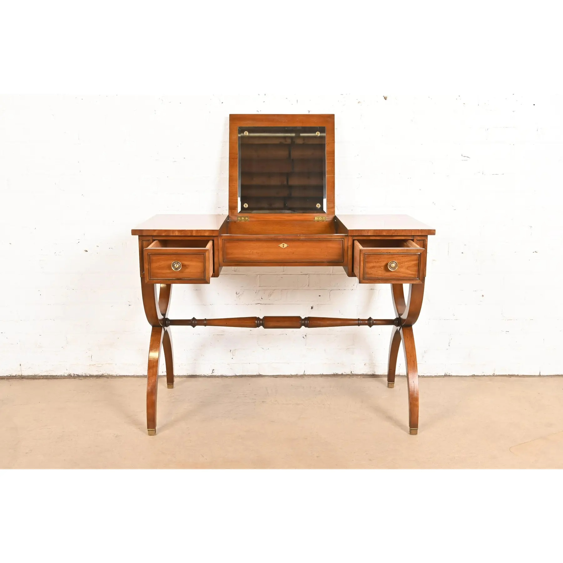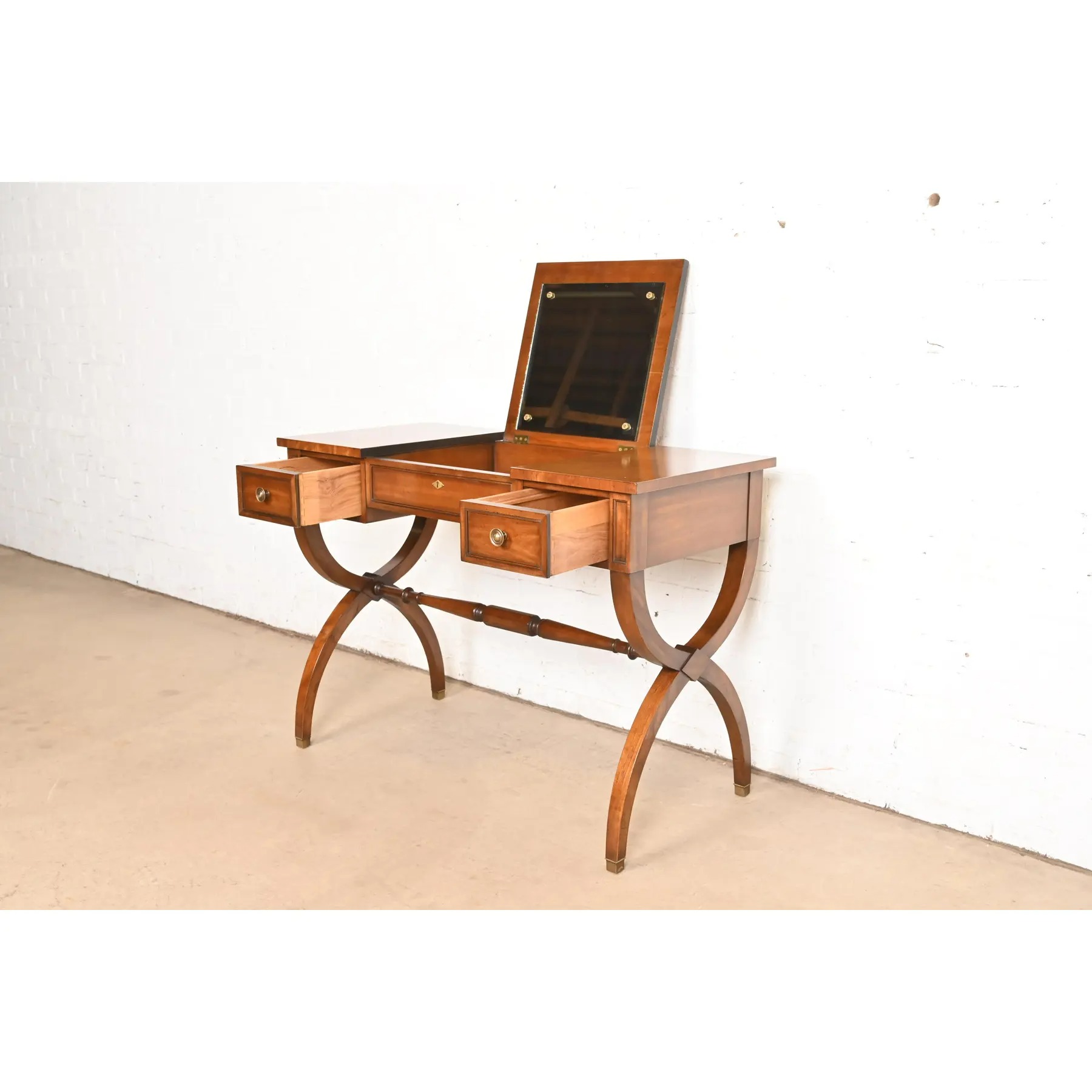 A gorgeous mid-century French Regency Louis XVI vanity dressing table with flip-up mirror