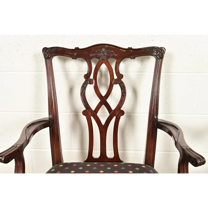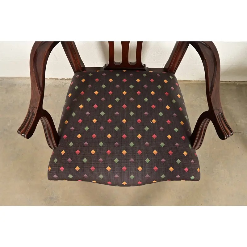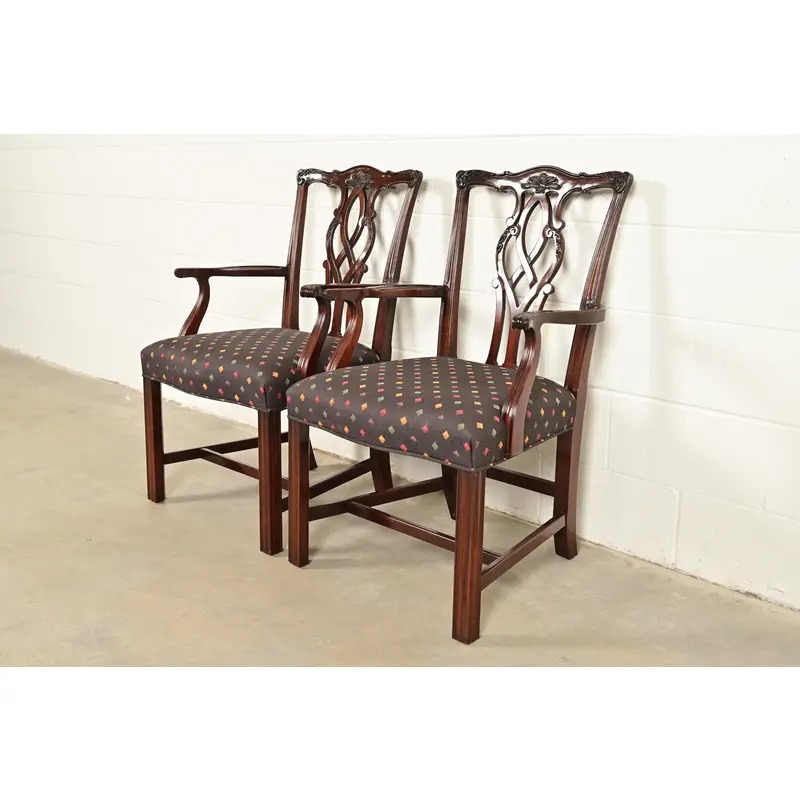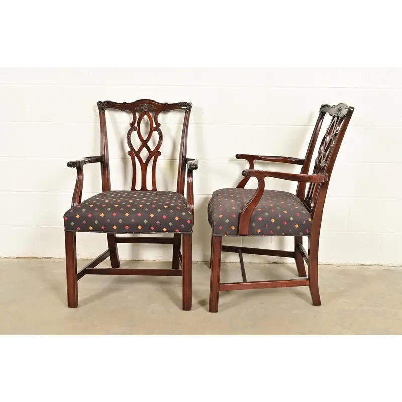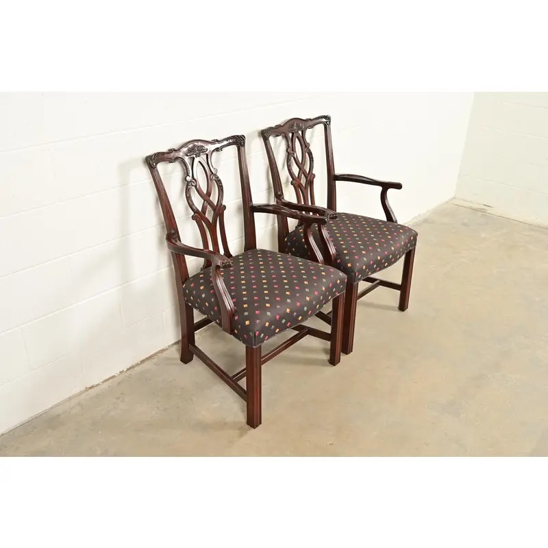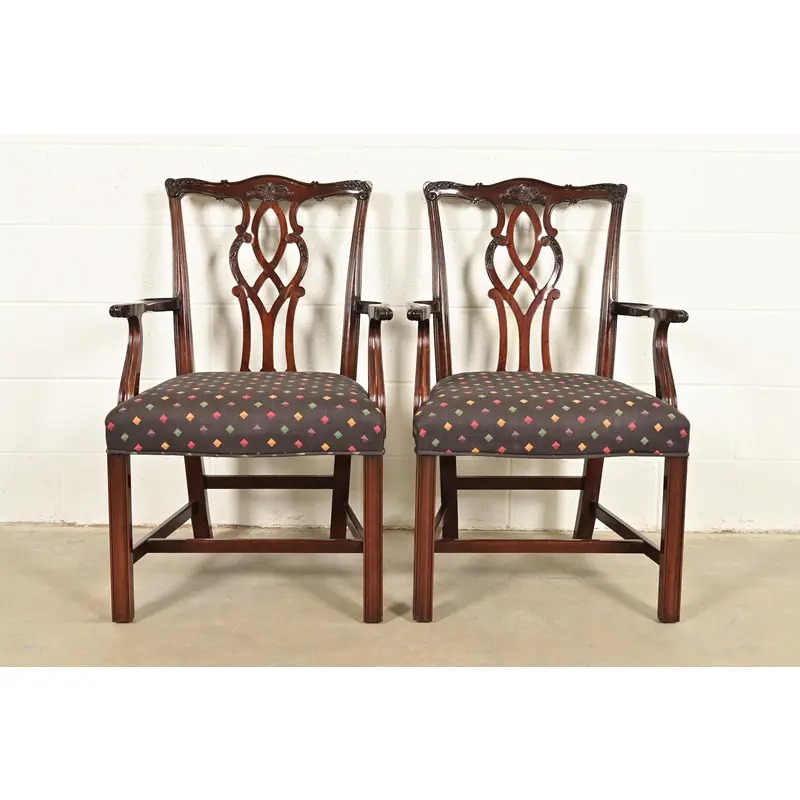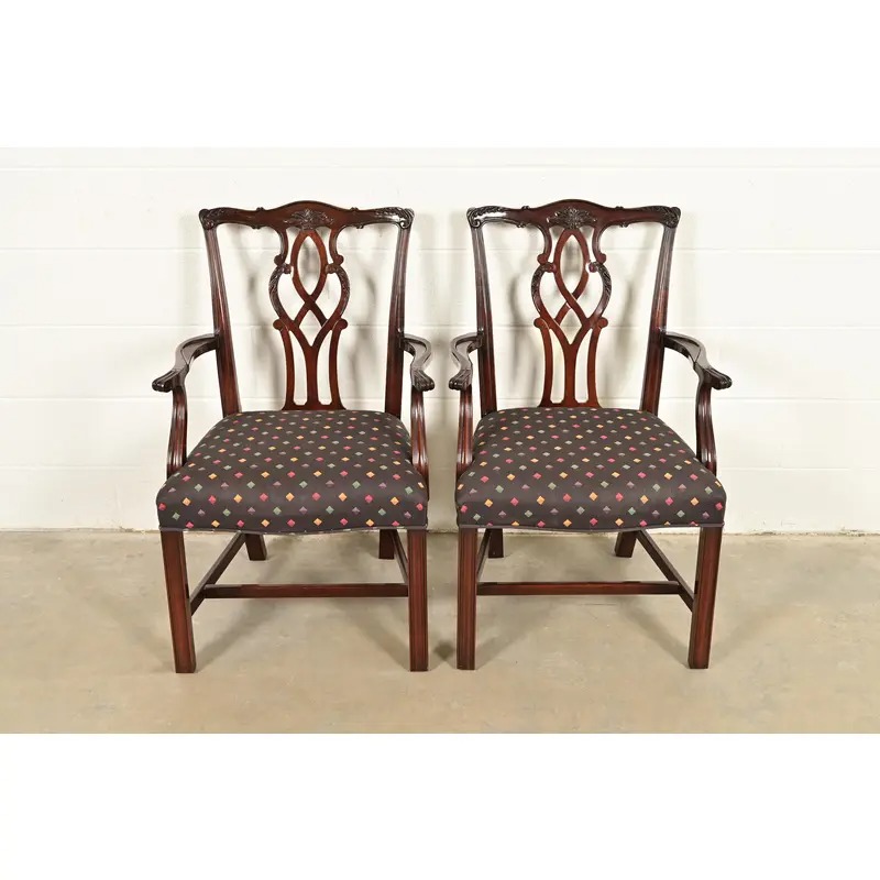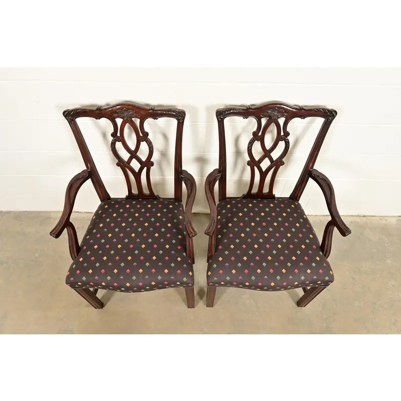 A gorgeous pair of Georgian or Chippendale style armchairs or dining captain chairs
