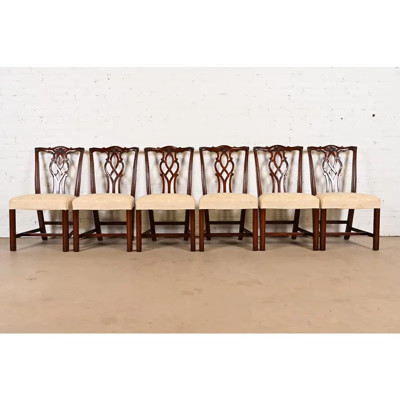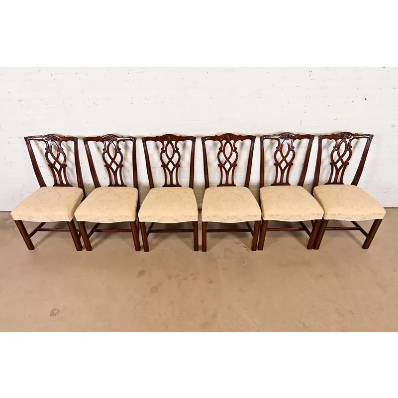 A gorgeous set of six Georgian or Chippendale style dining chairs
