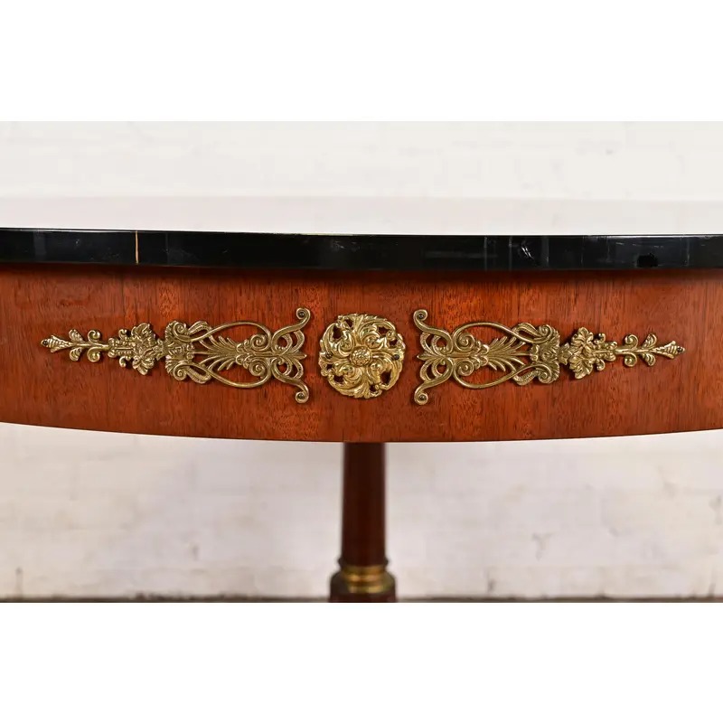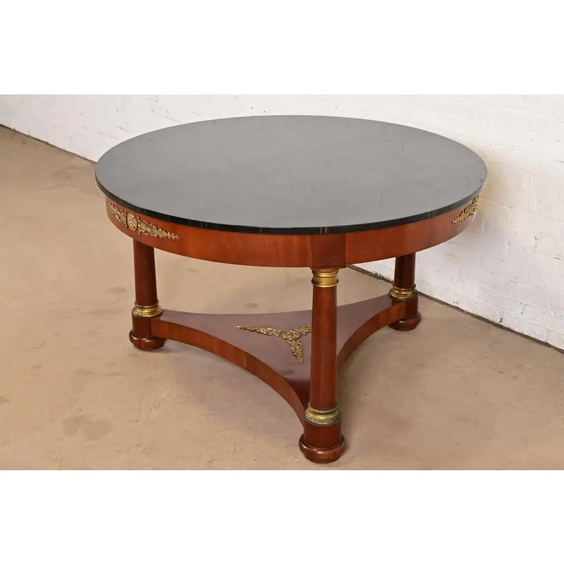Kindel Furniture Neoclassical Carved Mahogany Faux Marble Top Center Table With Mounted Ormolu