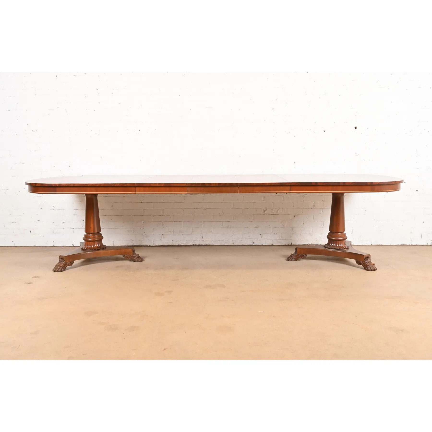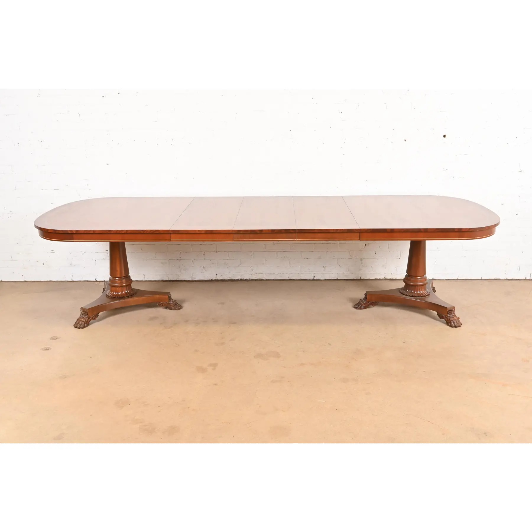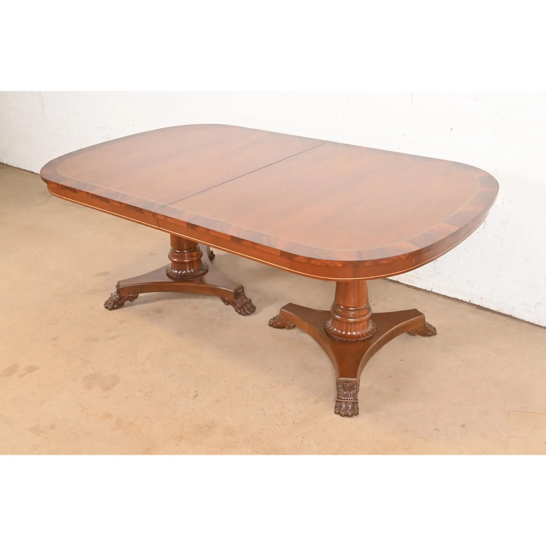 An exceptional Regency or Neoclassical style double pedestal extension dining table