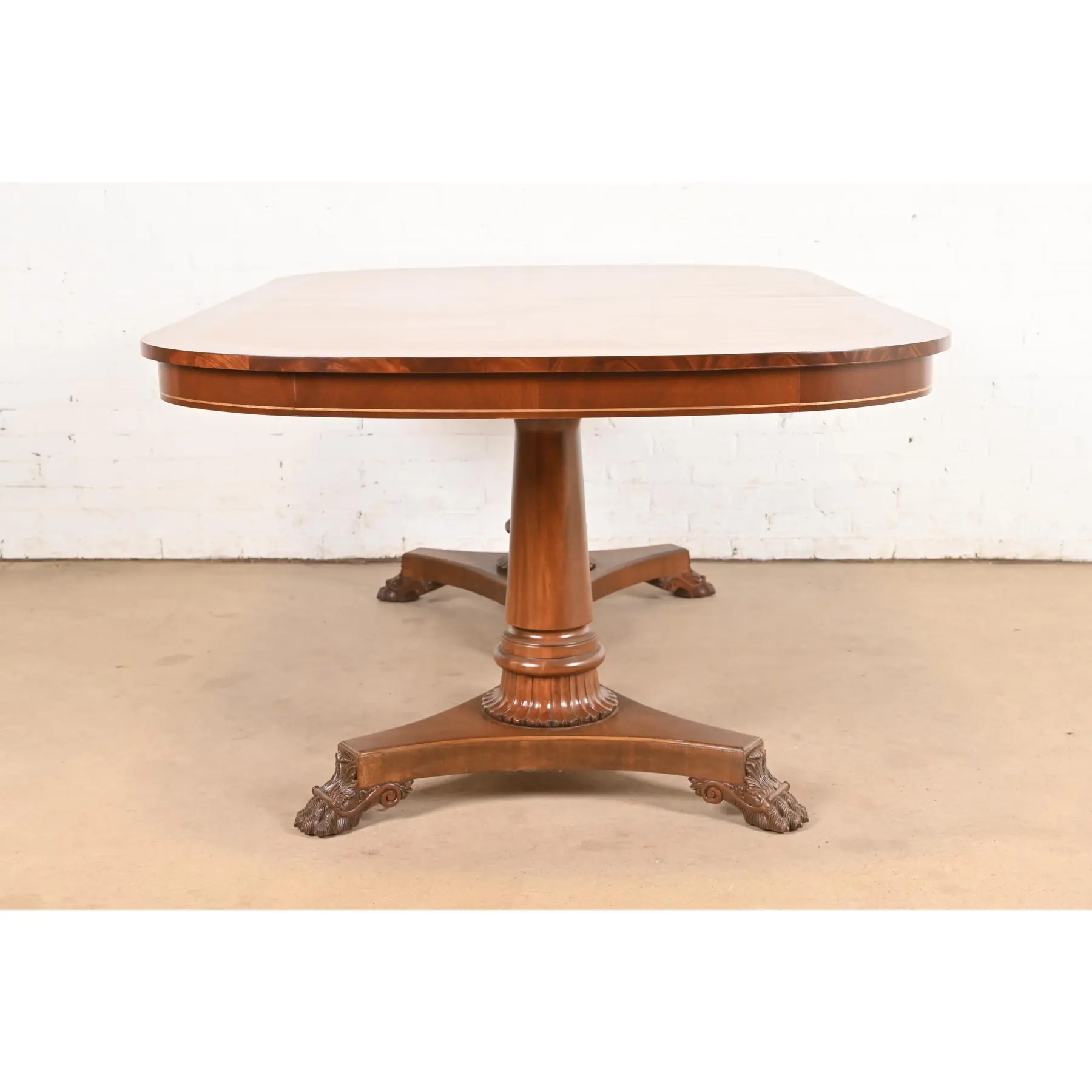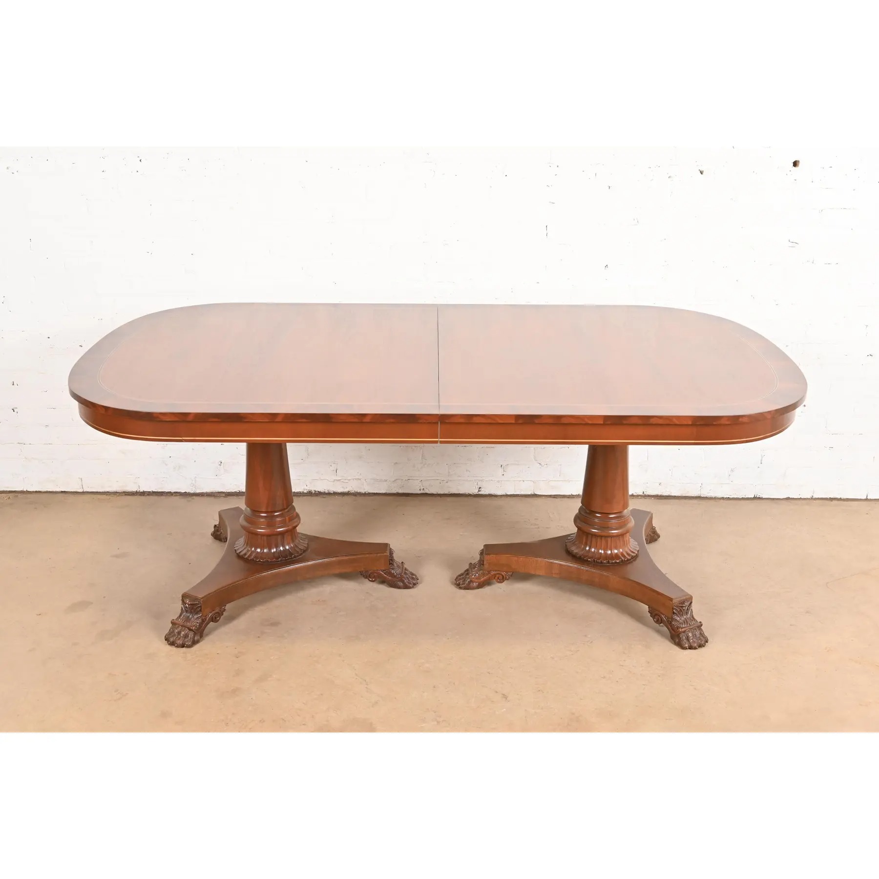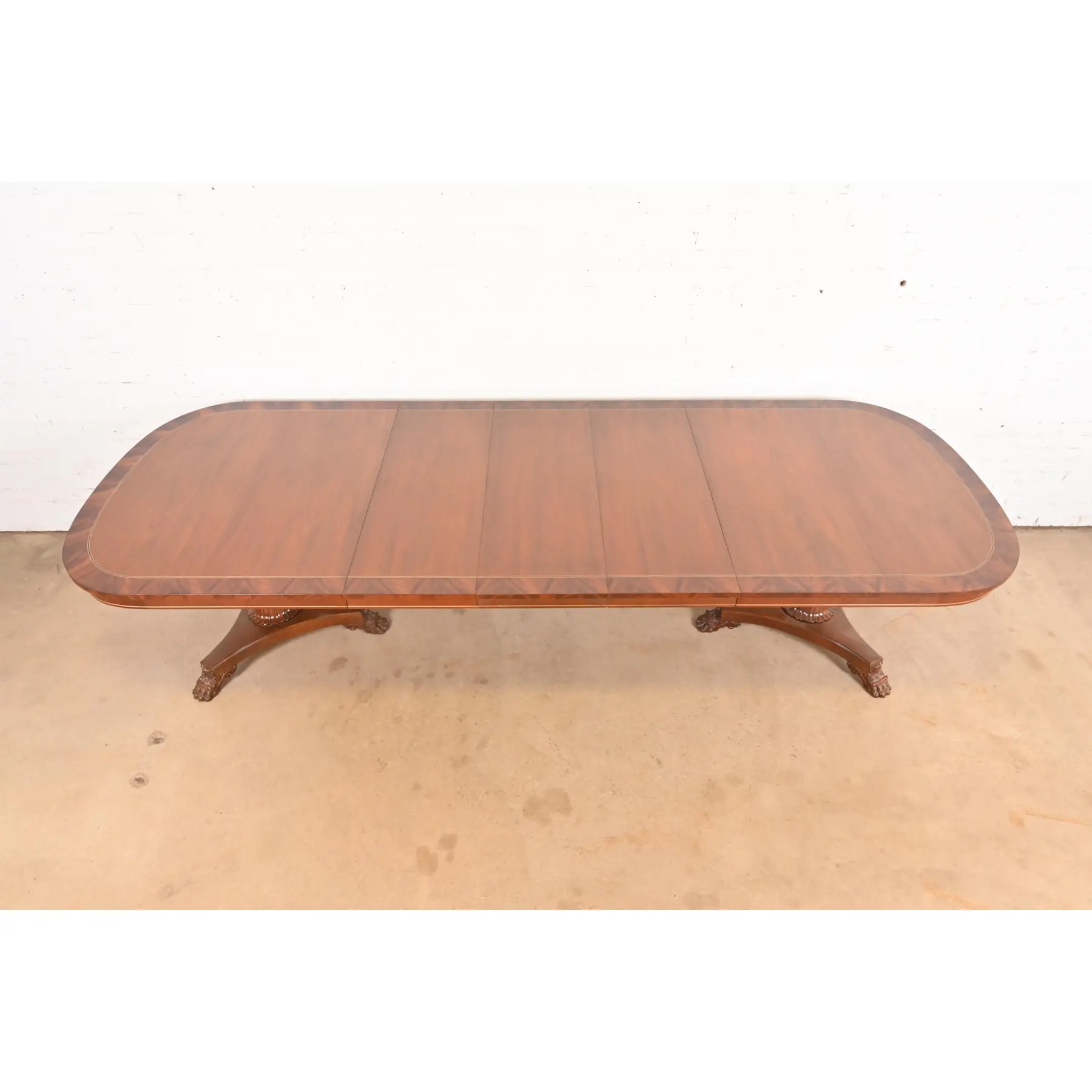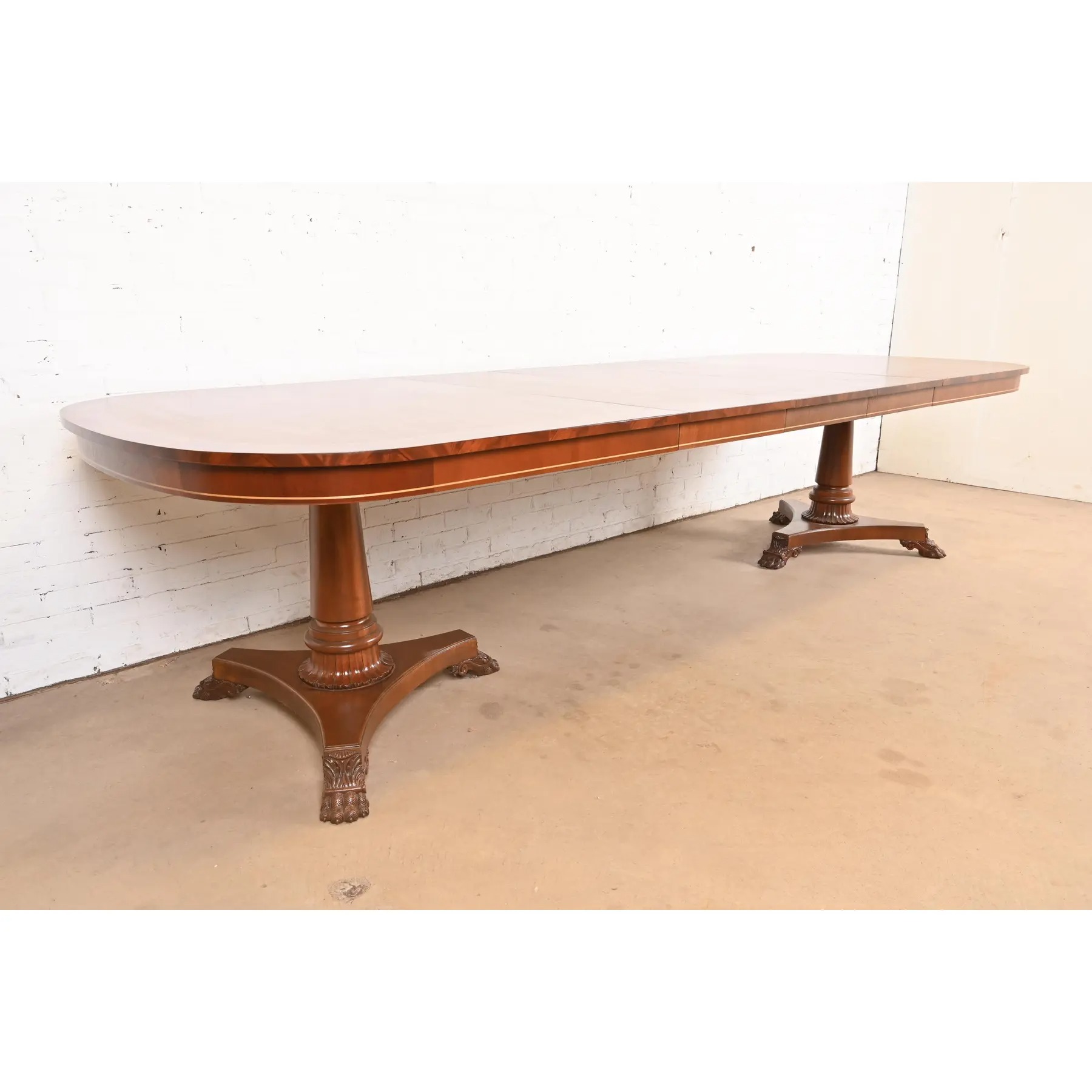 An exceptional Regency or Neoclassical style double pedestal extension dining table