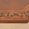 Mahogany, with satinwood banding and inlaid floral marquetry.