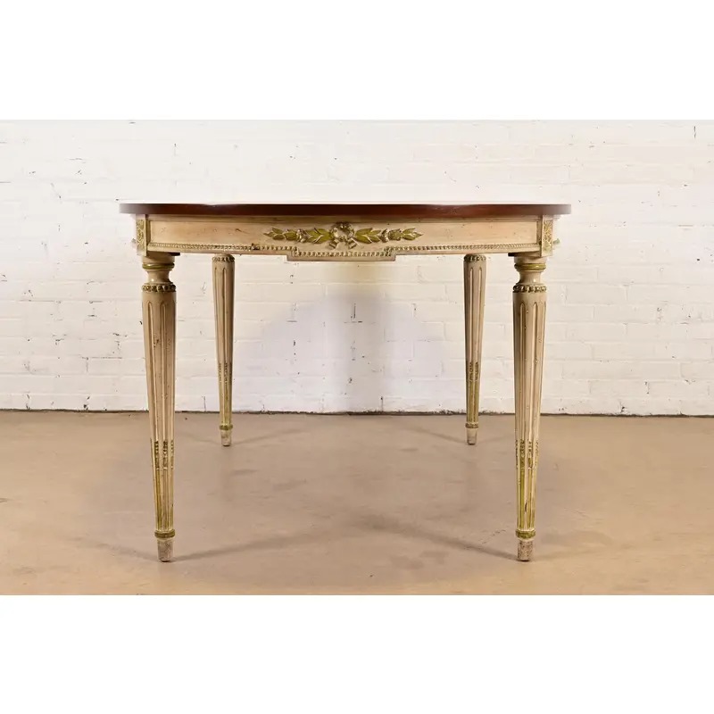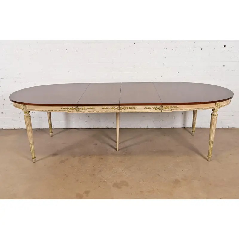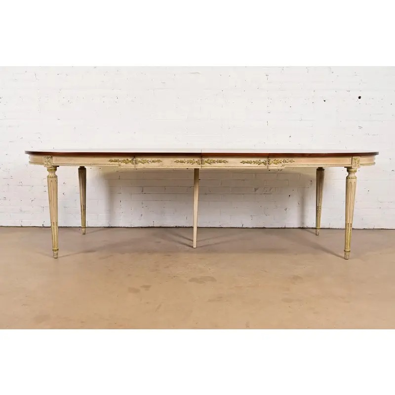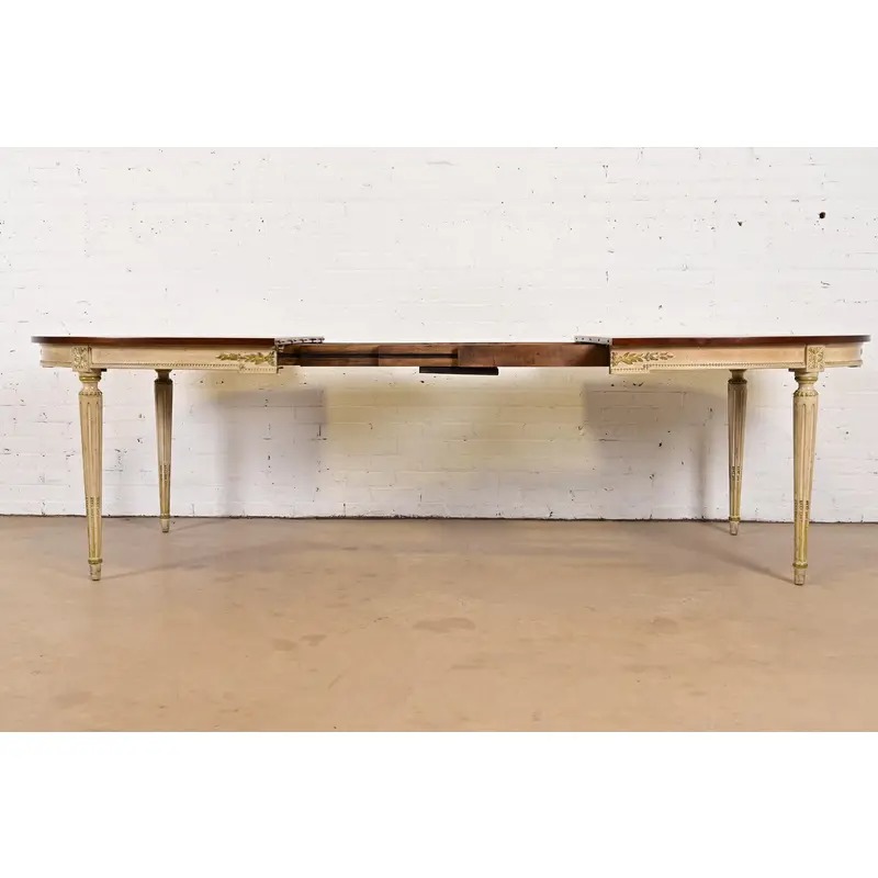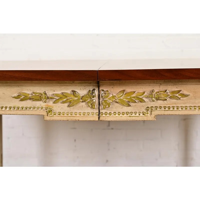 Kindel Furniture Style French Regency Louis XVI Burl Wood Parcel Painted Extension Dining Table, Circa 1960s