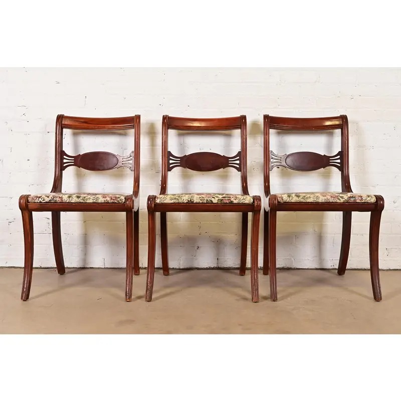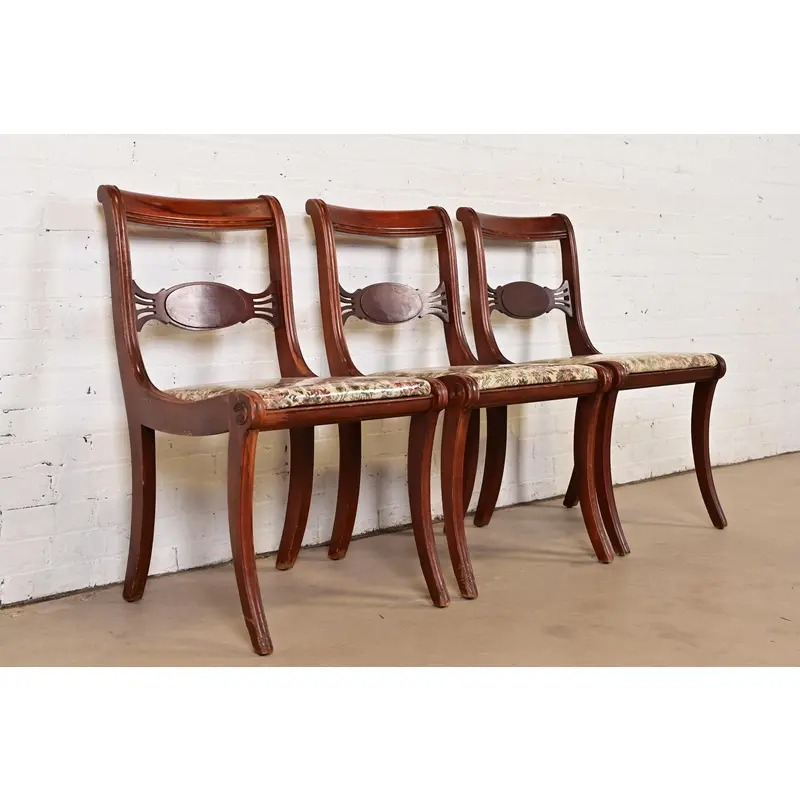 A gorgeous set of three Regency style side chairs or dining chairs