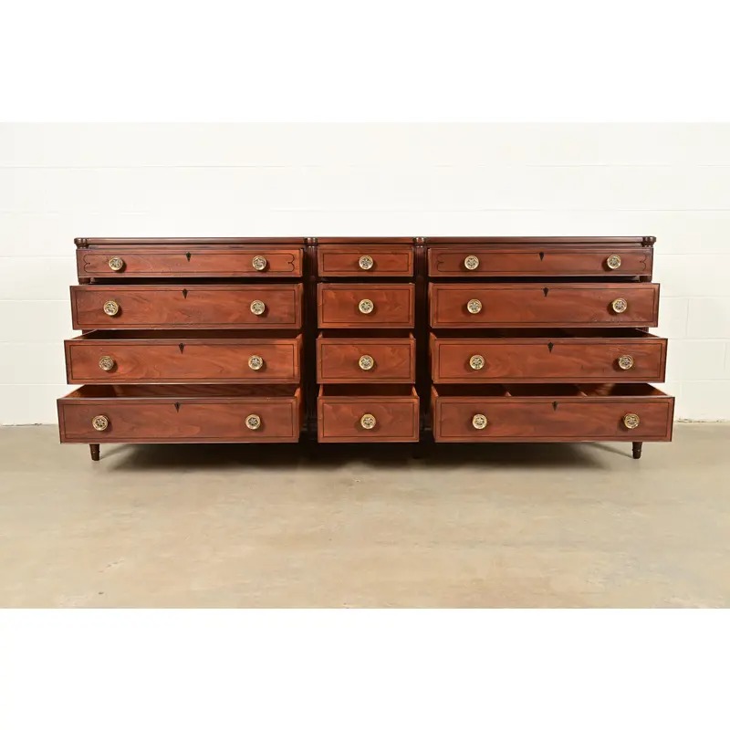 A gorgeous French Regency Louis XVI style twelve-drawer triple dresser or credenza