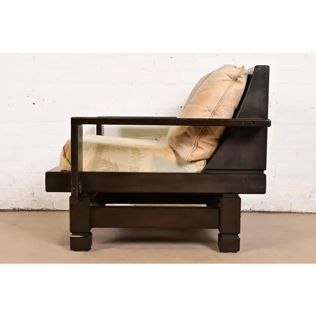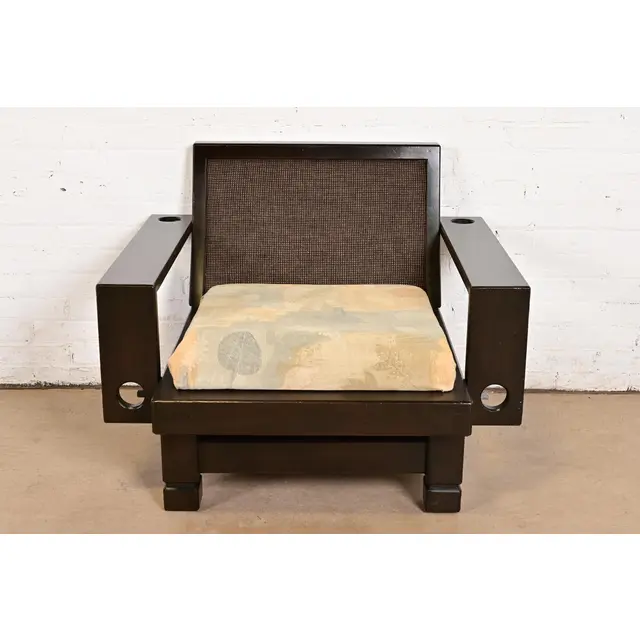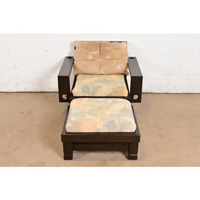 A rare and exceptional Mid-Century Modern Brutalist geometric lounge chair with ottoman