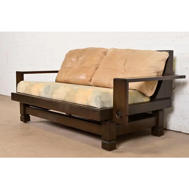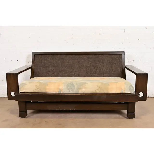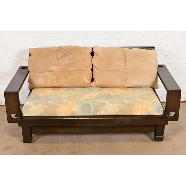 A rare Mid-Century Modern Brutalist geometric loveseat or settee