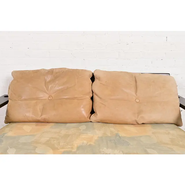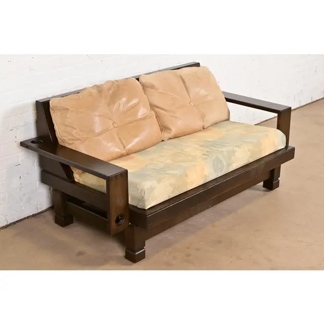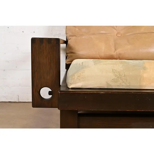 Gorgeous hemlock wood frame, with upholstered seat cushion and leather seat back cushions.
