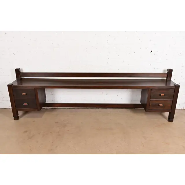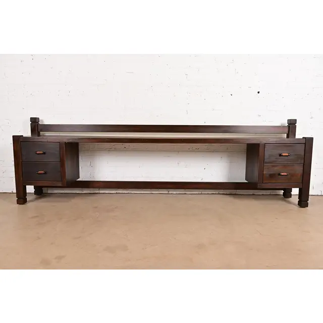 A rare and exceptional Mid-Century Modern rustic Brutalist geometric monumental console table