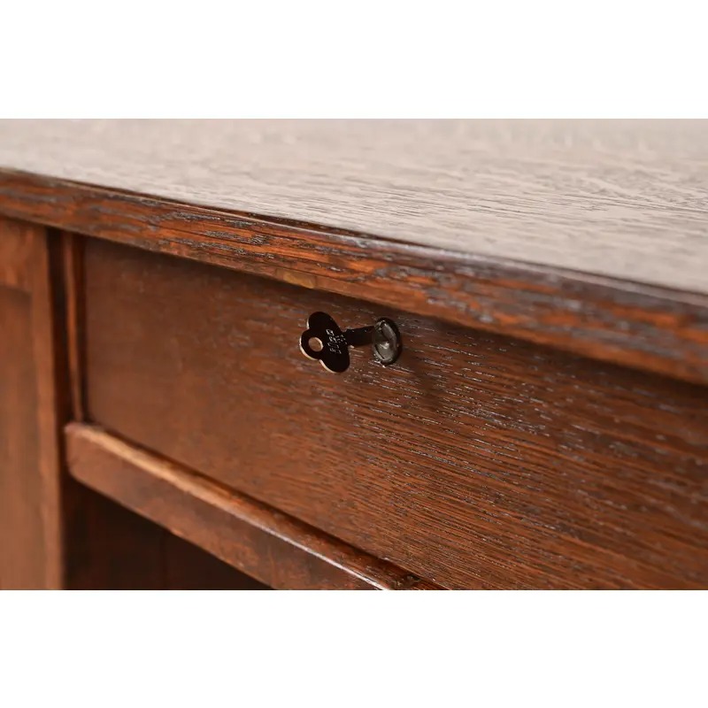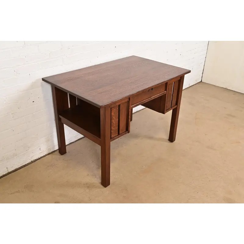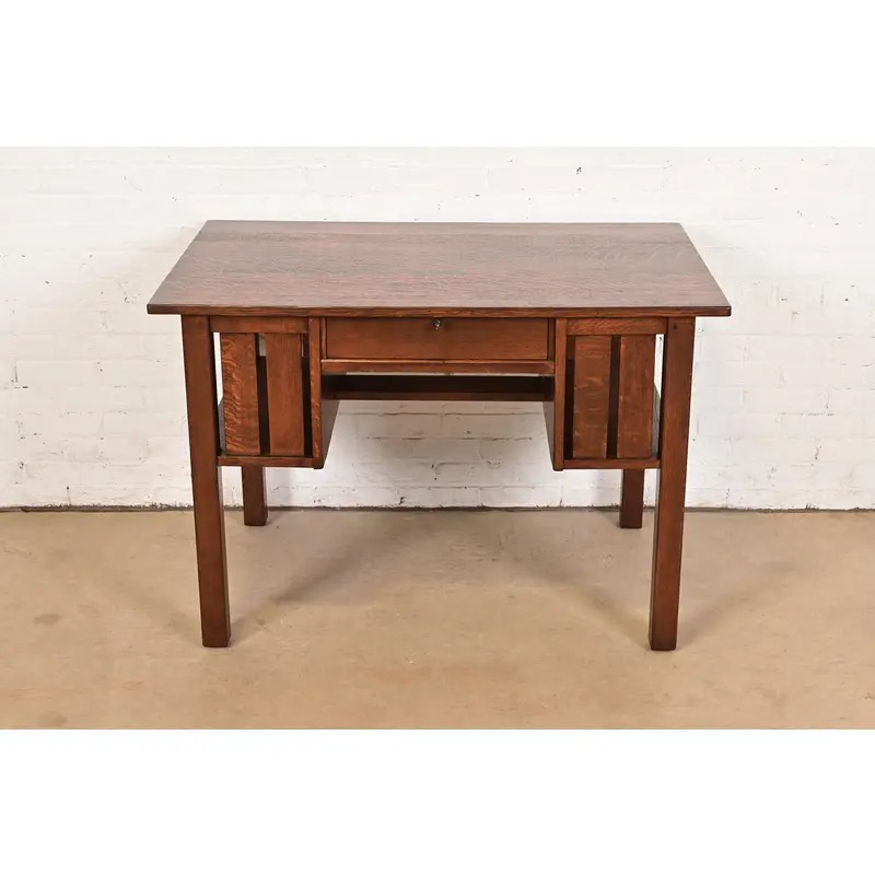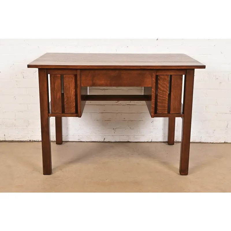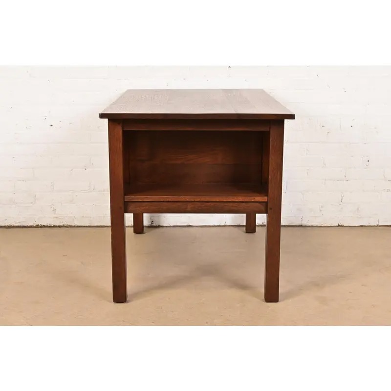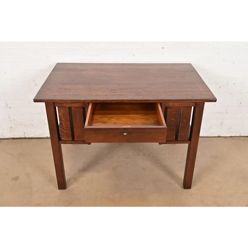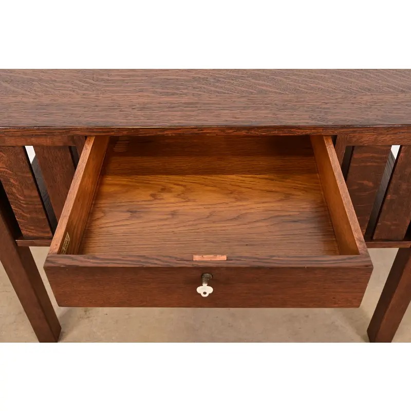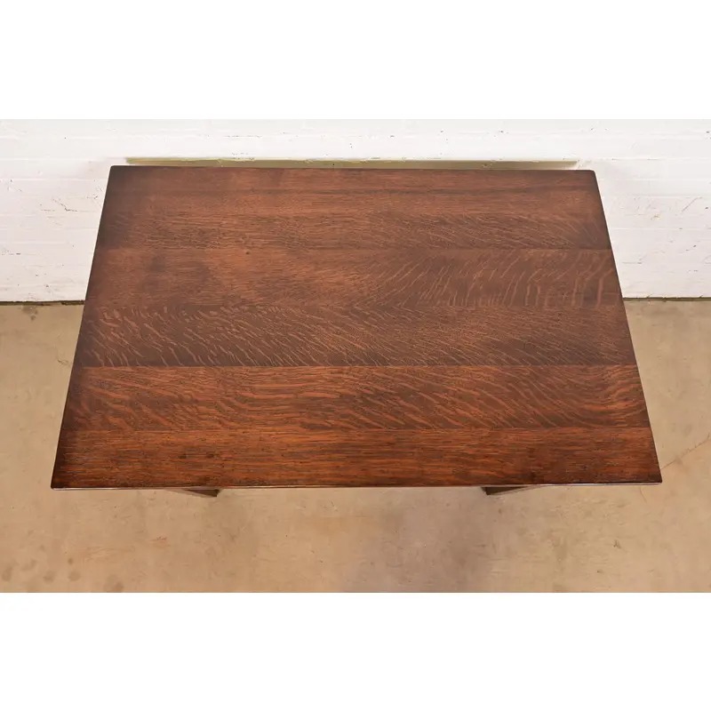 An exceptional antique Mission or Arts & Crafts period quarter sawn oak writing desk or library table
