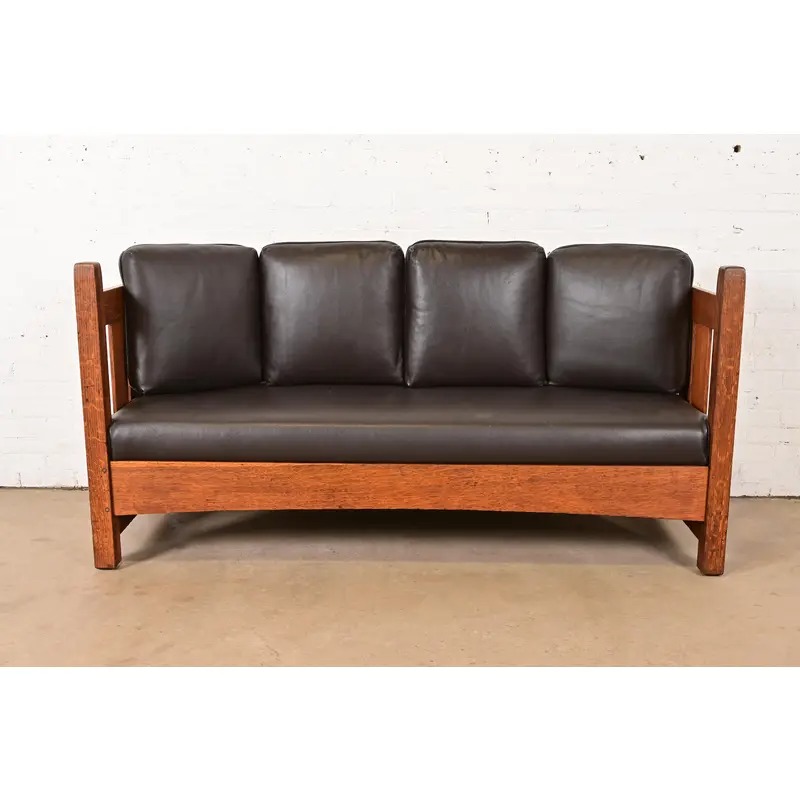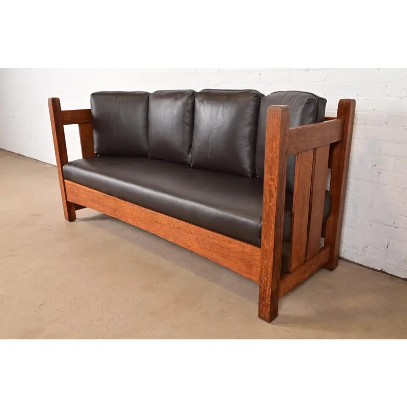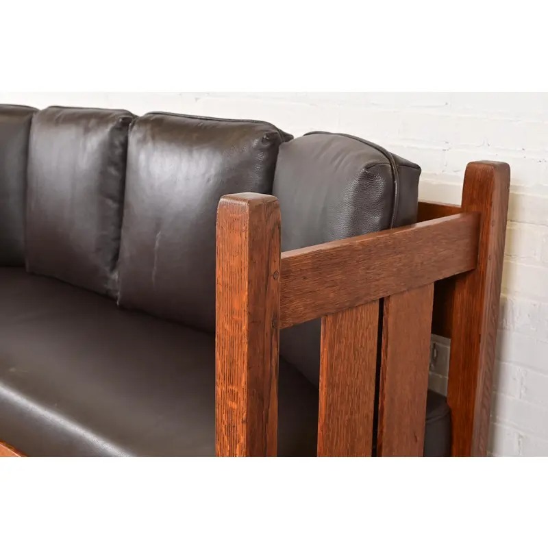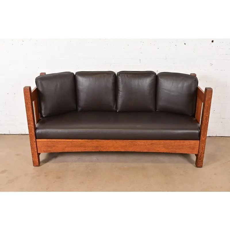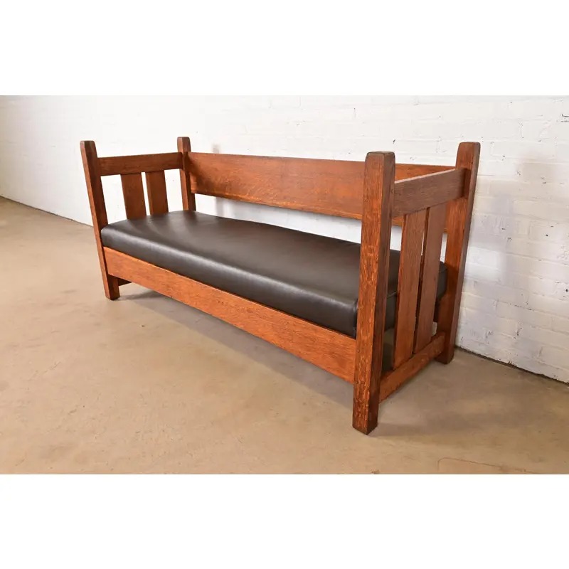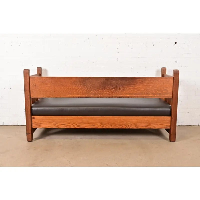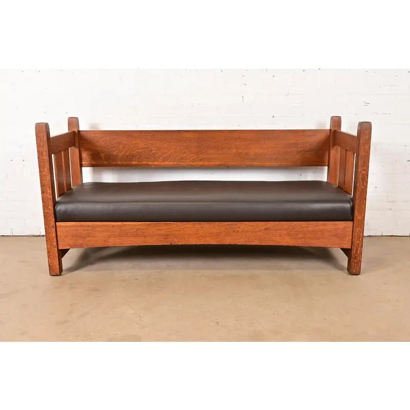 L. & J. G. Stickley Antique Mission Oak Arts & Crafts Settle Sofa, Circa 1910