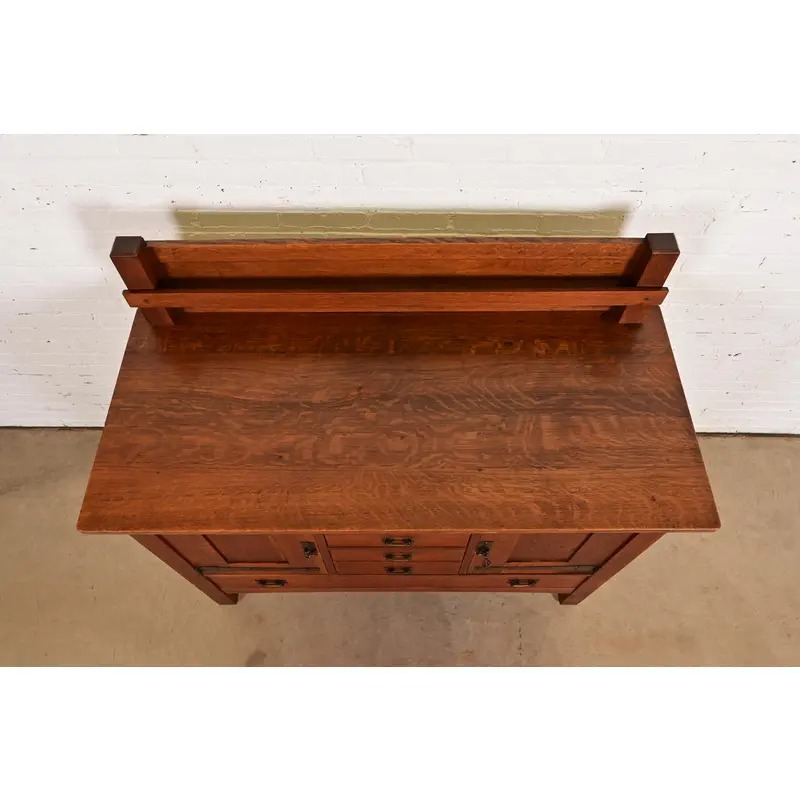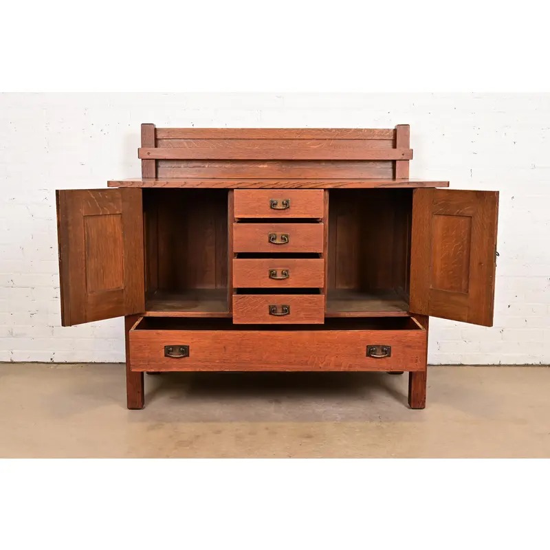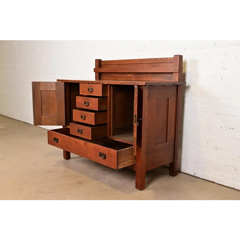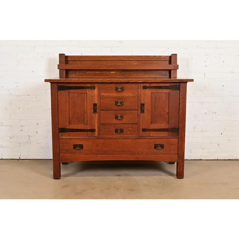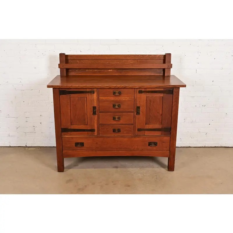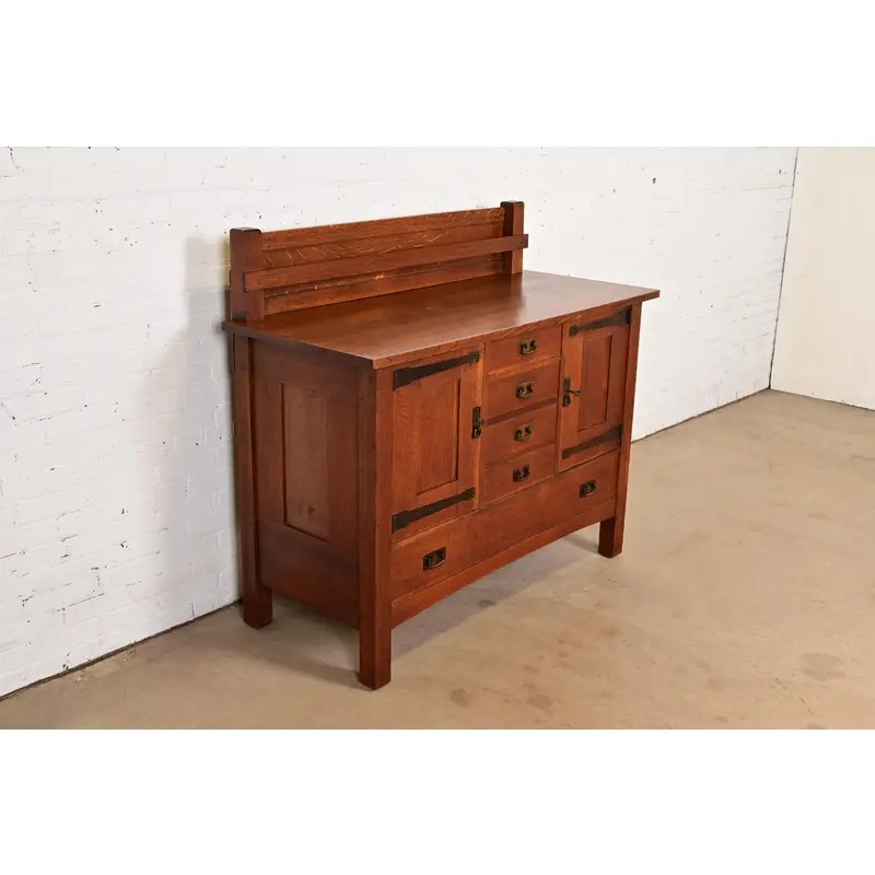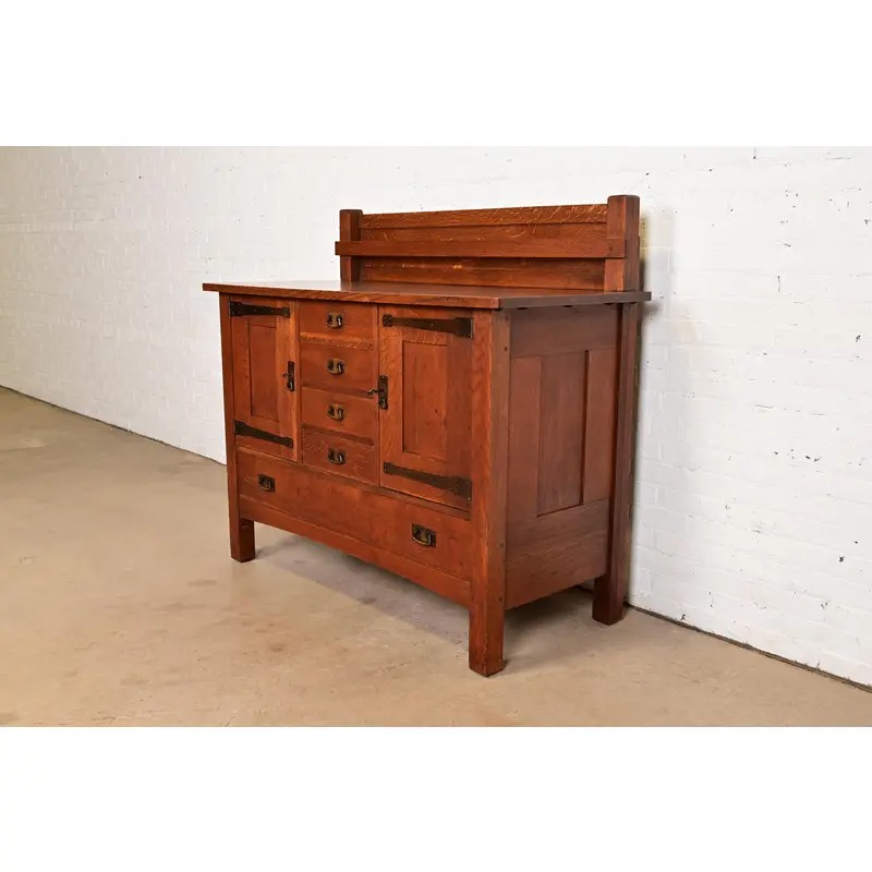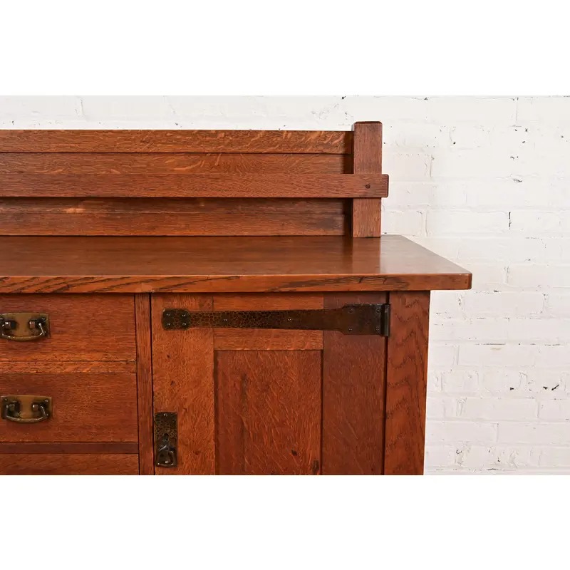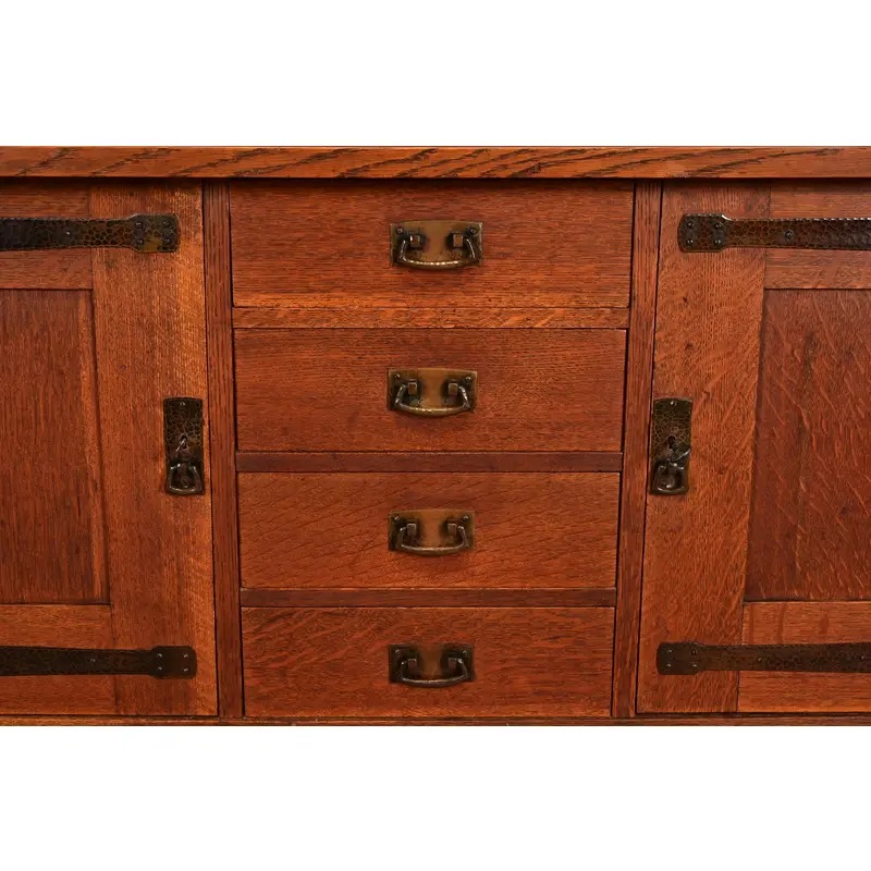 L. & J. G. Stickley Antique Mission Oak Arts & Crafts Strap Hinge Sideboard, Circa 1910
