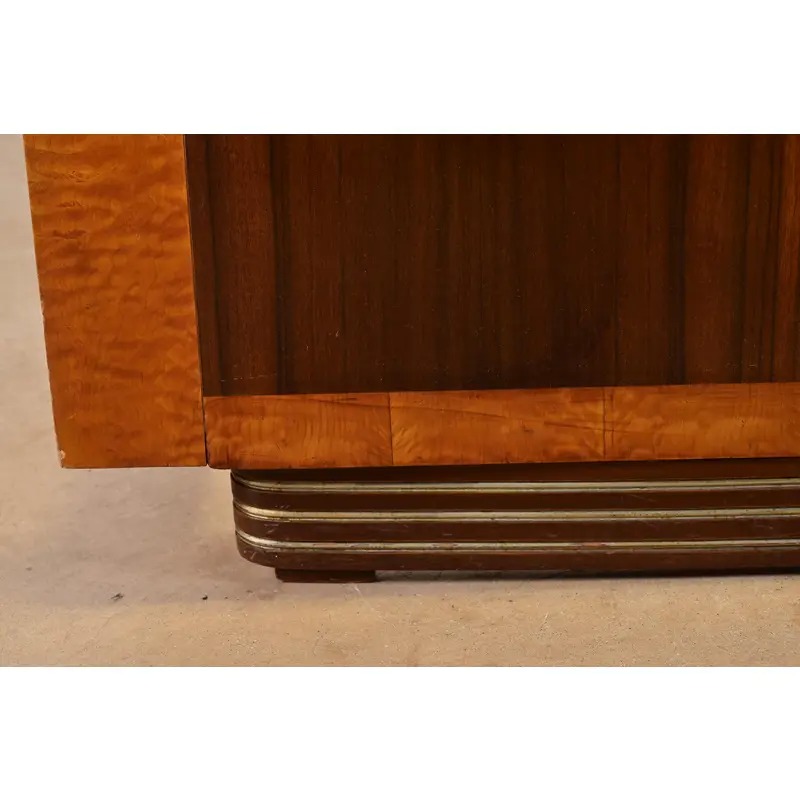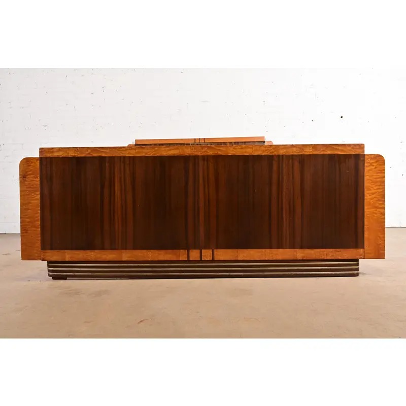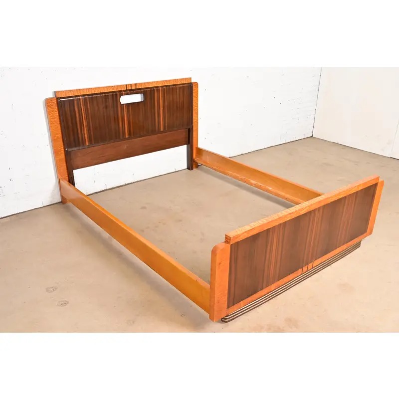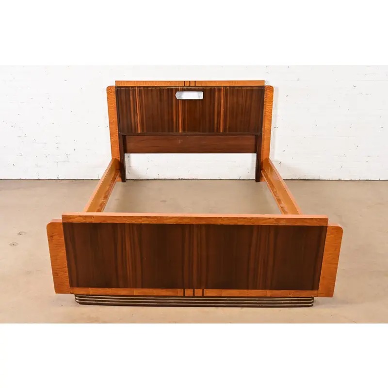 A rare and exceptional antique Art Deco walnut and burl wood queen size bed frame