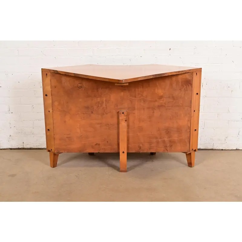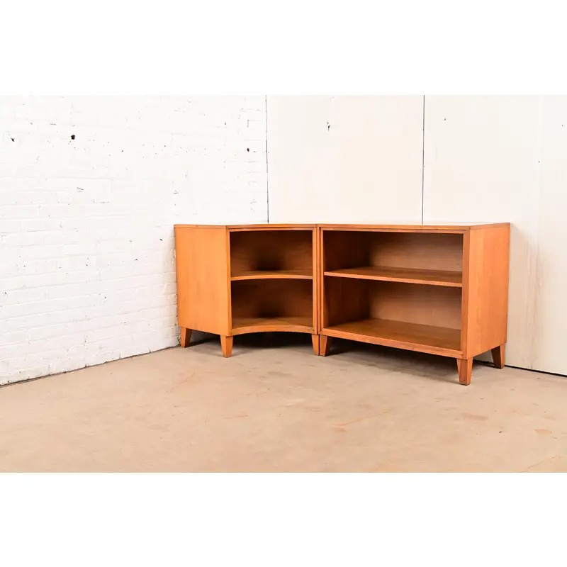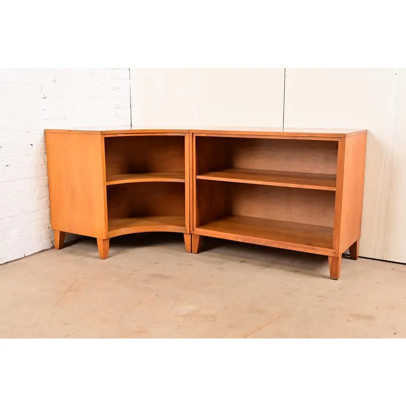 A rare and exceptional Mid-Century Modern solid birch two-piece corner bookcase
