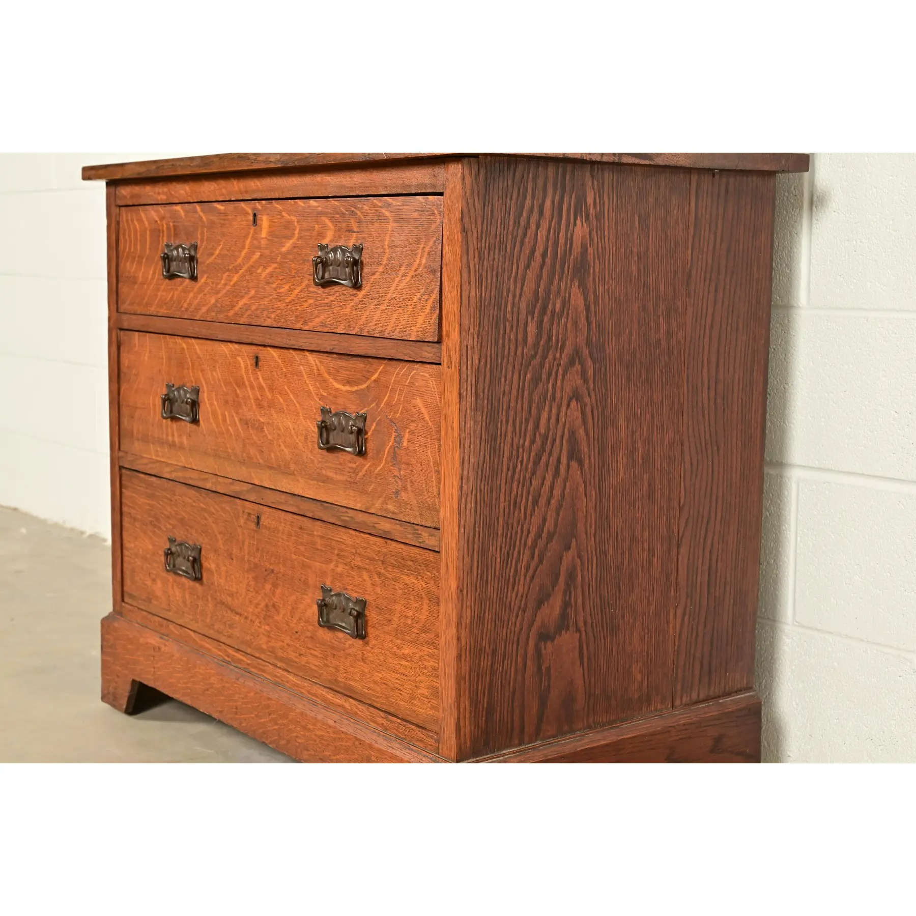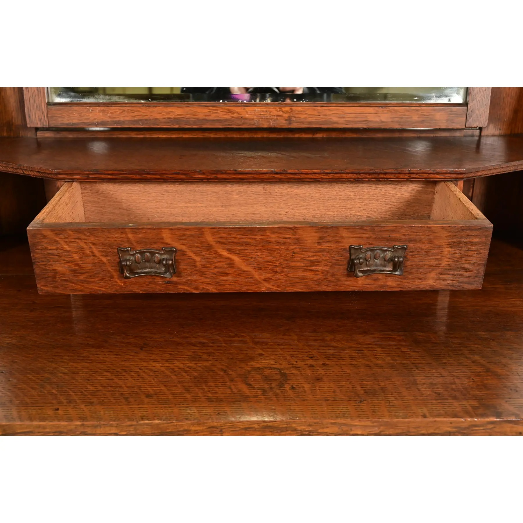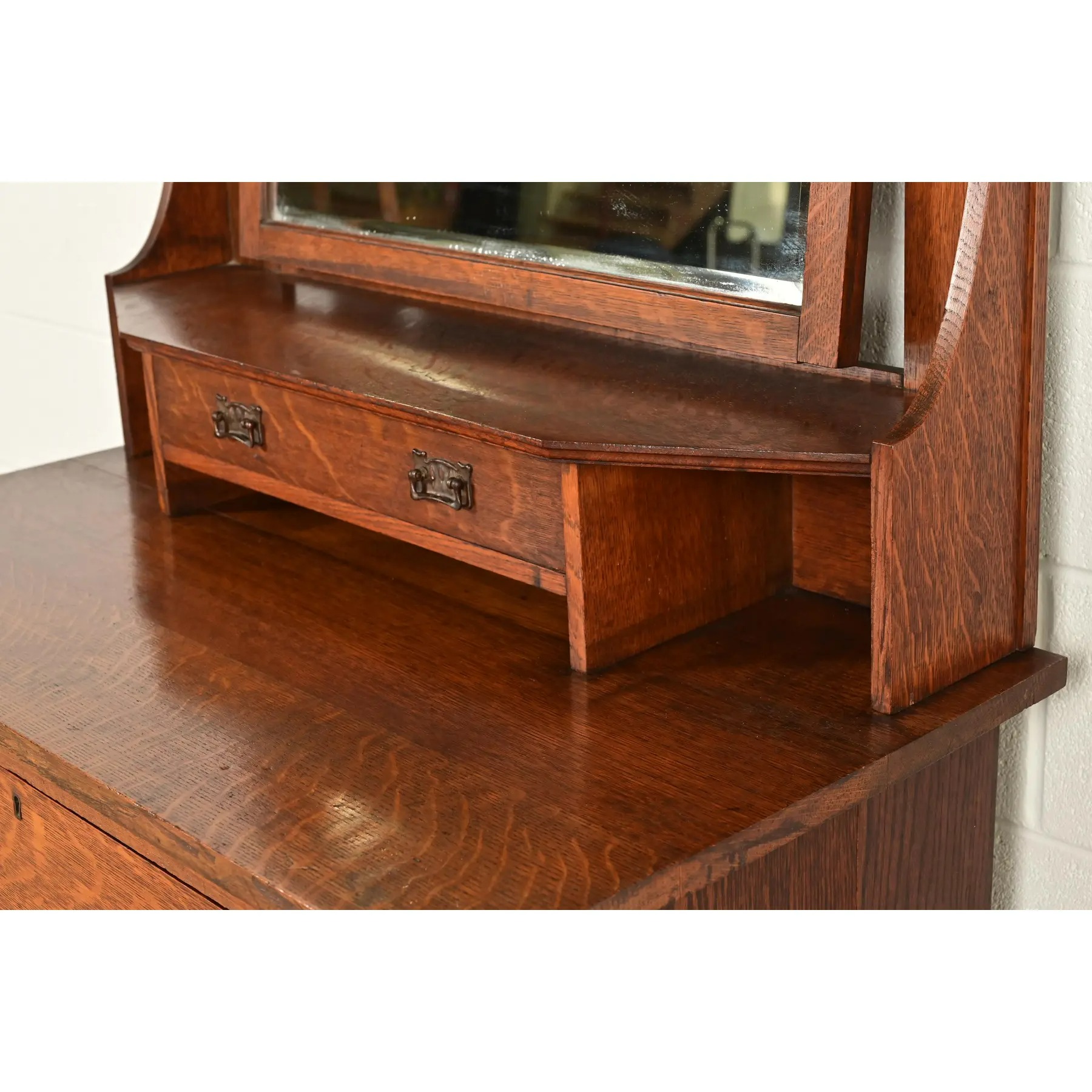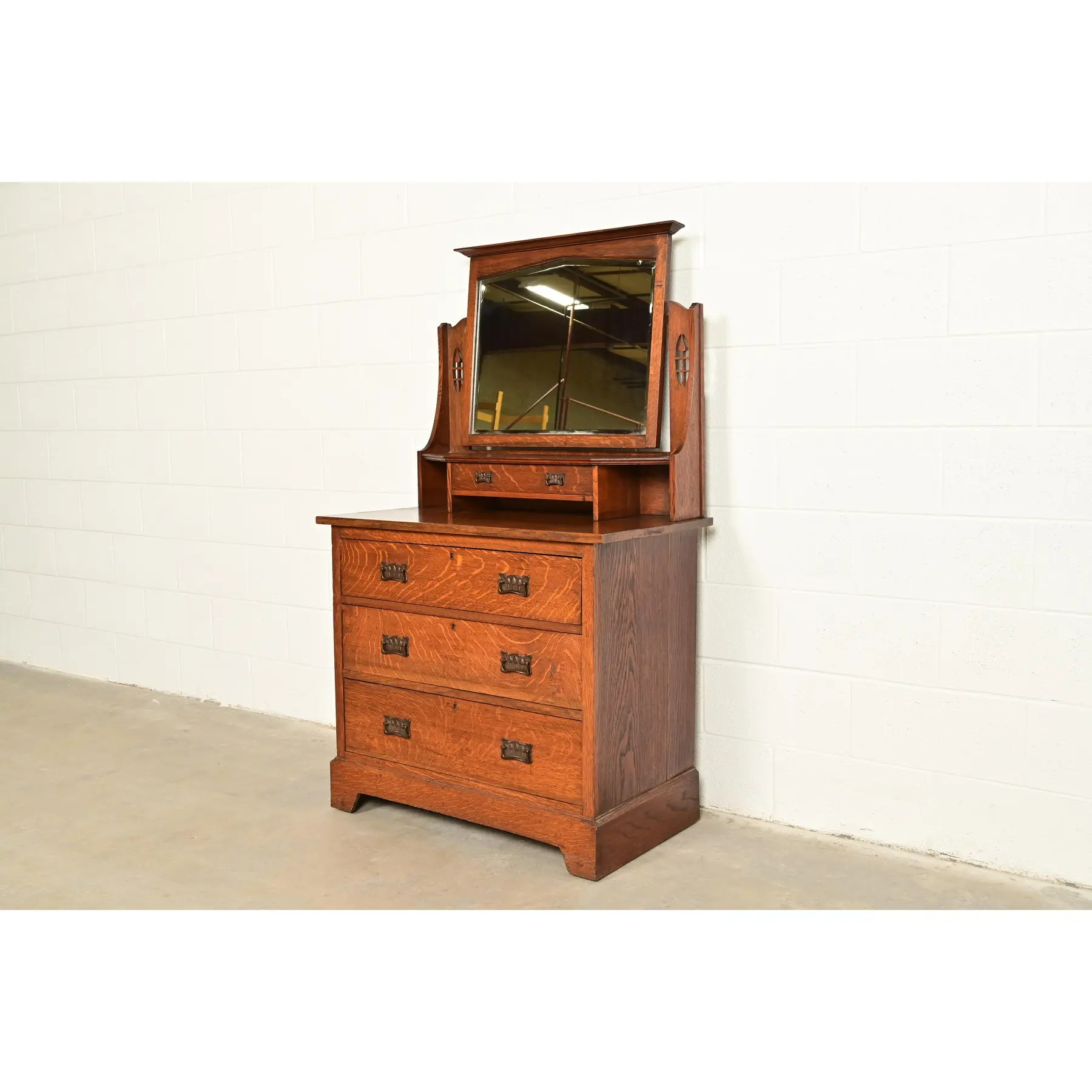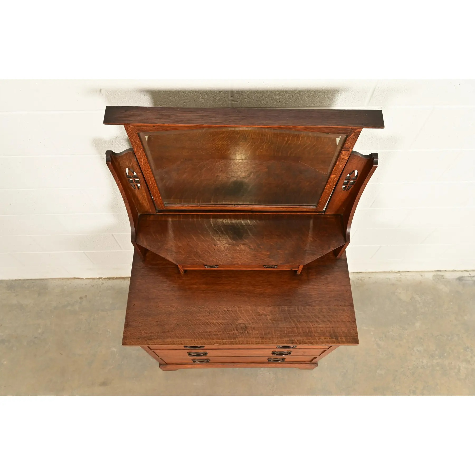 Liberty & Co. Antique English Mission Oak Arts & Crafts Vanity Dresser With Mirror, Circa 1900