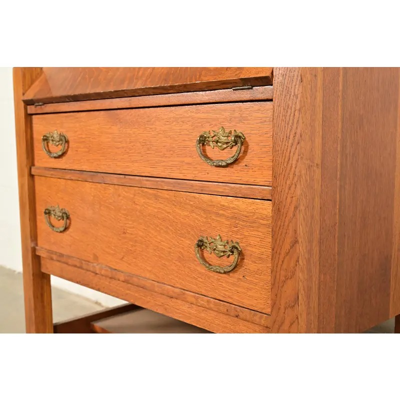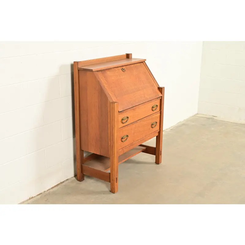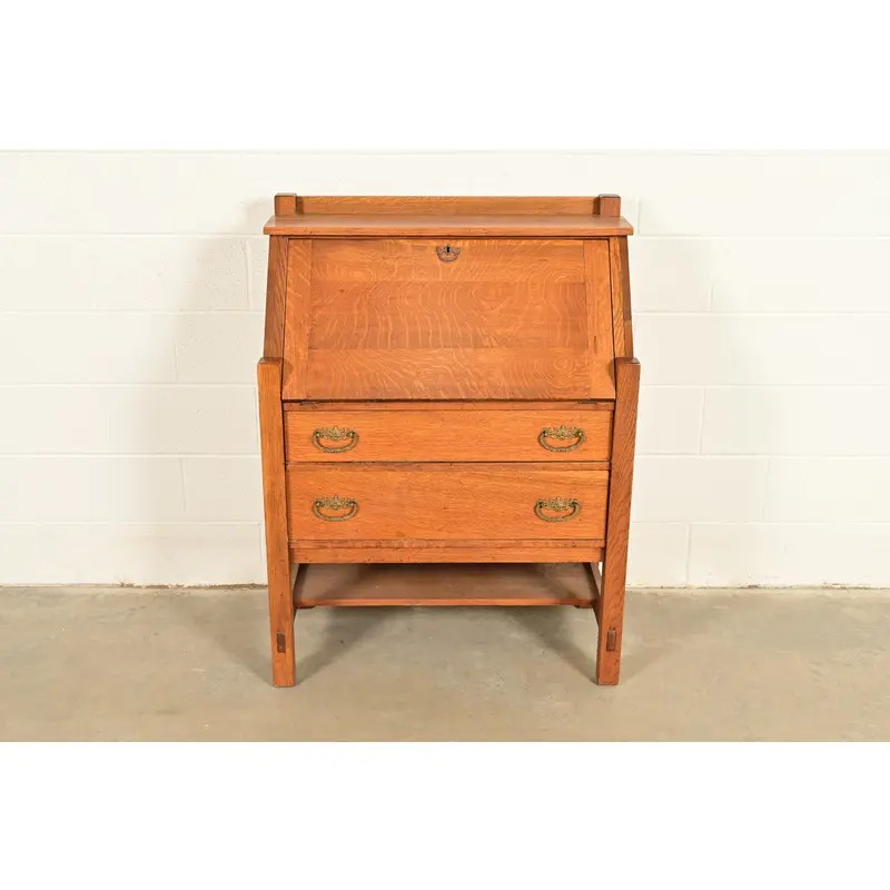 Lifetime Furniture Antique Mission Oak Arts & Crafts Drop Front Secretary Desk, Circa 1910