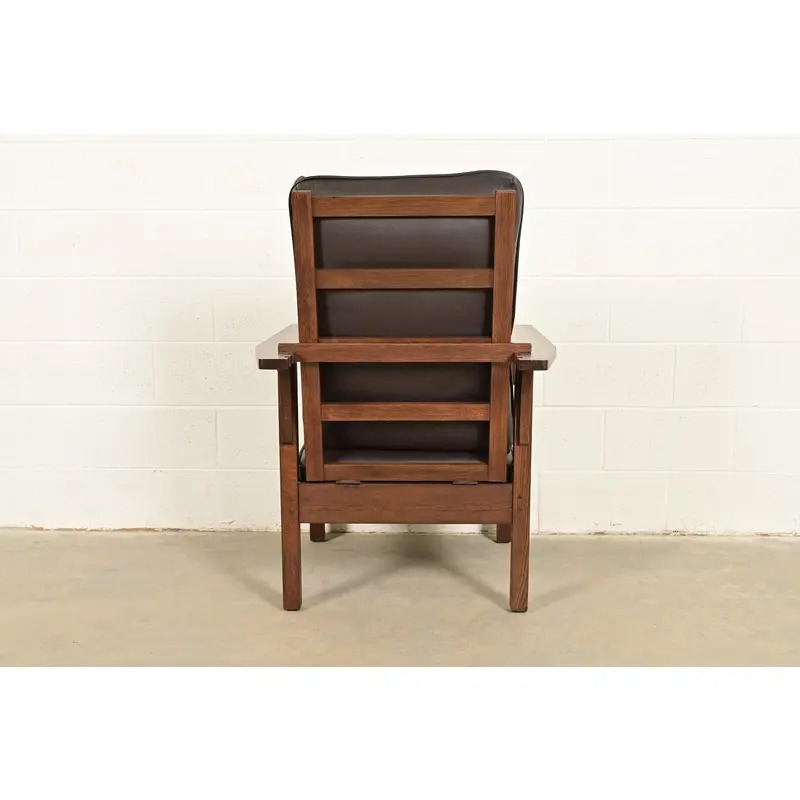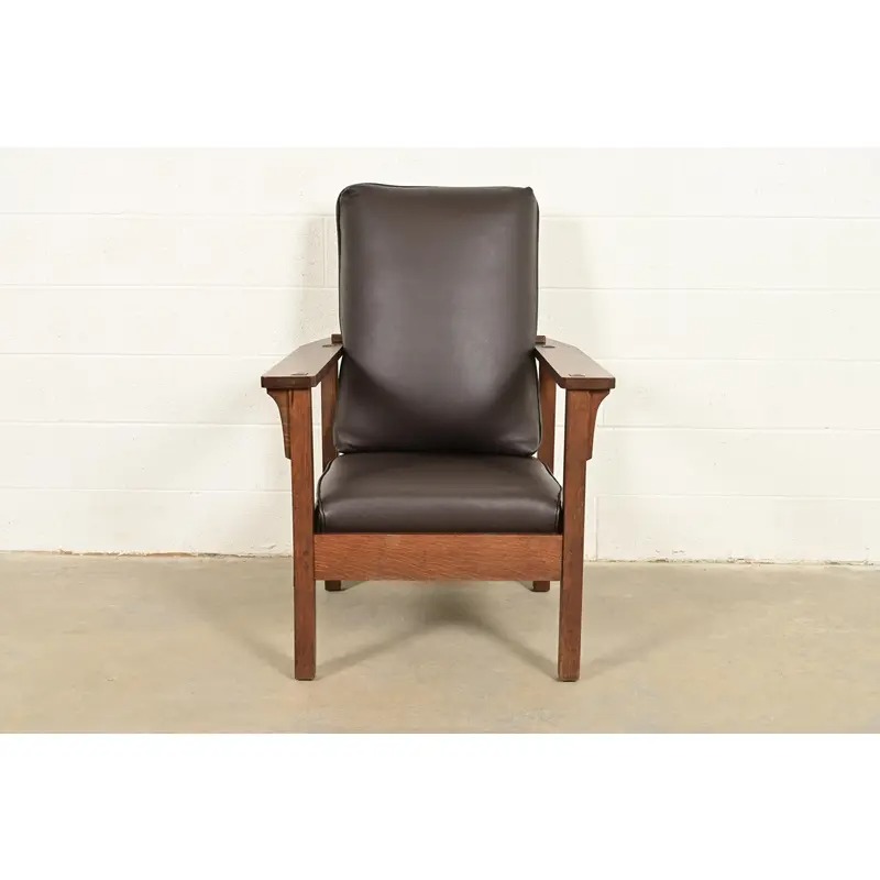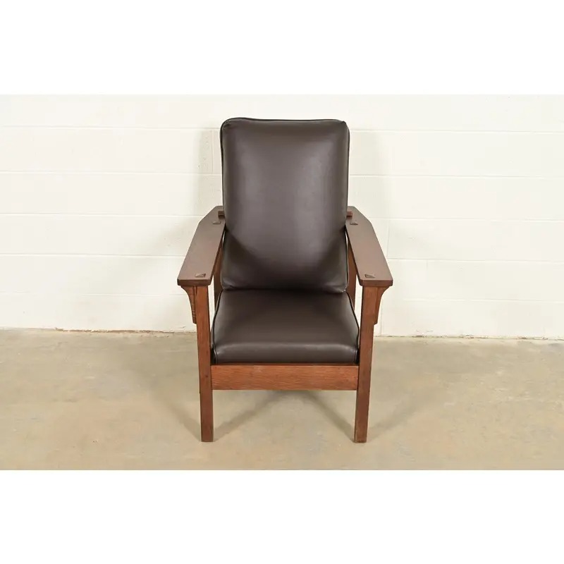 Lifetime Furniture Antique Mission Oak Arts & Crafts Open Arm Reclining Morris Lounge Chair, Circa 1910