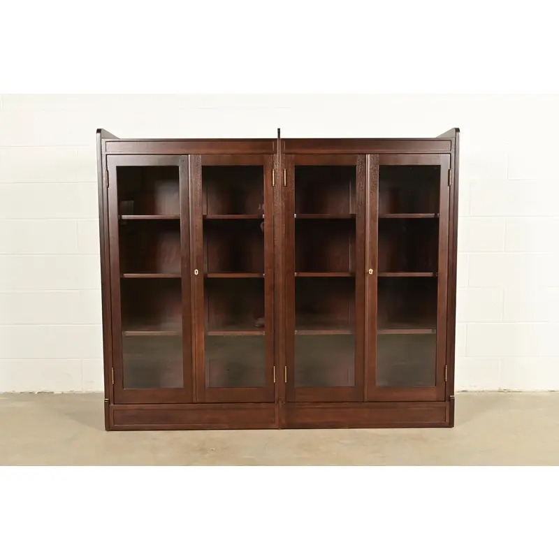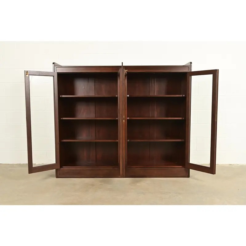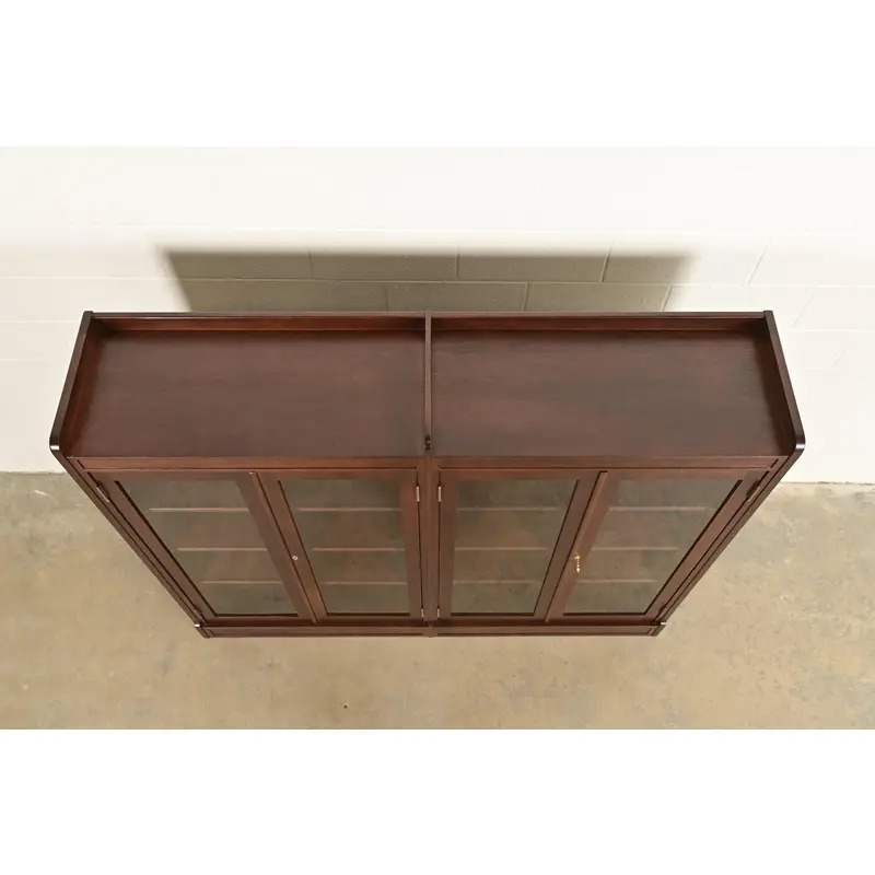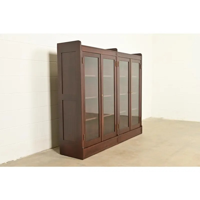 Limbert Style Antique Arts & Crafts Mahogany Double Bookcase Cabinet, Newly Refinished