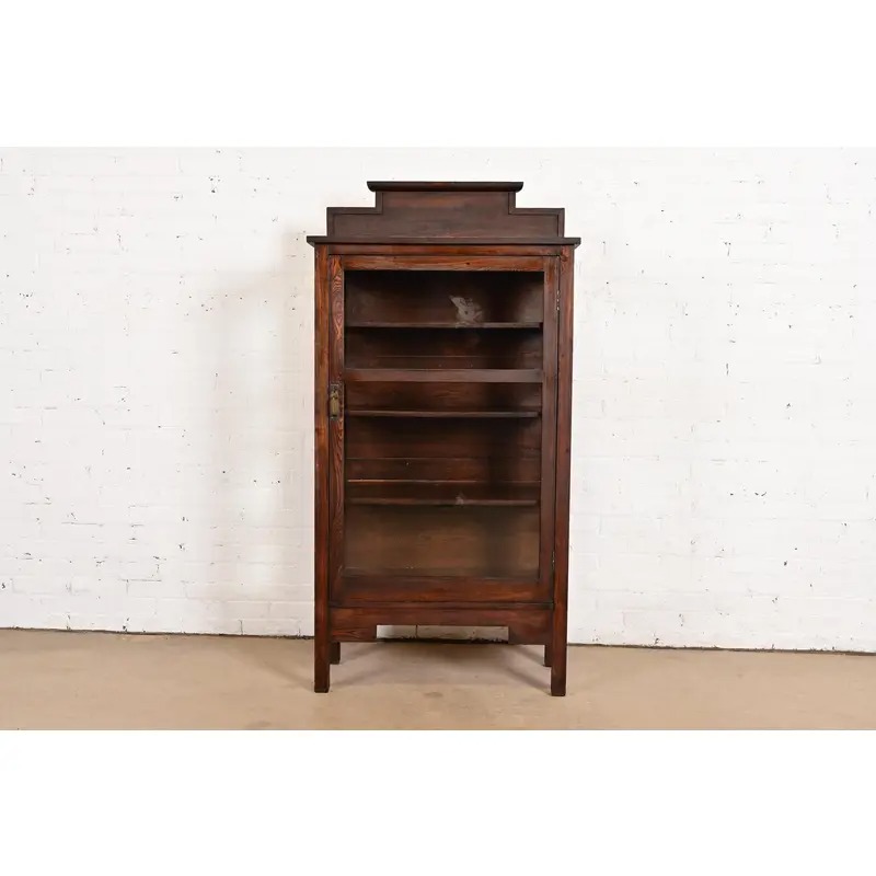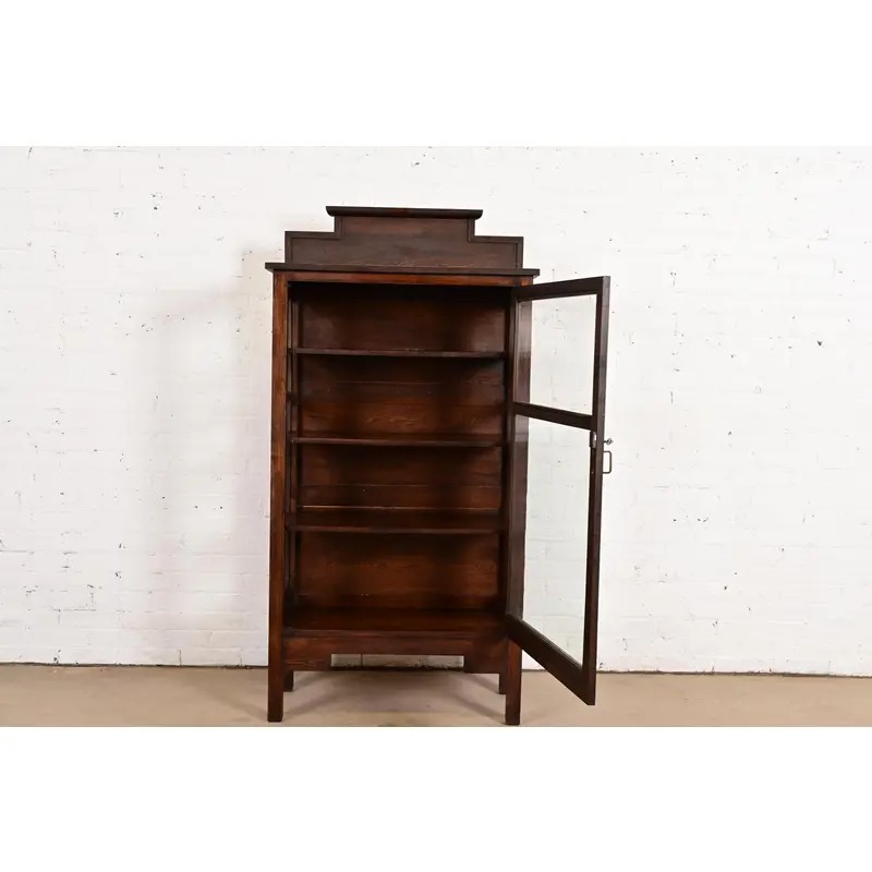 An exceptional antique Mission or Arts & Crafts period bookcase, dining cabinet, or display cabinet