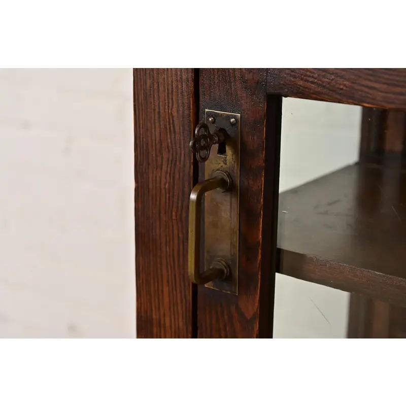 Limbert Style Antique Mission Oak Arts & Crafts Bookcase or China Cabinet, Circa 1905