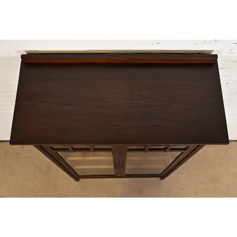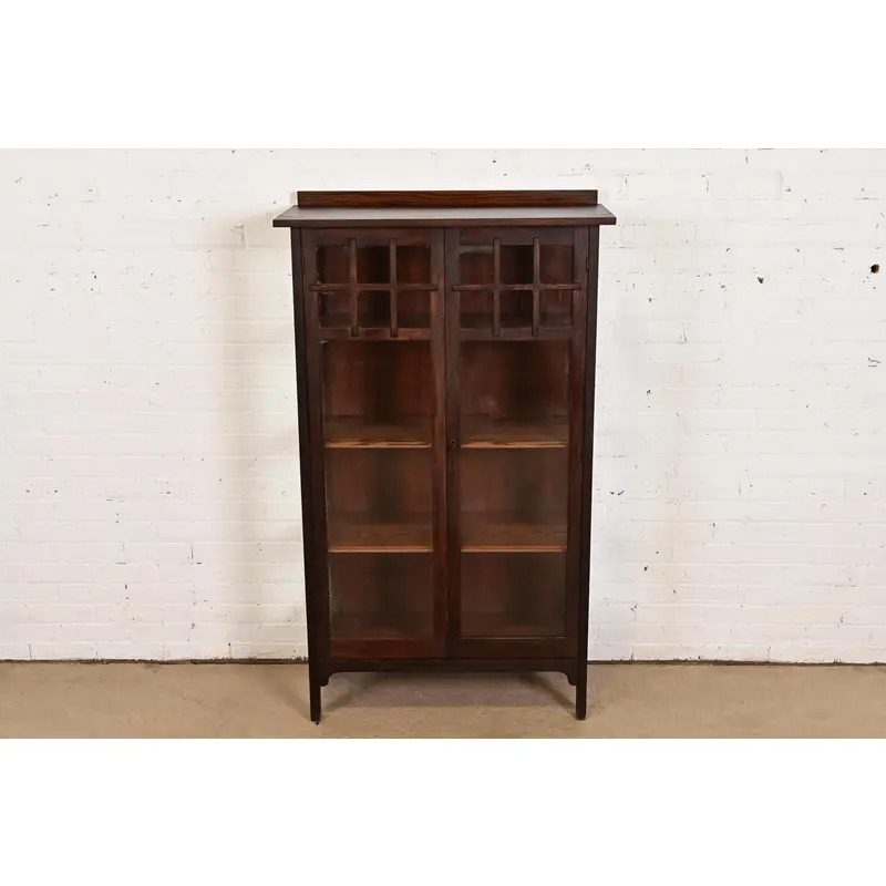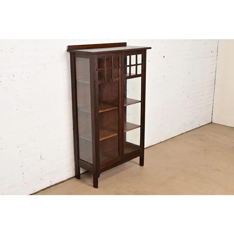A beautiful antique Mission or Arts & Crafts period glass front bookcase or display cabinet