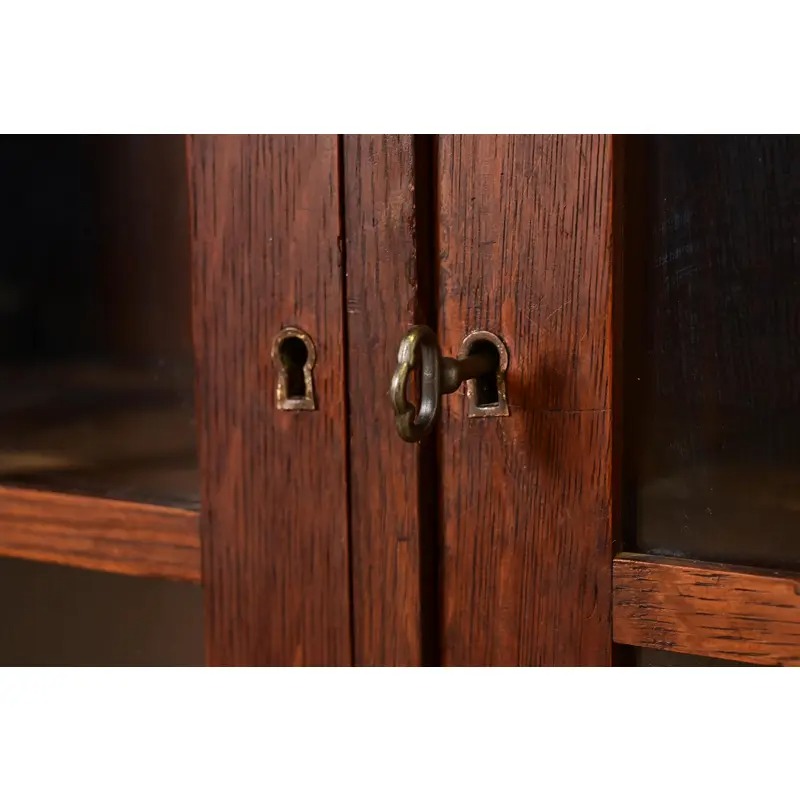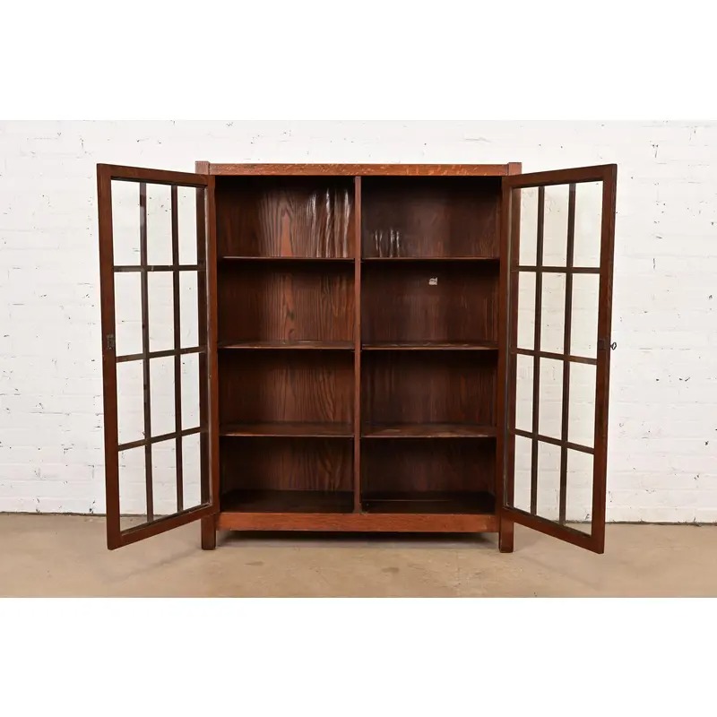 Limbert Style Mission Oak Arts & Crafts Glass Front Double Bookcase Cabinet, Circa 1900