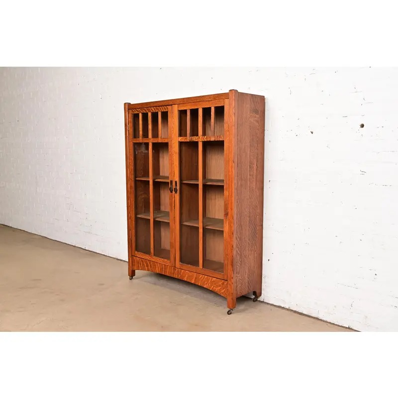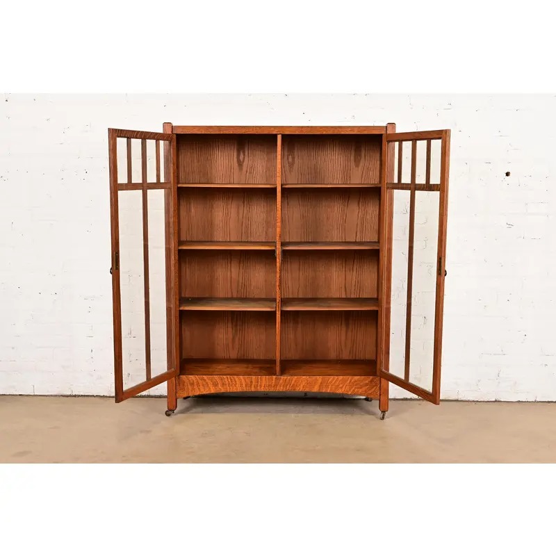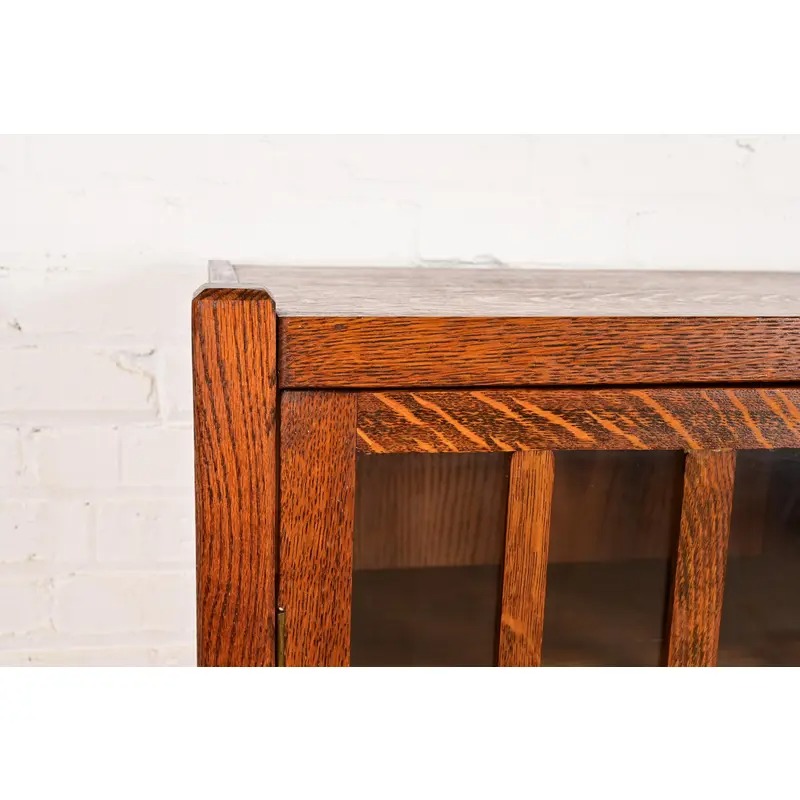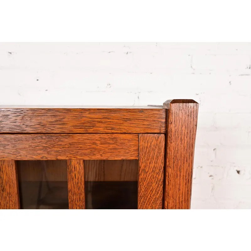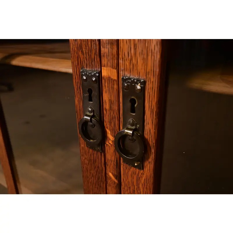 Limbert Style Mission Oak Arts & Crafts Glass Front Double Bookcase Cabinet, Circa 1900