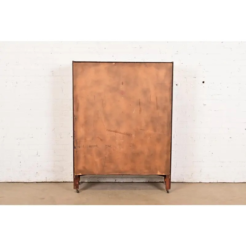 Gorgeous quarter sawn oak, with mullioned glass front doors and hammered copper hardware.