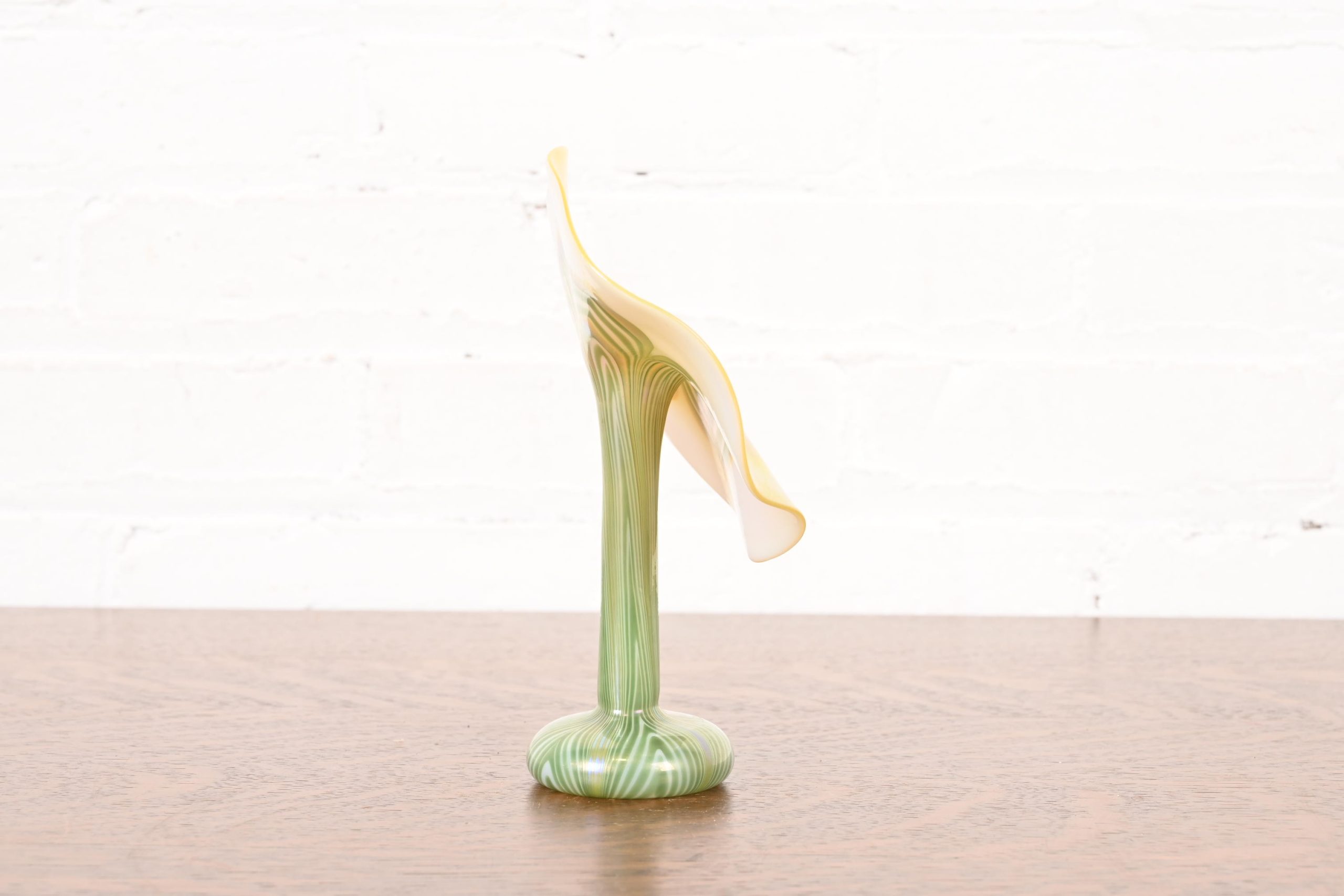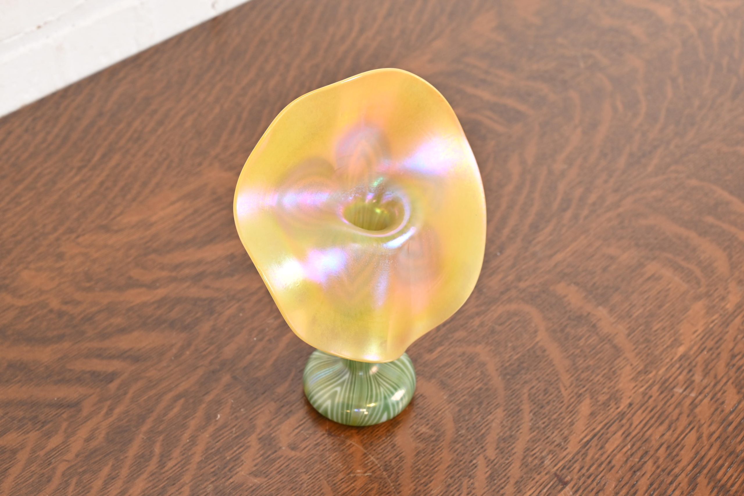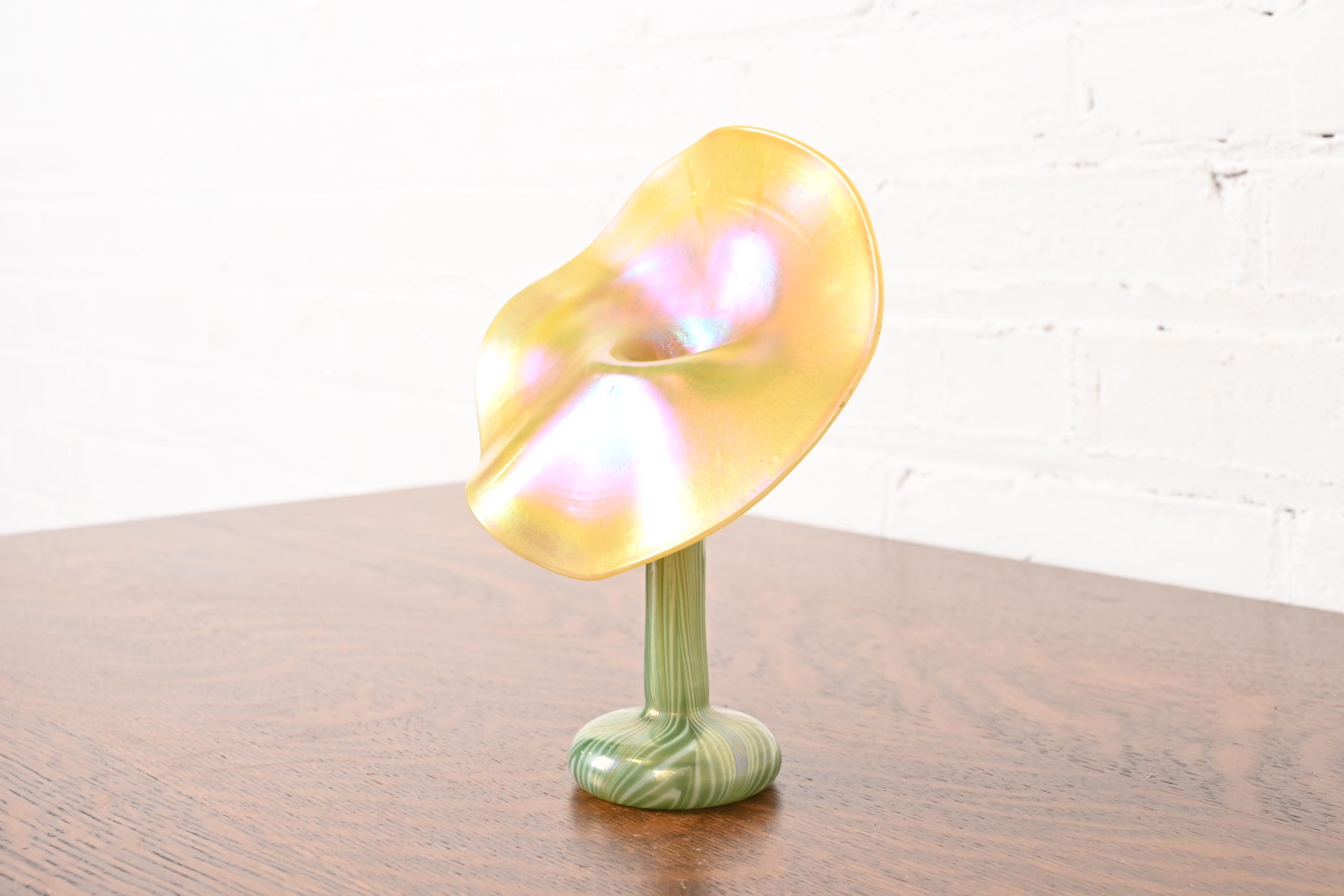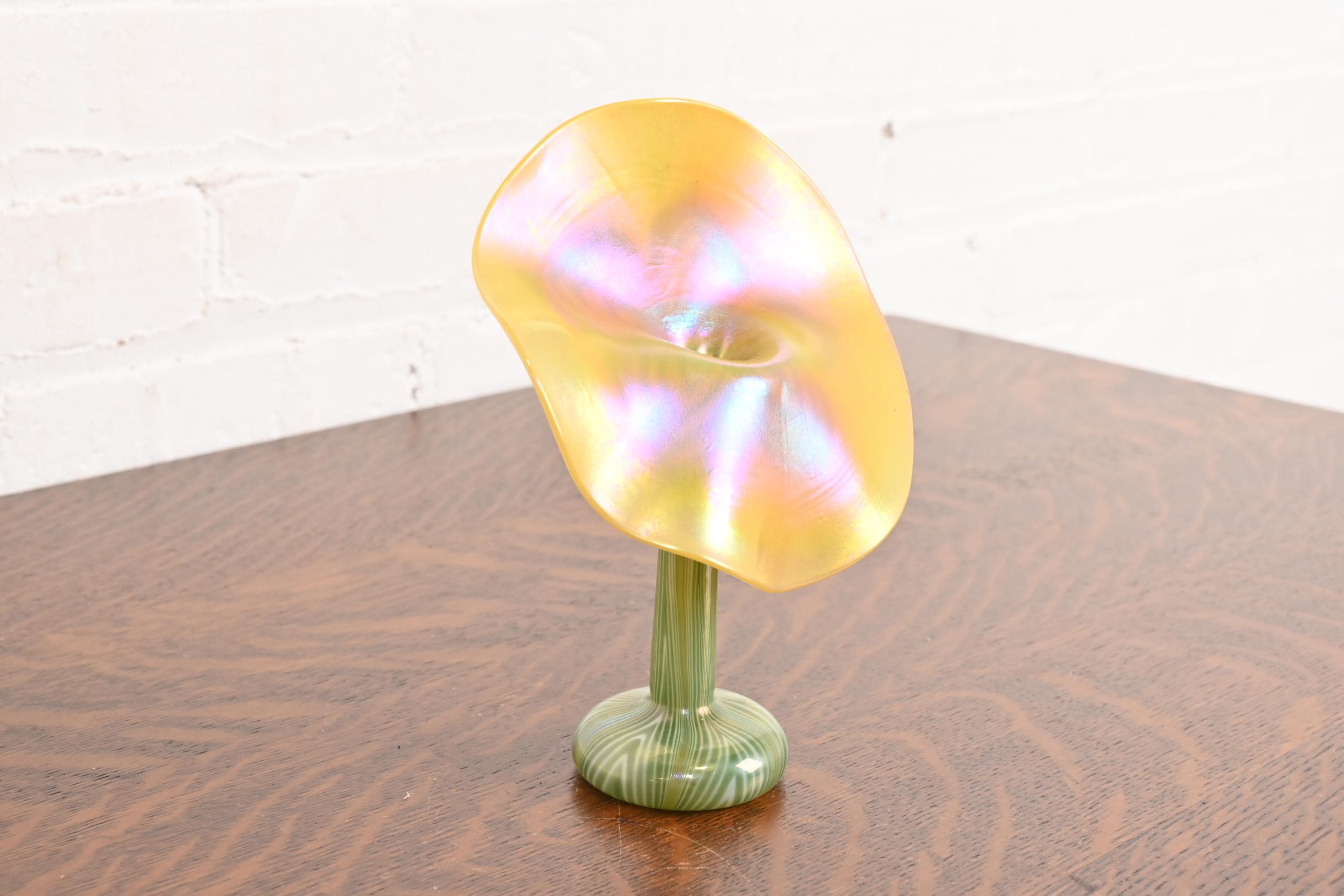 Louis Comfort Tiffany Style Jack in the Pulpit Flower Form Iridescent Art Glass Vase