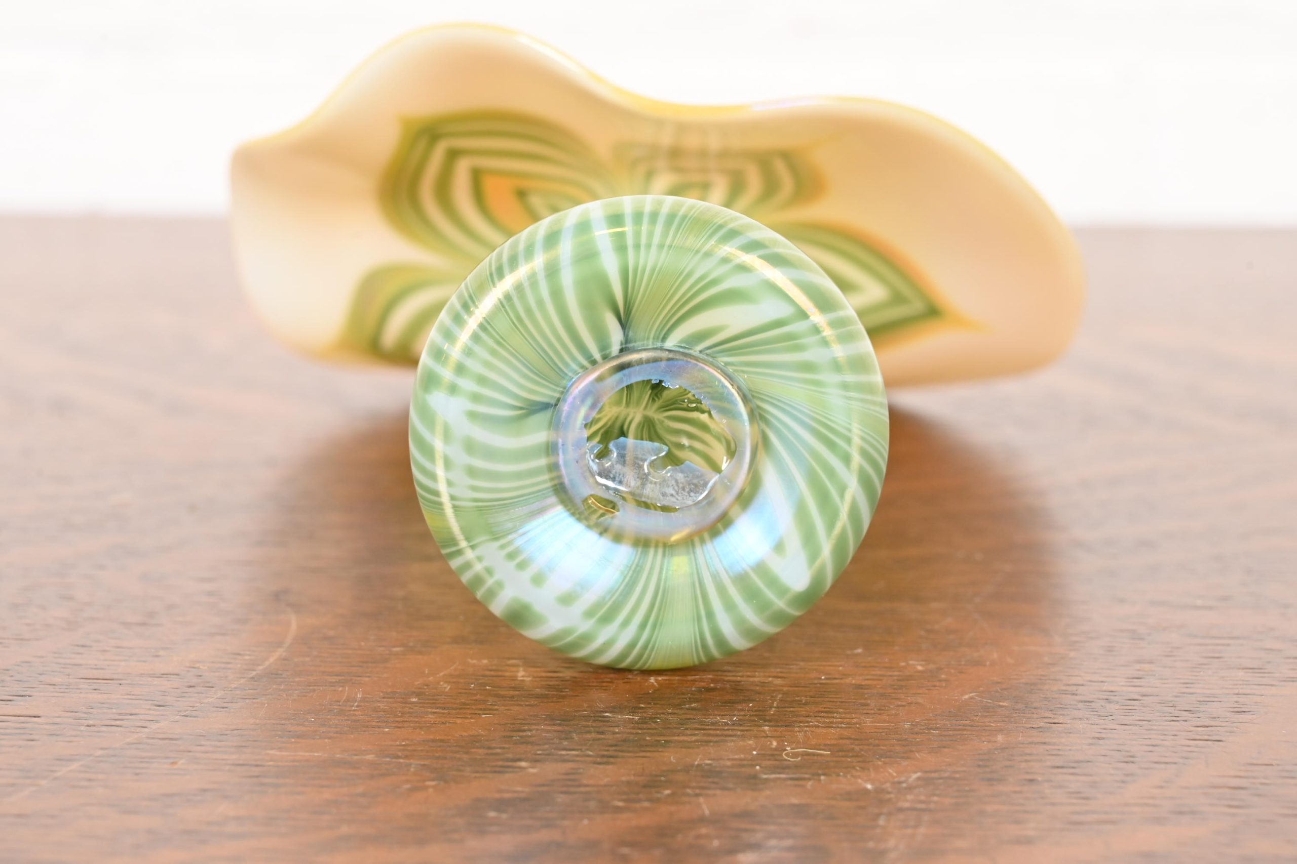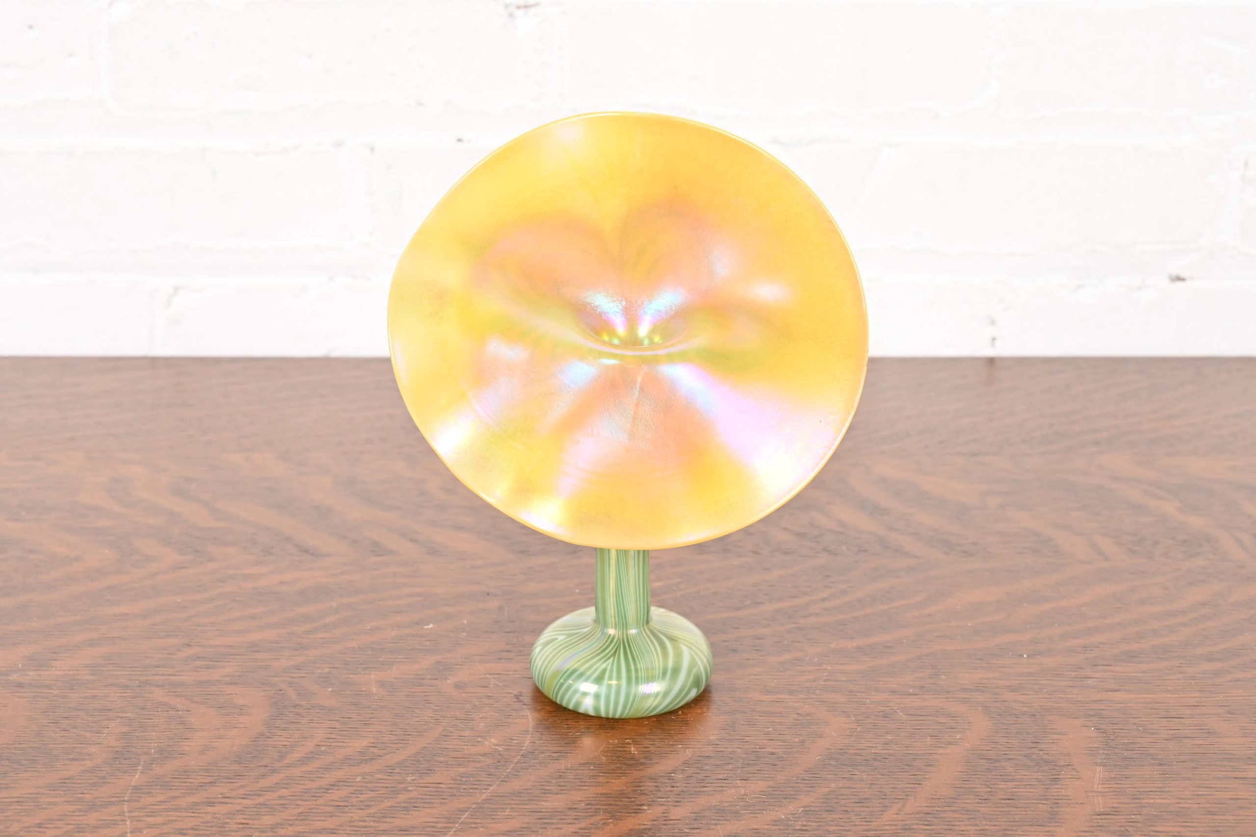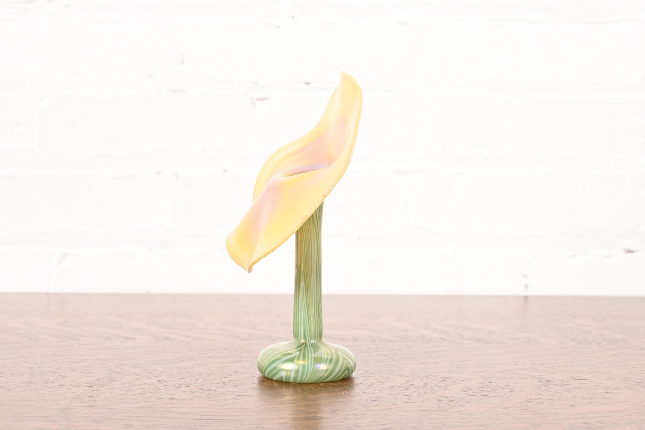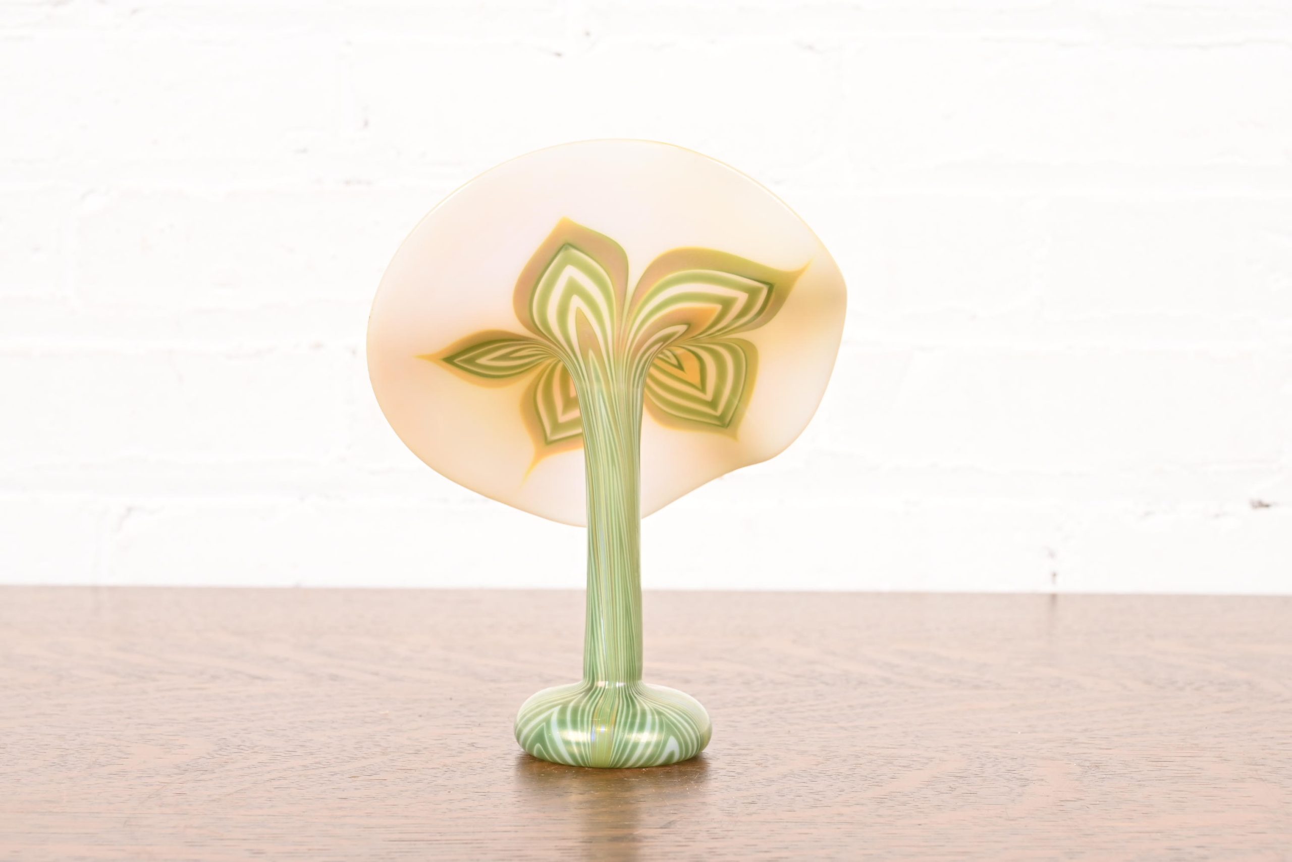 Louis Comfort Tiffany Style Jack in the Pulpit Flower Form Iridescent Art Glass Vase