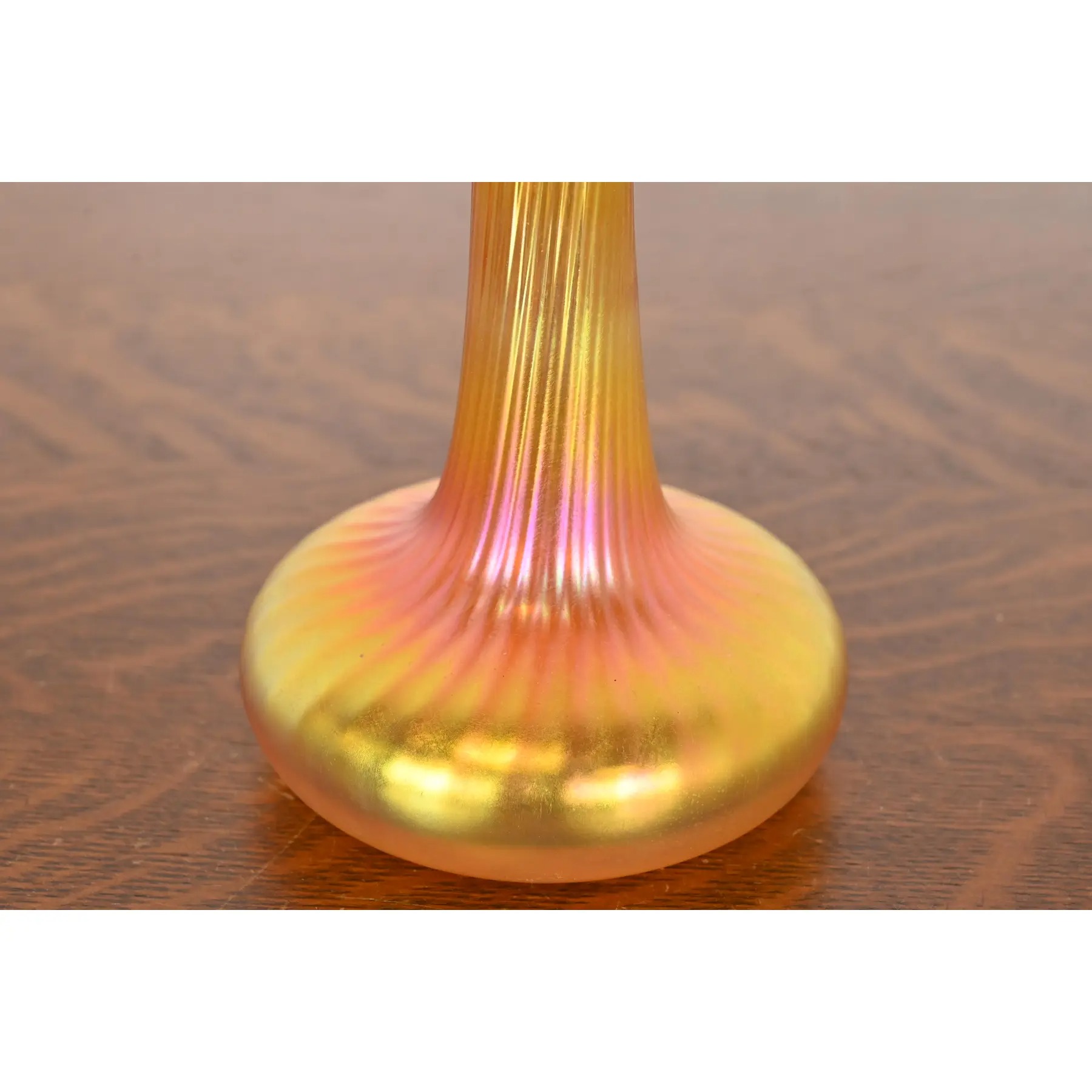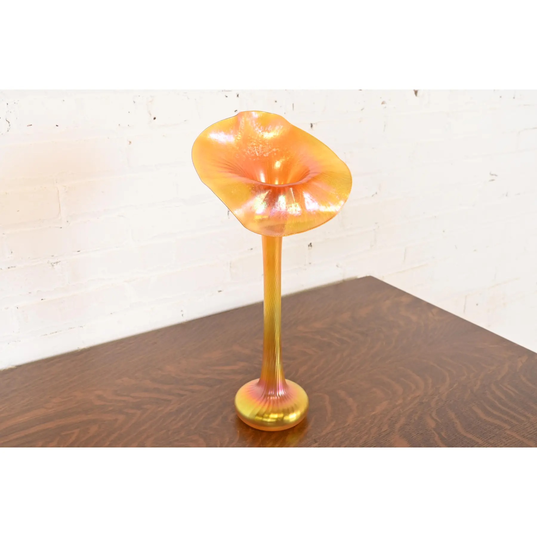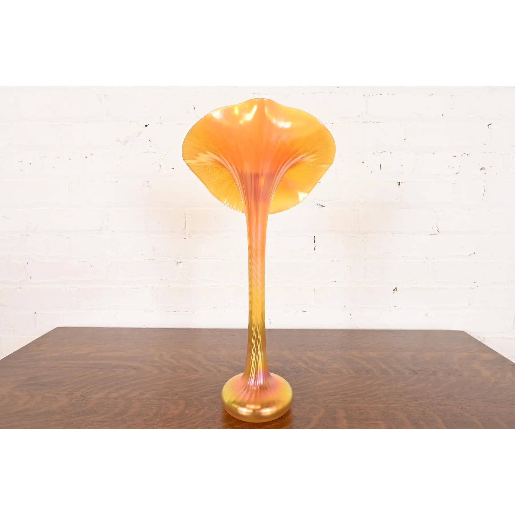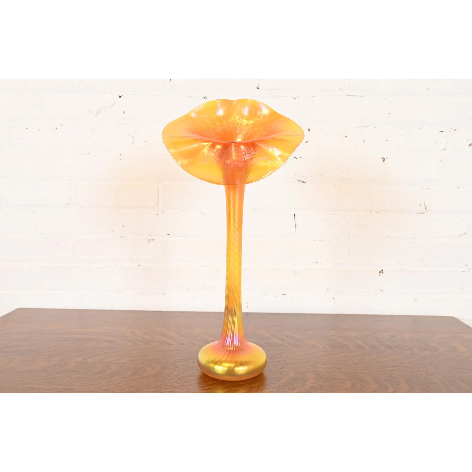 A gorgeous Arts & Crafts or Art Deco “Jack in the Pulpit” Favrile style iridescent art glass vase