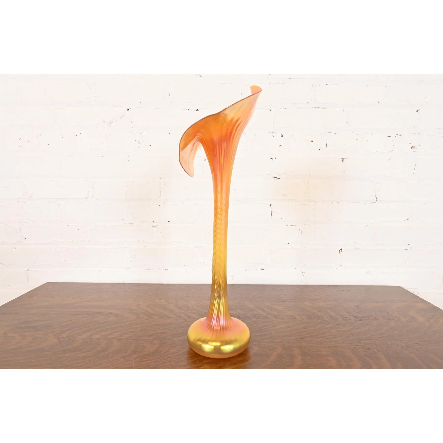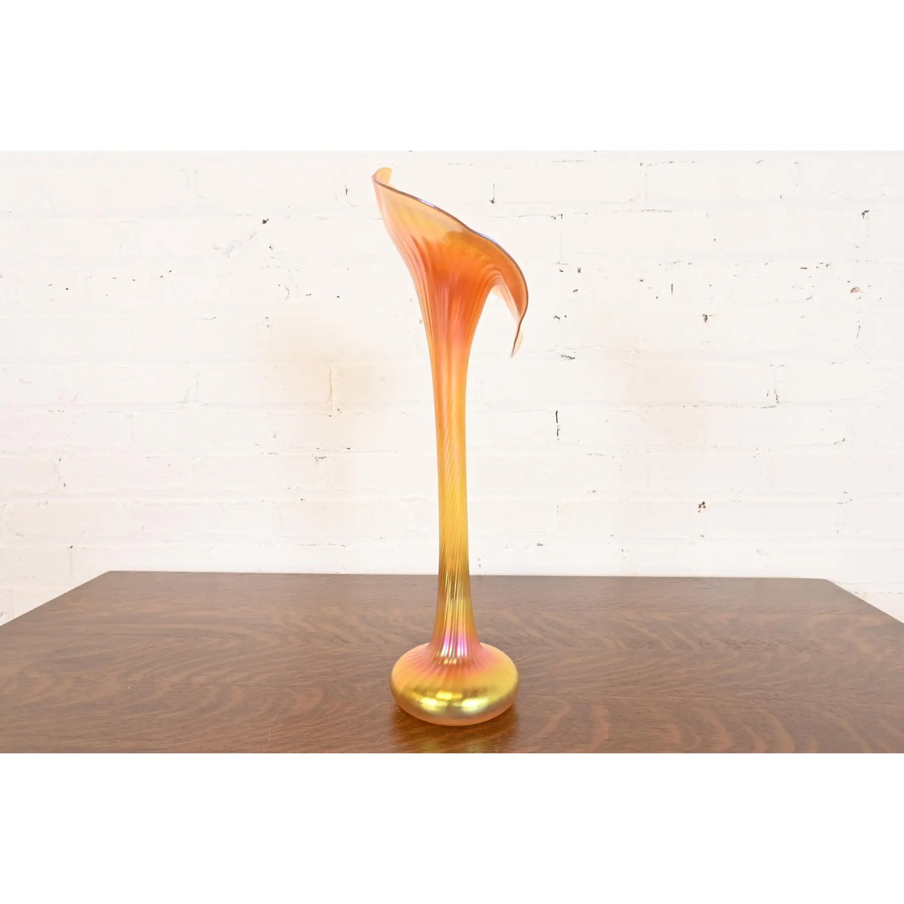 Lundberg Studios Jack in the Pulpit Large Flower Form Iridescent Art Glass Vase