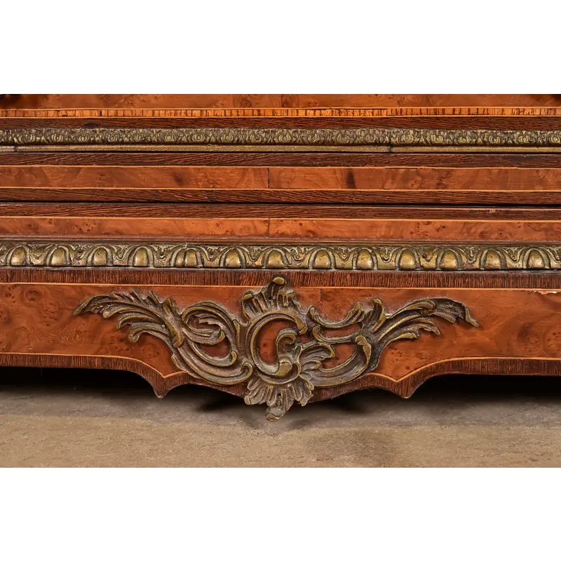 Gorgeous burl wood, with mounted bronze ormolu and hardware.