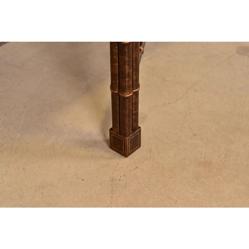 Bamboo form carved wood, with faux tortoise shell finish, and gold gilt accents.