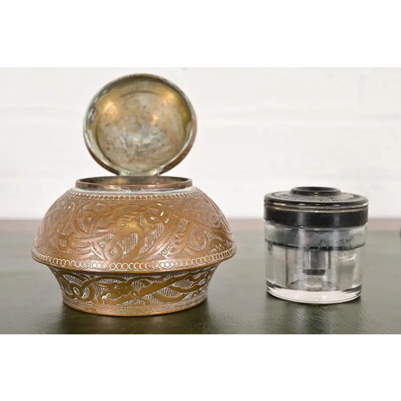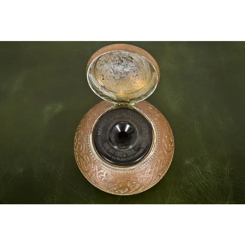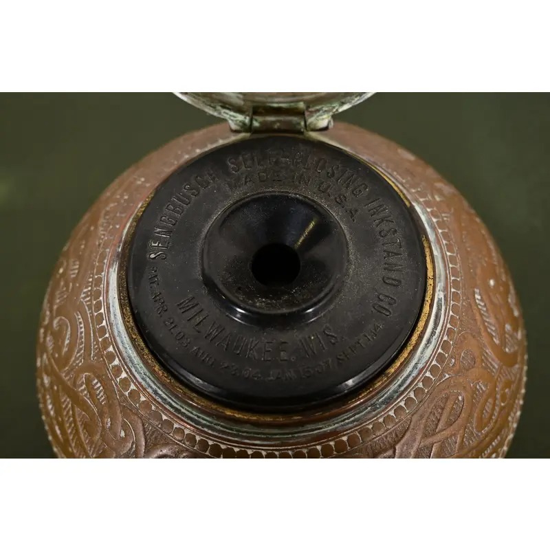 A gorgeous Art Deco or Arts & Crafts period “Viking” collection bronze inkwell