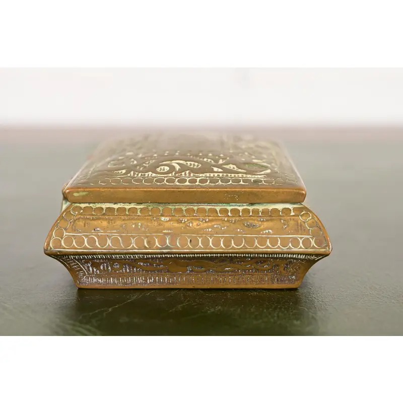 A gorgeous Art Deco or Arts & Crafts period “Viking” collection bronze stamp box