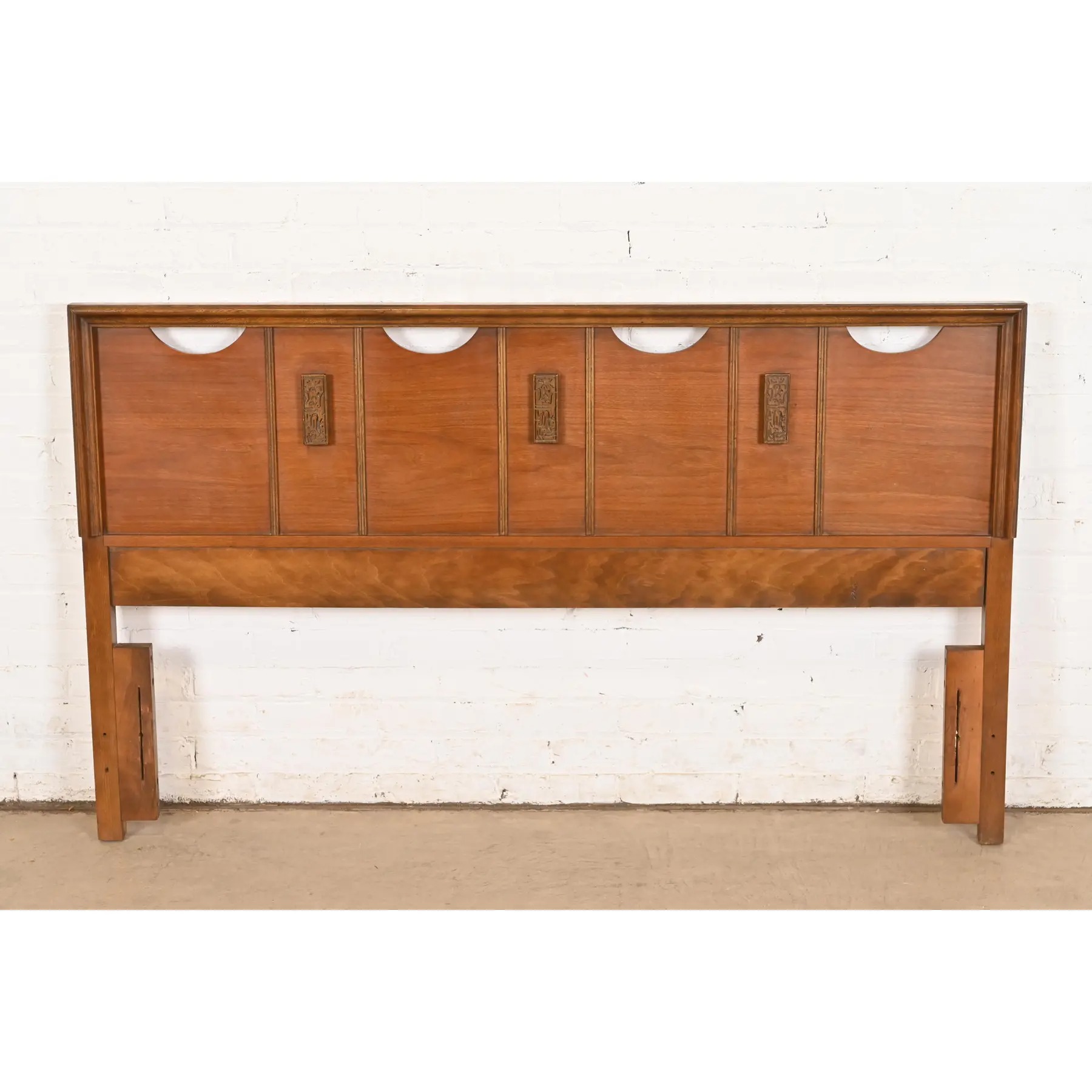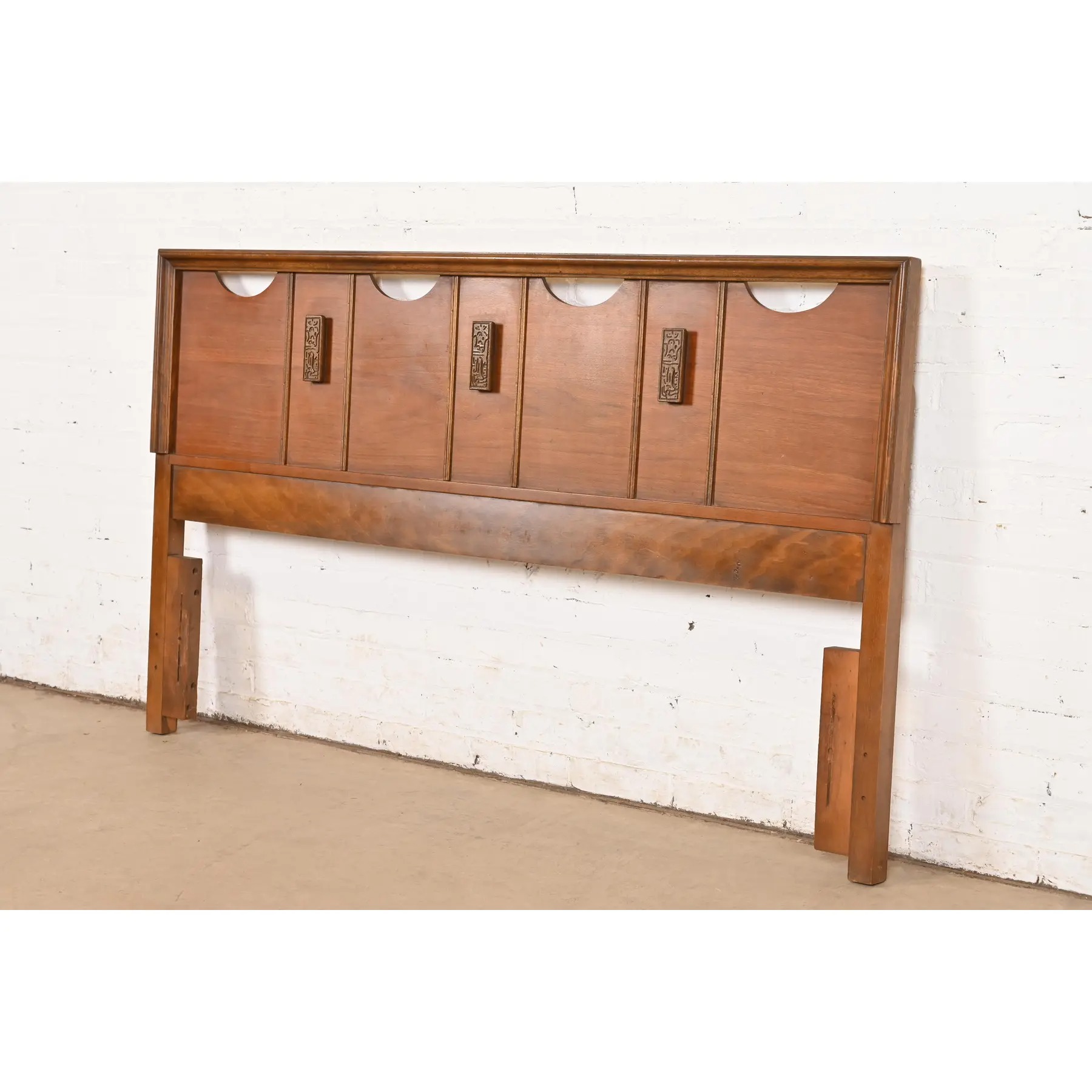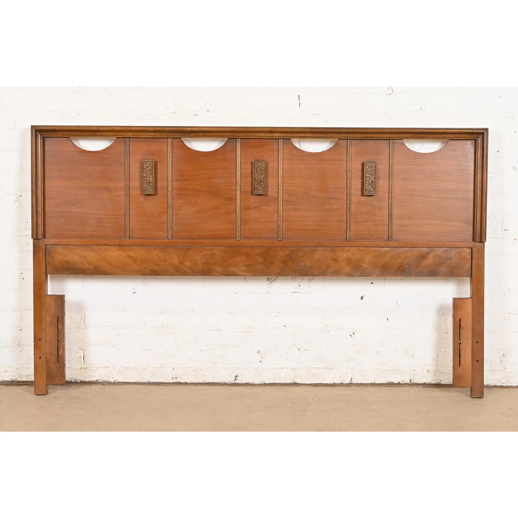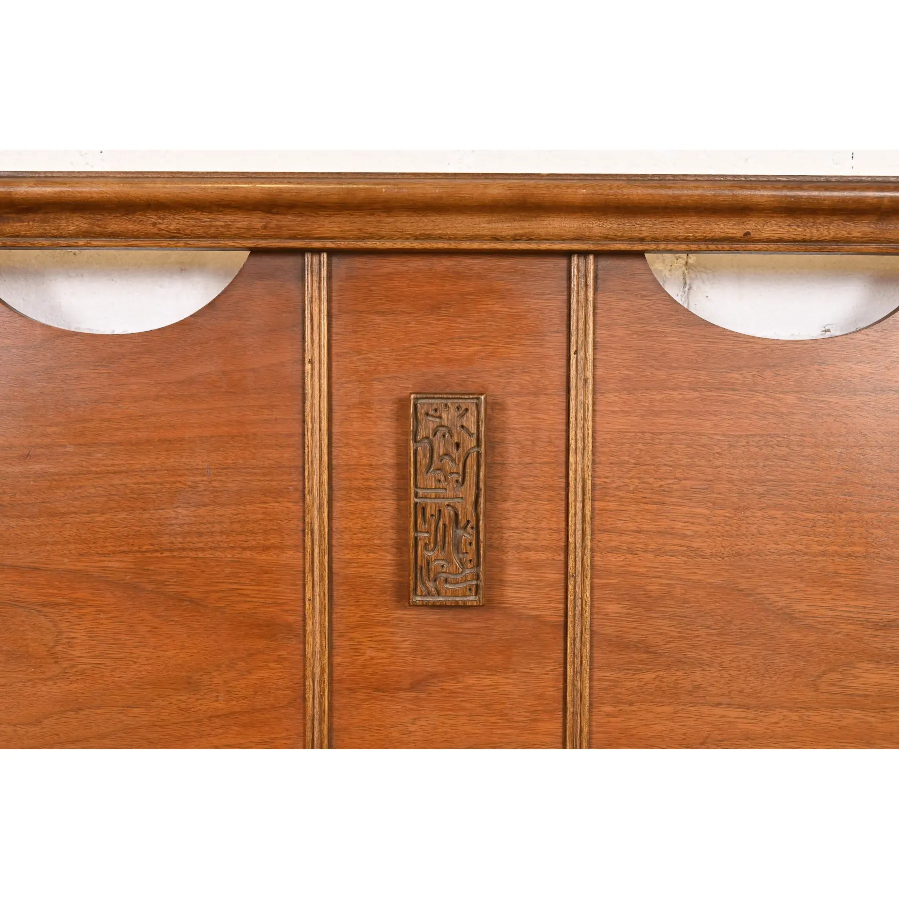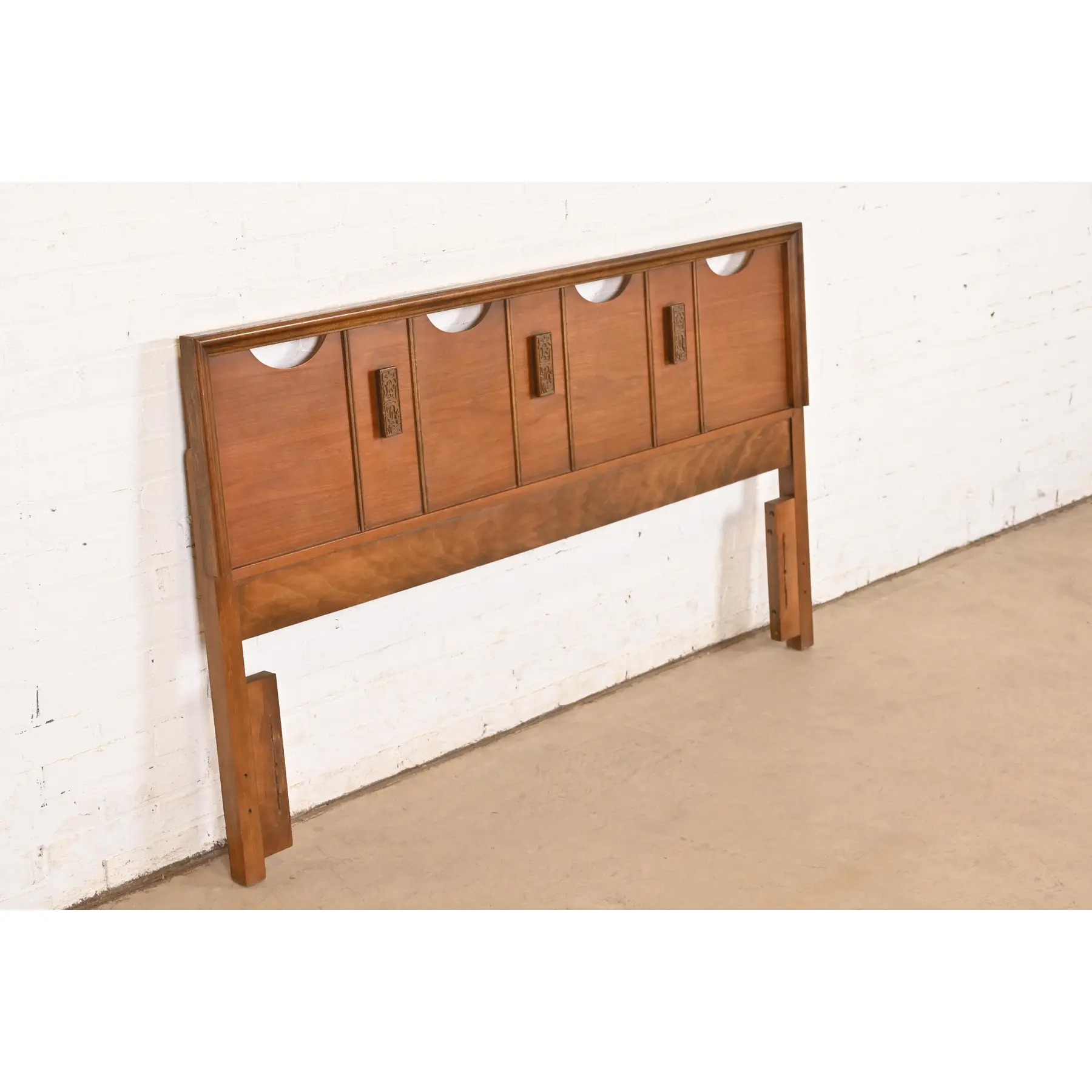 A beautiful Mid-Century Modern sculpted walnut queen size headboard