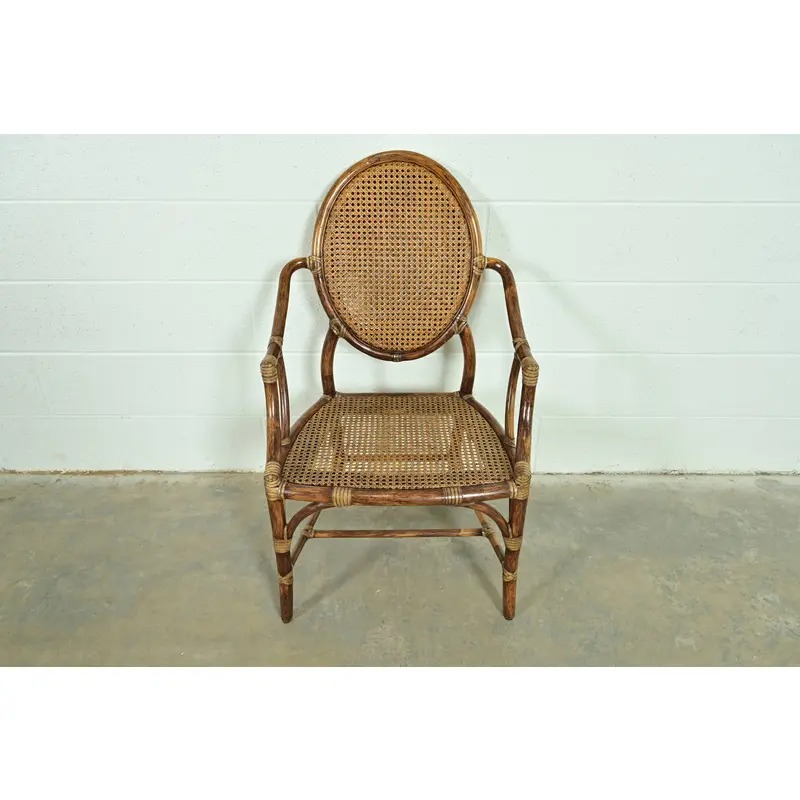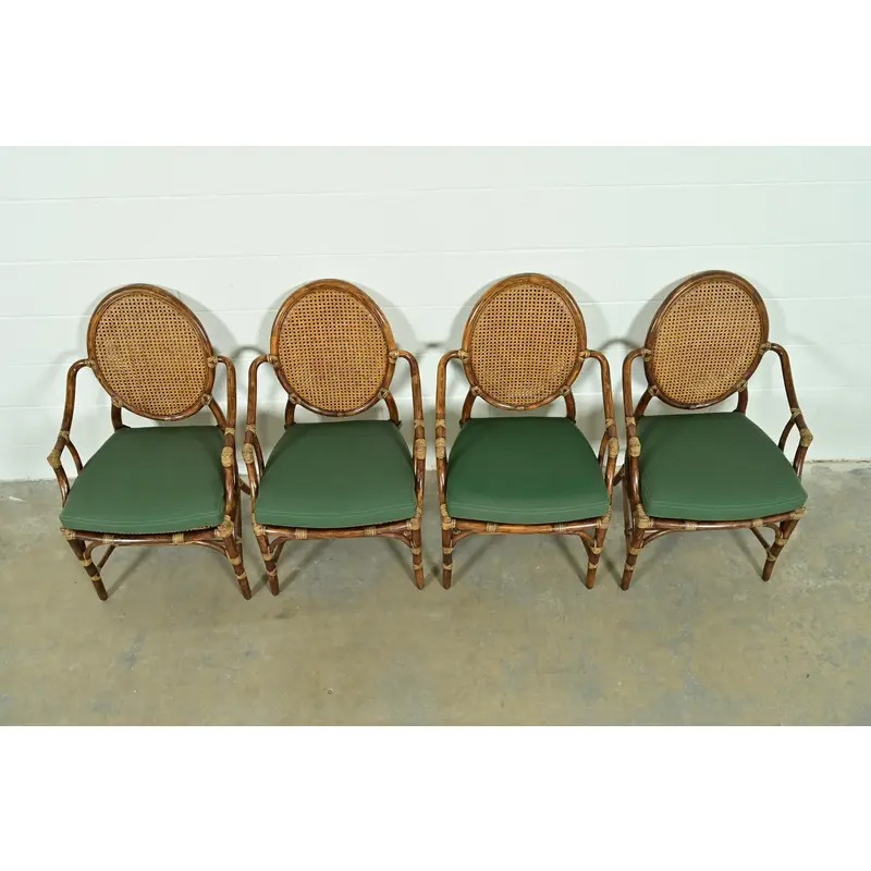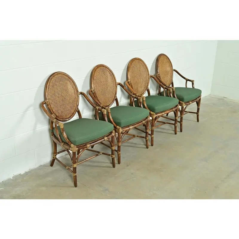 A gorgeous set of four Hollywood Regency Organic Modern bamboo and cane armchairs